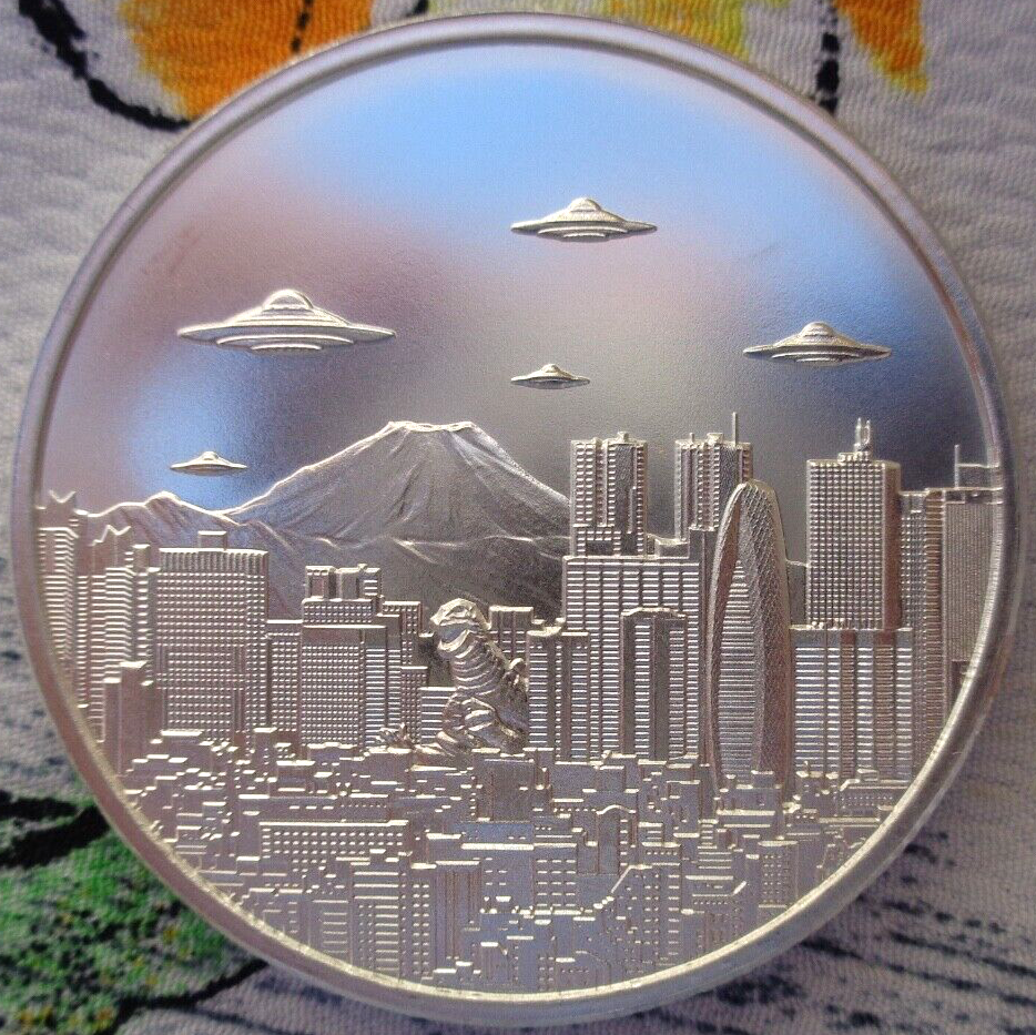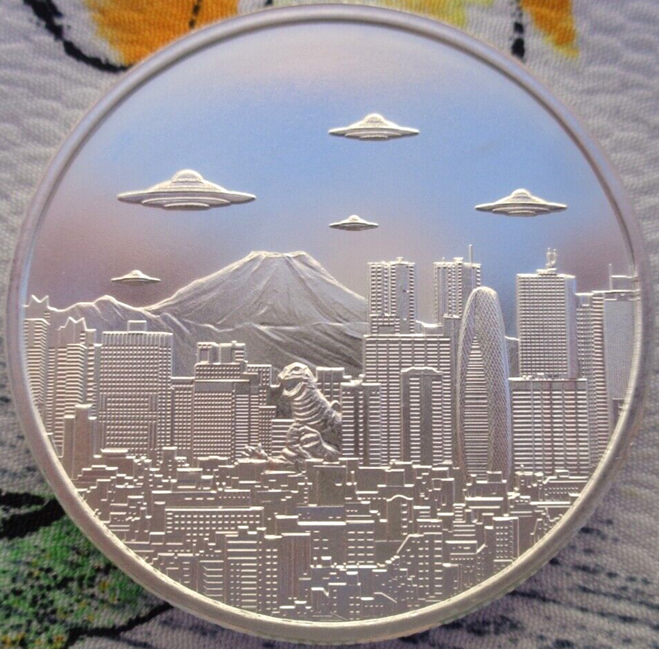 This is a one troy ounce .999 fine silver round from Intaglio Mint. The UFO's Over Tokyo round is Brilliant Uncirculated. Pictures are typical of the round you will receive. You know you need a couple of these in your collection! If you would like this item placed in an airtight capsule, you can order one on my other auctions. This item will fit in an H39 capsule item number 185890518225 or I-39mm foam ring capsule item number 163674701056. Shipping for the capsule will be refunded if you order both at the same time. UFO’s Over Series Includes: 1) Pyramids (Egypt) 2) Paris (Eiffel Tower) 3) Mount Rushmore (South Dakota) 4) NYC (Twin Towers) 5) Stonehenge (Bath, England) 6) Easter Island (Moai Monuments) 7) Rome (Colosseum) 8) White House (Washington DC) 9) Taj Mahal (India) 10) Great Wall of China 11) Kremlin (Red Square) 12) Las Vegas (Sin City) 13) Tokyo (Godzilla) 14) Sydney (Opera House) 15) San Francisco (Golden Gate Bridge) 16) London (Big Ben) 17) Dinosaurs (T-Rex) 18) Rio (Christ The Redeemer) 19) Tenochtitlan (Aztec, Mexico) 20) Crop Circles (England) 21) Hollywood (California) 22) Devils Tower (Black Hills, Wyoming) 23) Red Sea (Moses, Egypt) 24) Cavemen 25) First Contact Collect all 25! Also Alien Abduction Series: Cats Dolphins Humans Cows And now Alien Skulls!, Cowboys & Aliens, Battle Los Angeles and Foo Fighter! Collect them all! Your satisfaction is guaranteed! FREE SHIPPING IN THE U.S. This item is not colorized. Any color is a reflection of my blue camera, my fingers, the eves of my house or the blue sky. It is very hard to get good pictures of shiny items or items through the capsule or seal. Payment: Buy-it-now items require instant payment. International Shipping: All items will be shipped via eBay International Standard Delivery Service. If an international customer purchases multiple items, you can expect a refund for combined shipping. Refund policy: Return any item within 30 days for a full refund. You satisfaction is my highest goal. Look at my feedback. I want to be able to trust the service and quality from 1believerinchrist! God bless America.
