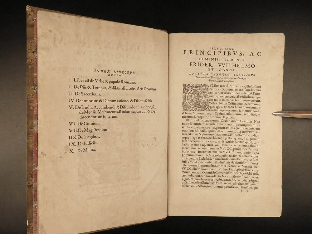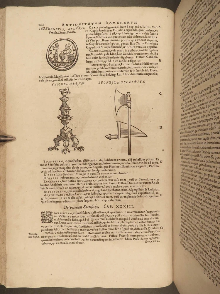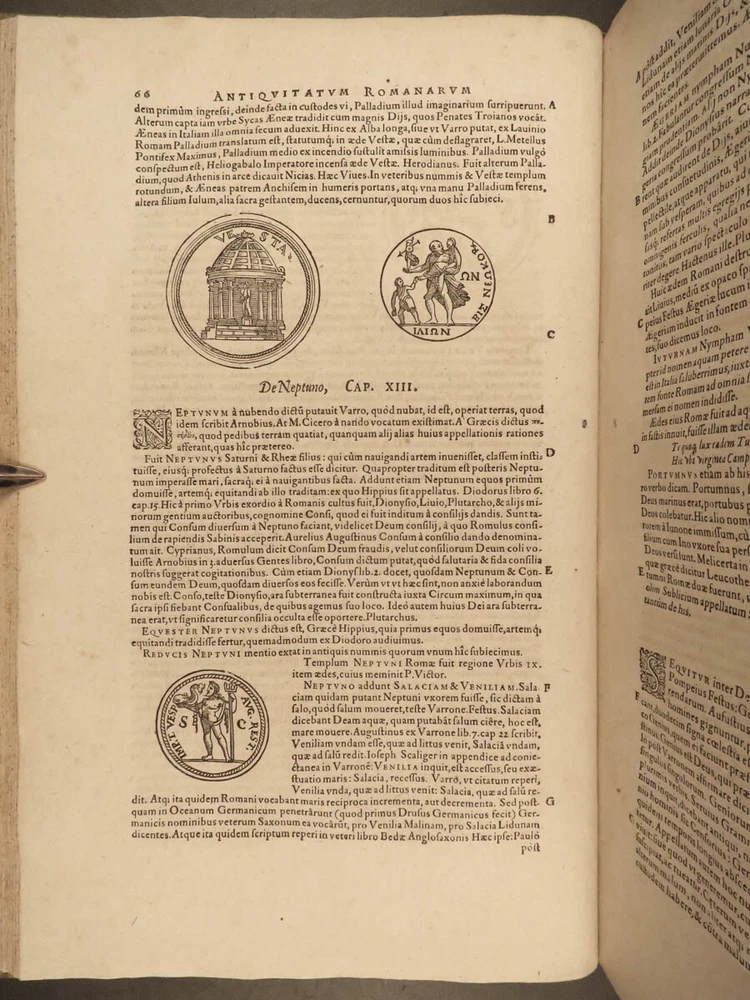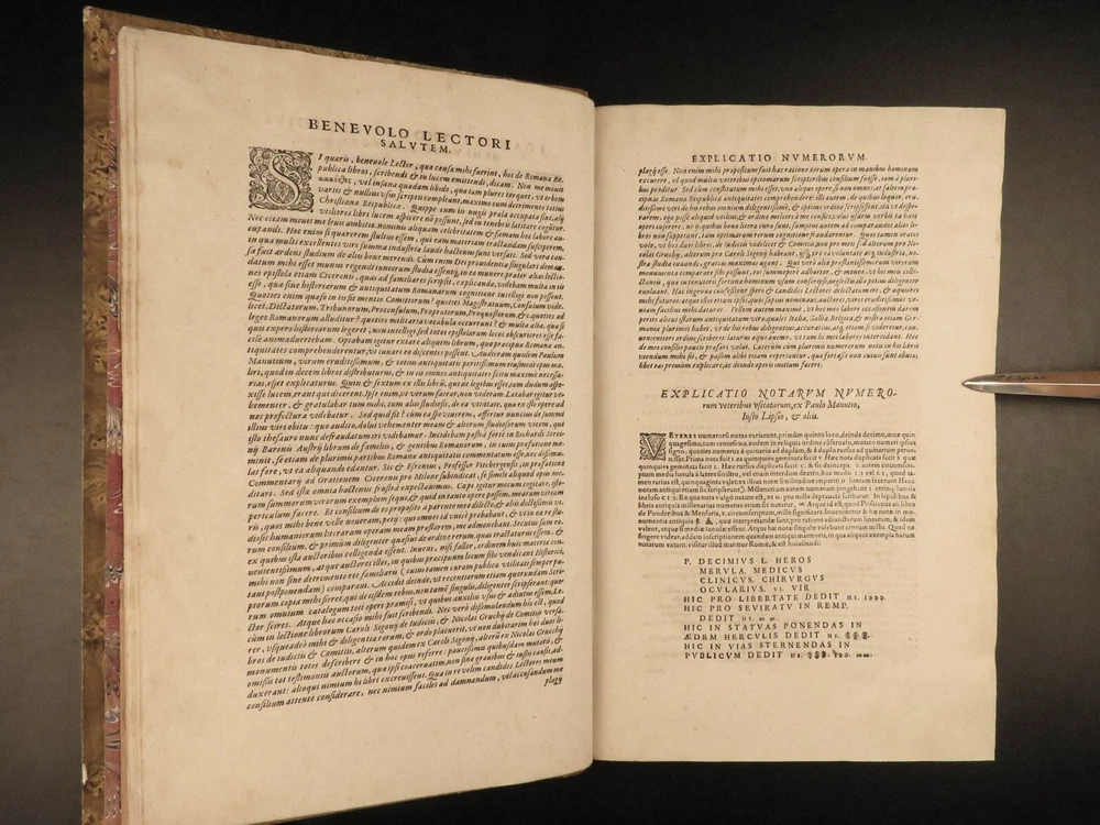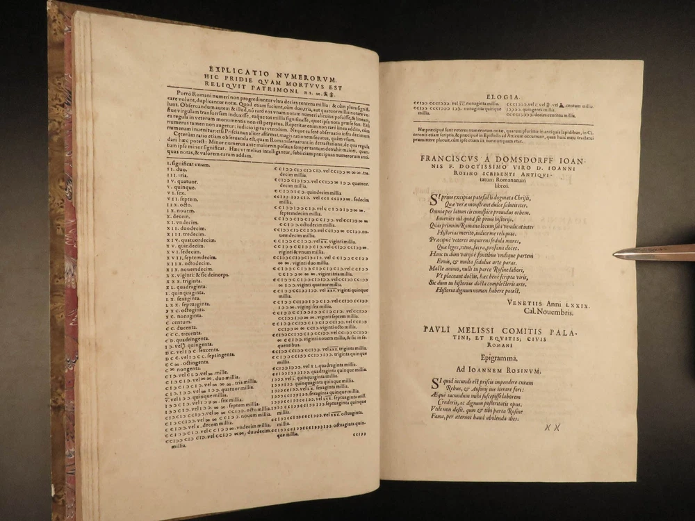 1583 Rosinus Roman Antiquities ROME MAP Constantine Julius Caesar Plato Pliny Johannes Rosinus’s “ Antiquitatum Romanarum ” was an extensive historical work on Roman antiquities. This impressive 1583 edition includes illustrations that depict iconic Roman monuments, architecture, coins and medals, and a map. Other notable descriptions include life of Albertus Magnus, works of Aldus Manutius , Anacharsis, Aristotle, Charles V, Gregorian Codex, Popes, Constantine, Chrysologus, Cicero, Julius and Augustus Caesar, Plato, Pliny the Younger, Socrates, Valerius Maximus, Virgil, Thomas More , Thucydides, and many more . Item number: #22954 Price: $1500 ROSINUS, Johannes Romanarum antiquitatum, libri decem : ex variis scriptoribus summa, fide singularique diligentia Basileae : Ex Officina Haeredum Petri Pernae [per Konrad von Waldkirch], 1583. Details : · Collation: Complete with all pages o [24], 491, [65] o 39 woodcut engravings throughout, plus numerous illustrated initials · References: USTC 691415 · Language: Latin · Binding: Leather; tight and secure · Size : ~13in X 8.5in (33cm x 22cm) Our Guarantee: Very Fast. Very Safe. Free Shipping Worldwide. Customer satisfaction is our priority! Notify us with 7 days of receiving, and we will offer a full refund without reservation! 22954