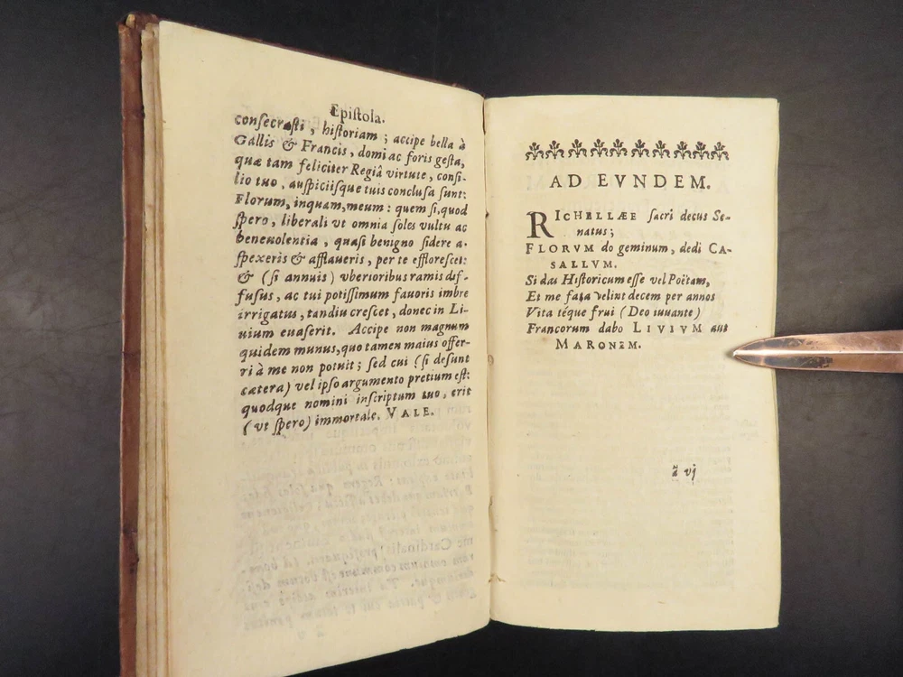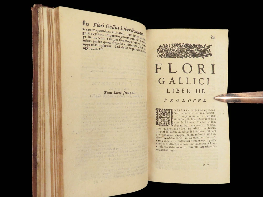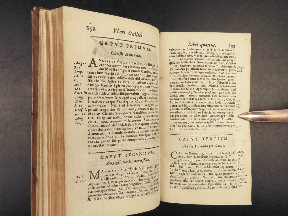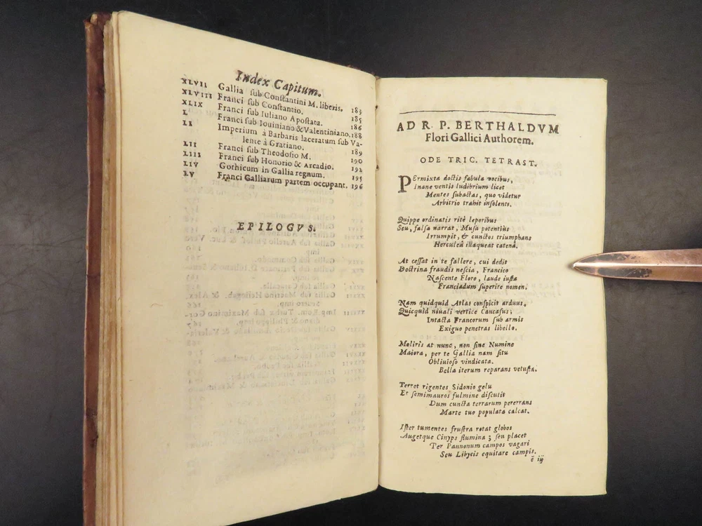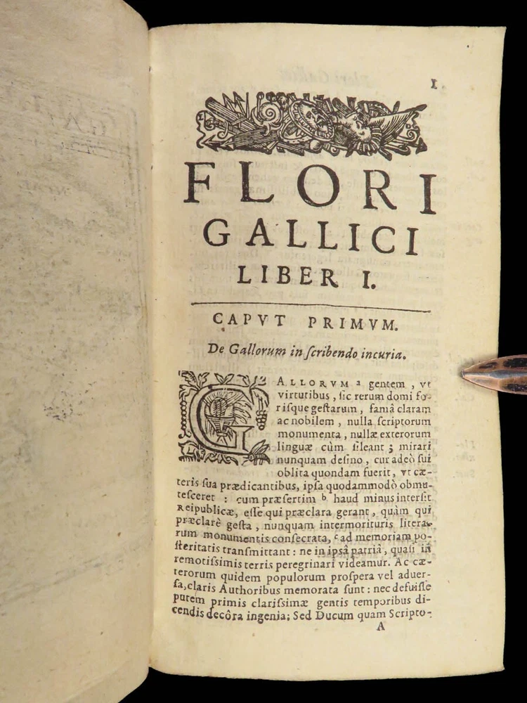 1645 FRANCE Florus Gallicus Pierre Berthault Gaul Franks Saxony ROME Map 2in1 Pierre Berthault’s “ Florus Gallicus ” is a rare, 17 th -century history of France from the earliest of times through the first part of the 1600s. This work covers seemingly every aspect of French history from the early Franks, Gaul, and into the rise of the French Monarchy. It is worth noting that this work features a folding map of France . Item number: #27564 Price: $499 BERTHAULT, Pierre Florus gallicus, sive, Rerum a veteribus Gallis bello gestarum epitome, in IV Parisiis: Apud Ioannem Libert, viâ D. Ioannis Lateranensis, 1645. Details : · Collation: Complete with all pages; 2 parts in 1 o Florus Gallicus – [32], 194 (i.e., 196), 48, [24] o Florus Francicus – [24], 336, 59, [37] o Each part with additional engraved title page · Language: Latin · Binding: Leather; tight and secure · Size: ~5.75in X 3.25in (14.5cm x 8.5cm) Our Guarantee: Very Fast. Very Safe. Free Shipping Worldwide. Customer satisfaction is our priority! Notify us with 7 days of receiving, and we will offer a full refund without reservation!