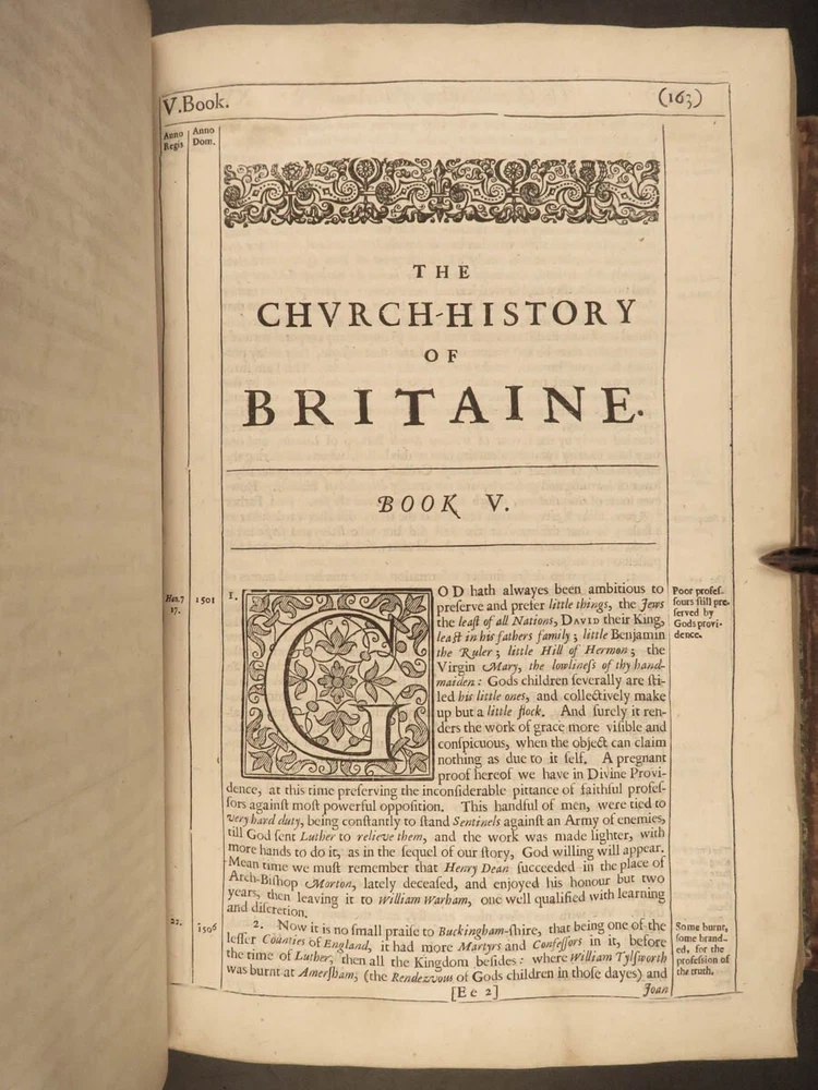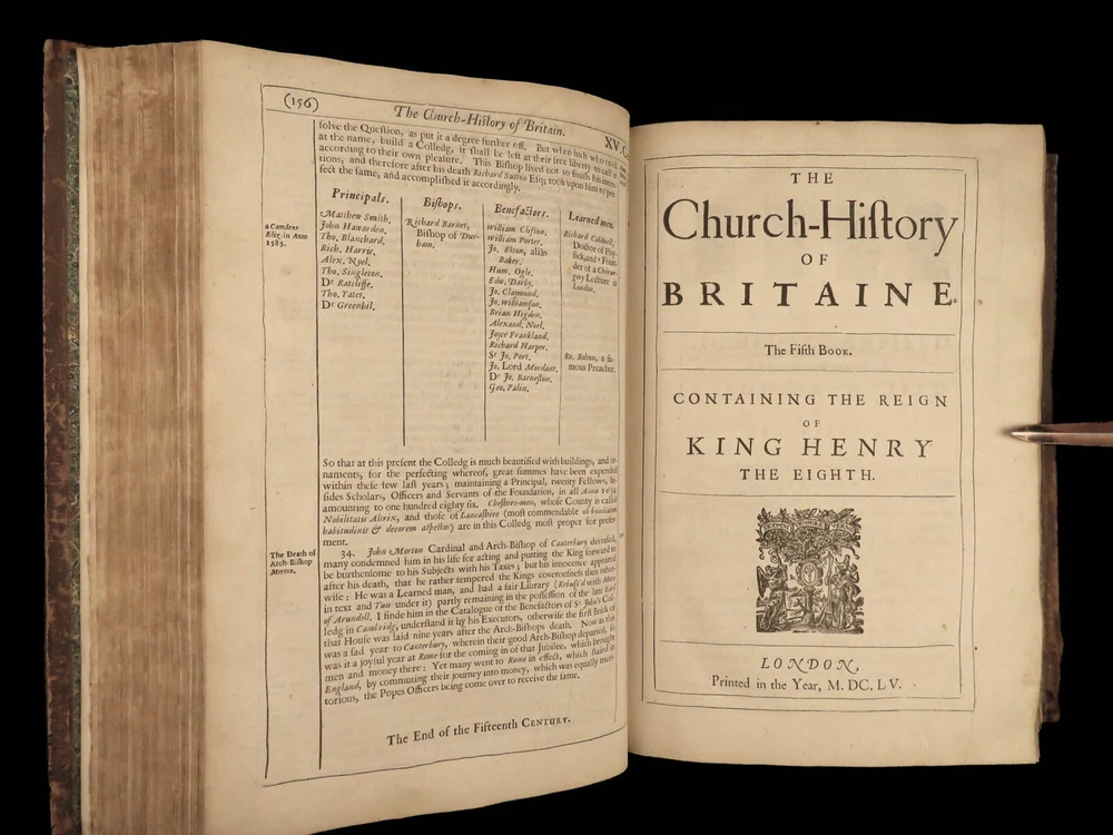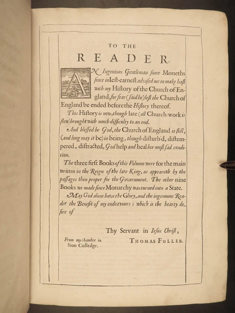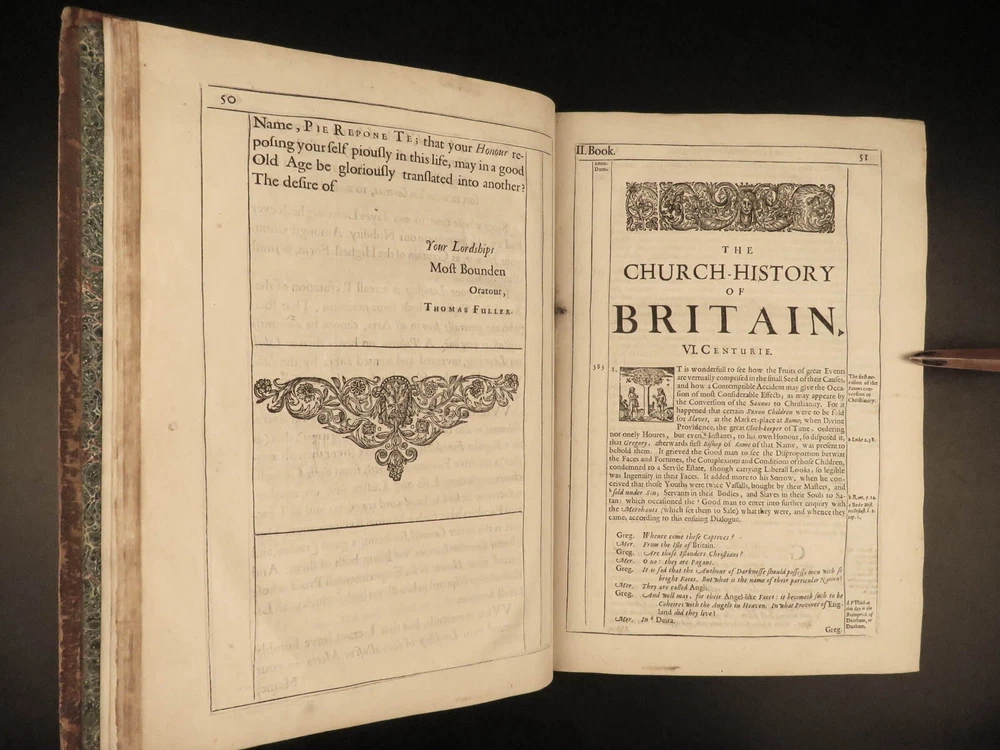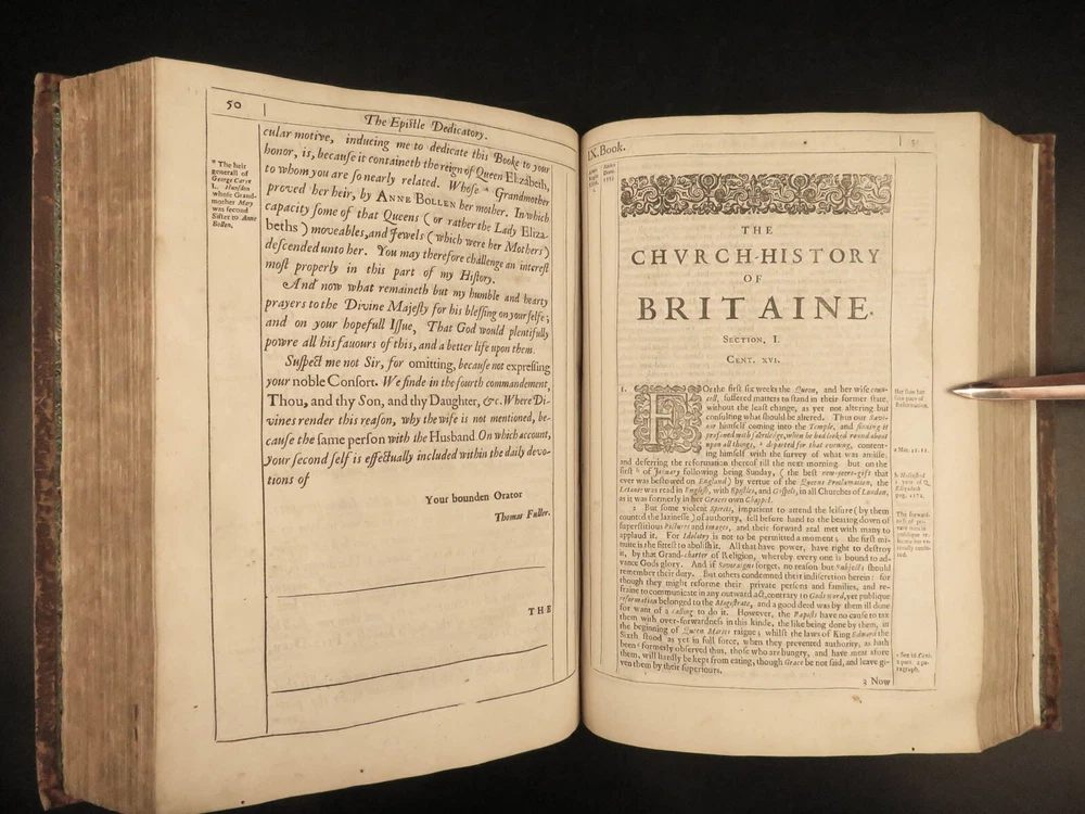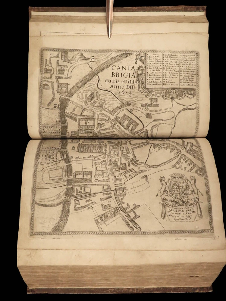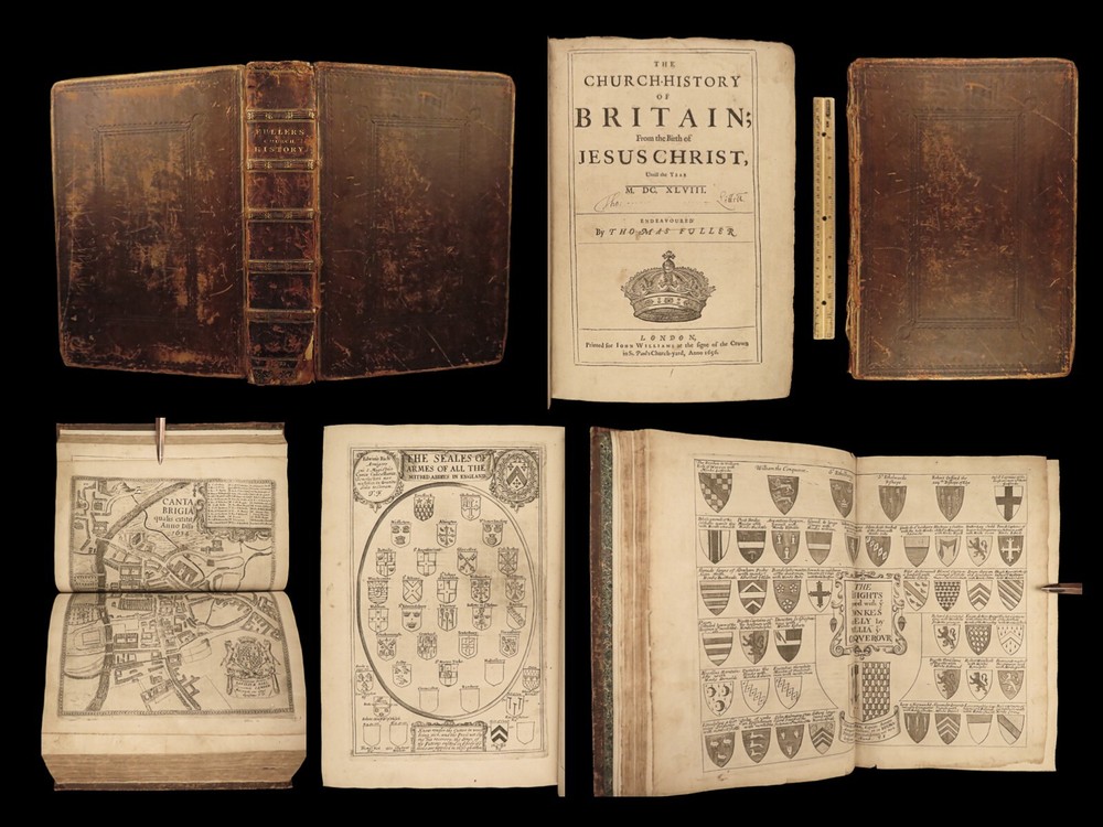 1656 Church History Thomas Fuller Cambridge KNIGHTS Monks MAPS Heraldry Bible Thomas Fuller was a 17 th -century English historian who particularly notable for his historical accounts of English worthies and the Church of England. In 1655, Fuller wrote his best work, ‘ Church History of Britain’ . This chronological account covers the history of the church from the birth of Jesus through 1648 and was immensely popular throughout England and the English-speaking world. This work, however, was not beloved by everyone. One of its greatest critics was Peter Heylin who vehemently attacked ‘ Church History ’. This book includes various sections on church history including a ‘ History of Waltham-Abbey in Essex’ and a ‘History of the University of Cambridge’ . This 1656 edition includes all of the expected sections and parts as well as the double-page engravings such as the map of Cambridge and the arms of the Knights and Monks of William the Conqueror. Item number: #25239 Price: $995 FULLER, Thomas The Church-History of Britain, from the Birth of Jesus Christ, untill the year MDCXLVIII London: Printed for Iohn Williams, 1656. Details : · Collation: Complete with all pages o Part I – [8], 43, [1] o Part II – [2], 47-171, [1] o Part III – [8], 119, [1] o Part IV – [8], 129-200, (153)-(156) o Part V – [6], (163)-(199), [1], 201-255, [1] o Part VI – [3], 260-371, [1] o Part VII – [2], 375-427, [1] o Part VIII – [8], 43, [1] o Part IX – [2], 47-235, [1] o Part X – [8], 116 o Part XI – [4], 117-238 o History of Cambridge – [8], 172 o History of Waltham-Abby – 22, [20] o Part I, books II-XI, pt. II-III have special title pages; books III-V, VIII use title pages from first edition. o Text printed within single-rule border · Provenance: Handwritten – Tho. Litten · Language: English · Binding: Leather; secure · Size : ~12.75in X 9.25in (32.5cm x 23.5cm) Our Guarantee: Very Fast. Very Safe. Free Shipping Worldwide. Customer satisfaction is our priority! Notify us with 7 days of receiving, and we will offer a full refund without reservation! 25239