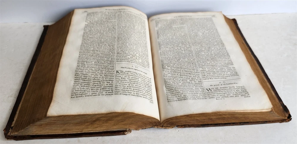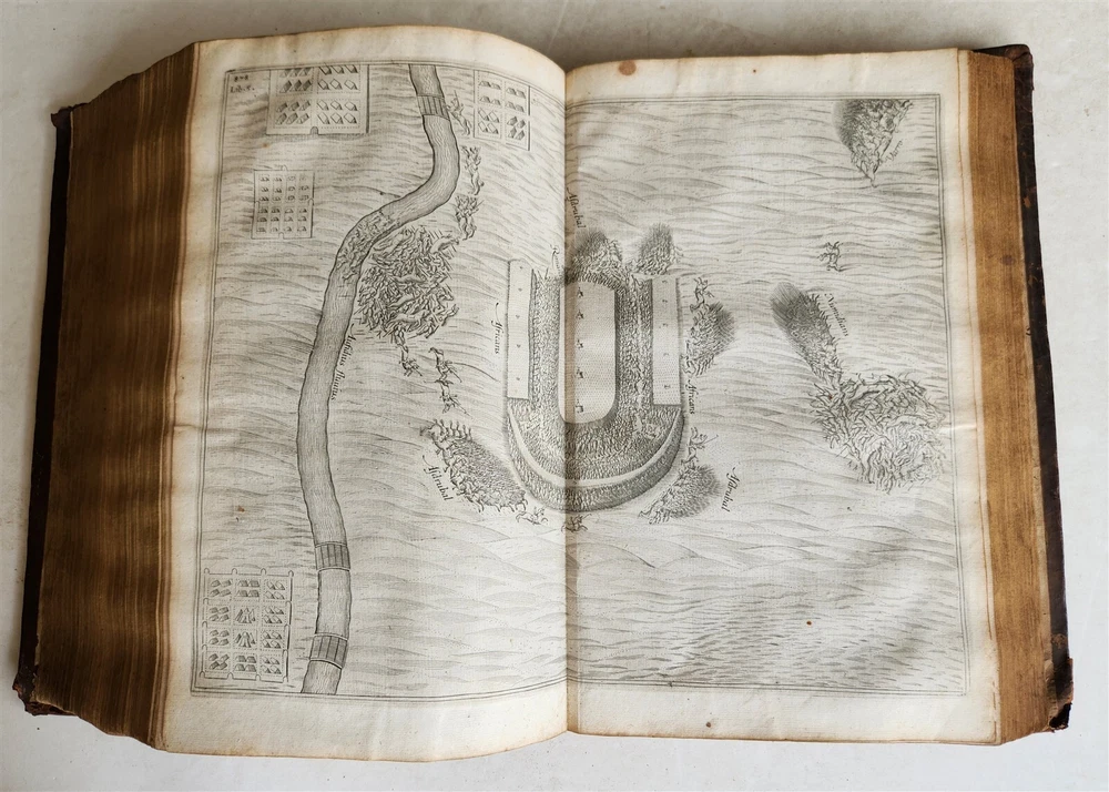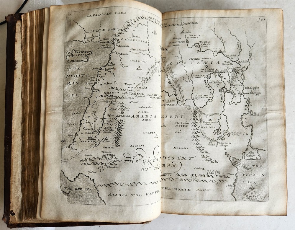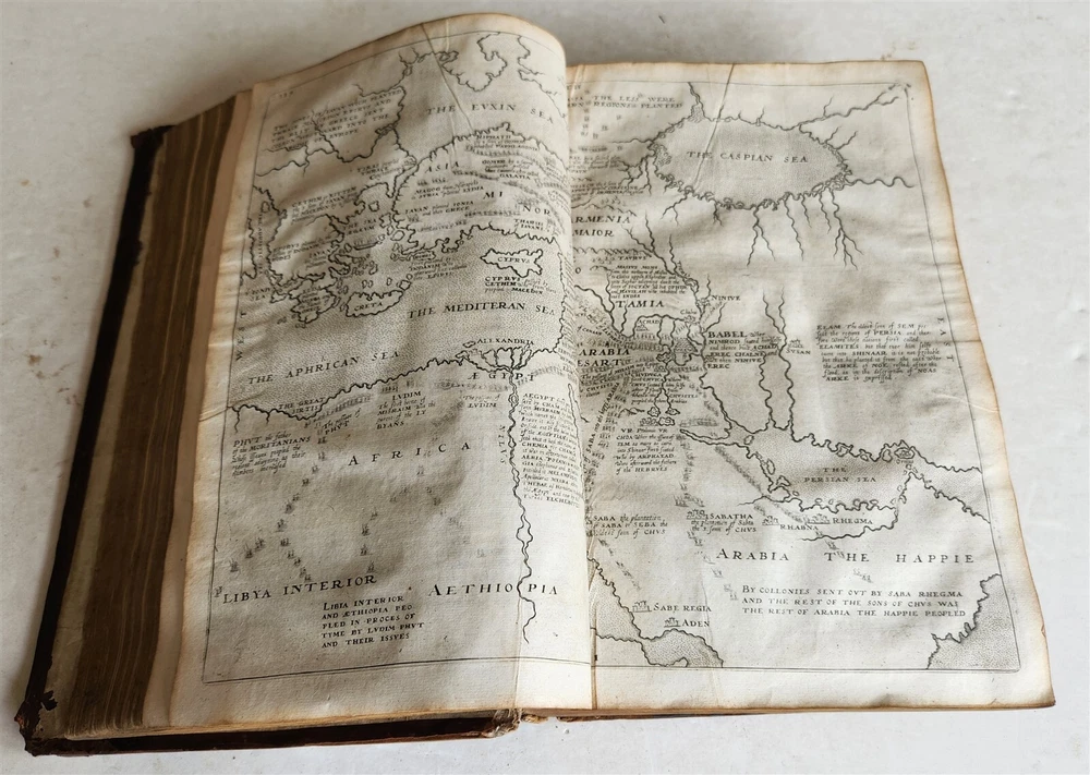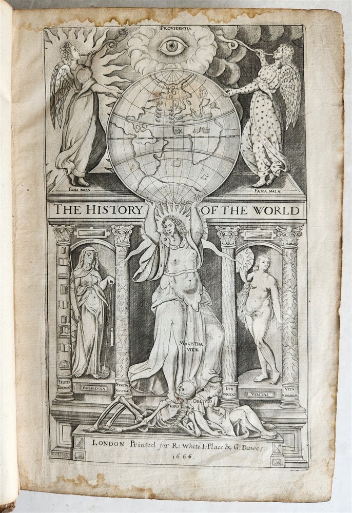 RALEGH (SIR WALTER) THE HISTORY OF THE WORLD IN FIVE BOOKS London, printed for R. White, 1666 [34], [36], 1143, [54], with ‘Mind of The Front’, engraved title, engraved portrait, printed title, eight double page engraved maps and plates full tan calf, worn, with some damages, front cover almost detached, good interior Folio. Size 9 1/2 by 13 3/4 inches [34] = from the ‘mind of front’ to the end of contents [36] = preface Miss-numbering at 655-659, 749-750, 753, 857, 949-950, 953-955, 1017. Text in English ========================= Sir Walter Raleigh's renowned unfinished world history, beginning with the Creation ending at the time of Roman ascendancy, written while he was imprisoned in the Tower of London. =========================== Please see my other auctions Thank You Refund Policy: We will issue a FULL REFUND, 100% money back if you are not satisfied with your purchase. Items must be returned to us within 20 days in order to receive a refund or replacement. Buyer is responsible for shipping costs. Powered by SixBit's eCommerce Solution