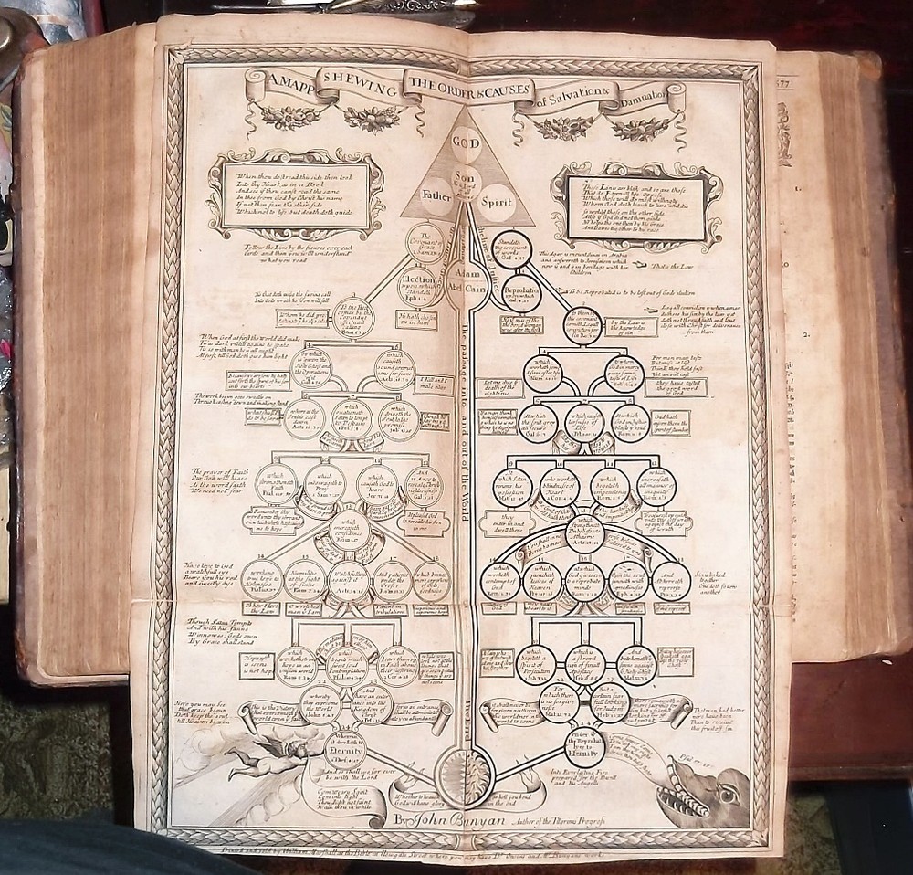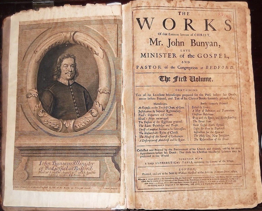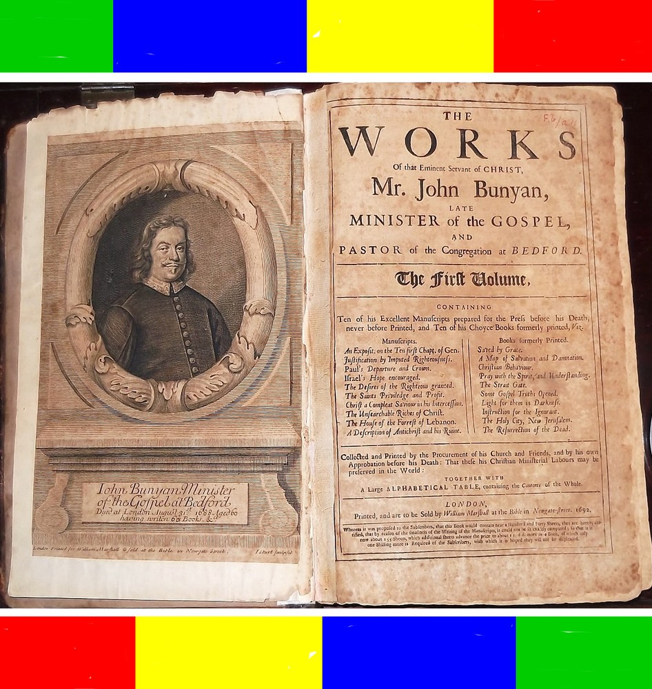 1692 FIRST-EDITION WORKS OF JOHN BUNYAN!!! TOTALLY COMPLETE WITH THE RARE MAP TO HEAVEN OR HELL ! "THE WORKS OF THAT EMINENT SERVANT OF CHRIST, MR. JOHN BUNYAN" First Collected Edition! Printed and are to be sold by William Marshall, at the Bible in Newgate Street, 1692. First Edition! NOTE: This Volume One was the only Volume ever printed, Volume Two was Never printed . NOTE: There are Many, Many Works of Bunyan in this Volume but I have only shown a few of them contained in this Volume, there are MANY !!! The Pilgrims Progress was not included in this First Volume. The Second Volume was Never printed due to Bunyan's death. Folio, measuring 13.75" x 9" (35cm x 23cm). Bound in its Original Leather Binding , rebacked. With 868 Pages plus a multi-page Index in the rear! With the Engraved Frontispiece by the Famous John Sturt! Frontis is laid down. Foxing througout. Both the General Title Page and the Index Title page are Both Dated 1692! WITH THE ULTRA RARE FOLD-OUT "MAPP SHEWING THE ORDER & CAUSES OF SALVATION & DAMNATION"!!! Also has the Equally Rare "ERRATA SLIP" in the rear!!! ( NOTE!!! My T-Shirt is covering the bottom left corner of the Map, it is Complete, Whole and is NOT torn!!!) THIS MUSEUM PIECE IS TOTALLY COMPLETE!!! ( See The Many Other 1600s-1700s John Bunyans in the "John Bunyan" section of my Store !) DON'T LET SOMEBODY ELSE BEAT YOU TO THIS VALUABLE FIND! !!!ATTENTION !!! I AM SELLING HUNDREDS OF RARE BOOKS AND ANTIQUES FROM THE 1400s-1700s! .. EVERYTHING MUST GO ! SEE MY OTHER RARE ANTIQUES BEING AUCTIONED RIGHT NOW ! TERMS: Payment is requested after auction ends. Thank you and God Bless You!