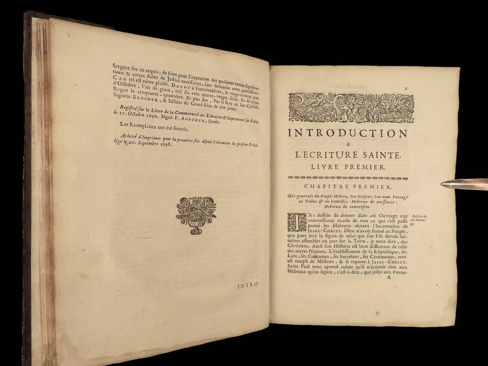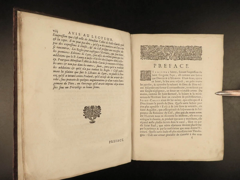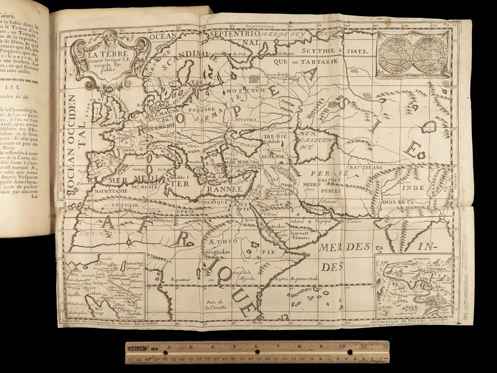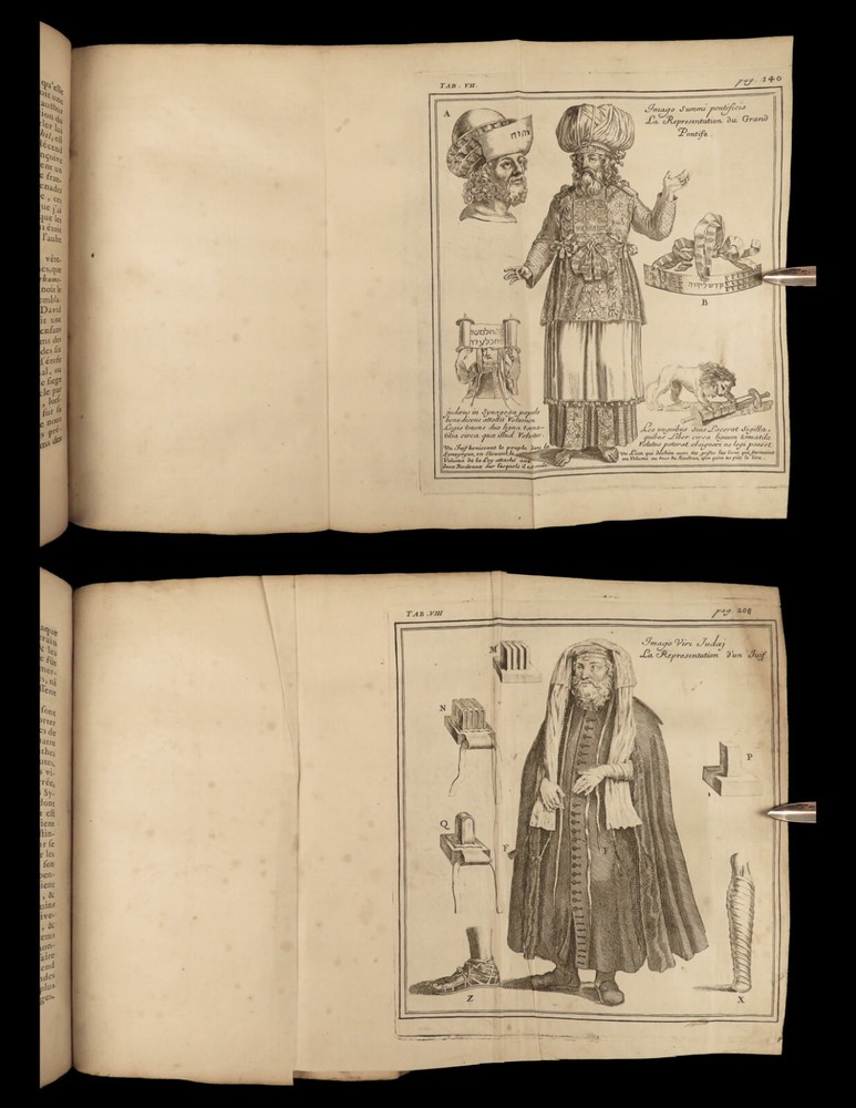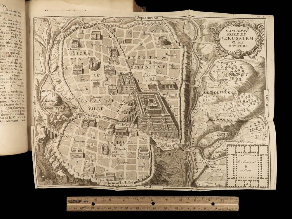 1699 BIBLE MAPS & Bestiary Lamy Illustrated Holy Land Judaica Animals Hebrews Bernard Lamy was a 17 th -century French theologian and mathematician who published treatises on biblical studies and mathematics. One of his most notable works was ‘ Introduction to Holy Scriptures’ which was originally titled ‘ Apparatus ad Biblia Sacra ’. This work was written to discuss the validity of the Books of Tobias and Judith, which were not included in the biblical canon by the Council of Trent. Lamy also discusses the history of the Hebrew people, the Jewish temple and tabernacle, the Holy Land itself, and the Jewish culture and customs mentioned in the Bible. This rare 1699 edition features an impressive folding map of the Holy Land, folding charts, and plates throughout. Item number: #24166 Price: $1195 LAMY, Bernard Introduction à l'Ecriture sainte. Où l'on traite tout ce qui concerne les Juifs ; leur Origine, toute la suite de leur Histoire, selon l'ordre des tem Lyon : Jean Certe, 1699. Details : · Collation: Complete with all pages o viii, [20], 423, [49] o 11 folding plates and charts (including 3 maps) o 11 full-page engravings · Language: French · Binding: Leather; tight and secure · Size : ~10in X 7.5in (25cm x 19cm) Our Guarantee: Very Fast. Very Safe. Free Shipping Worldwide. Customer satisfaction is our priority! Notify us with 7 days of receiving, and we will offer a full refund without reservation! 24166