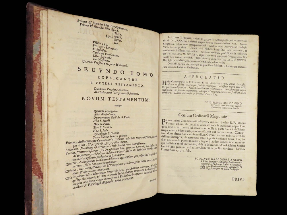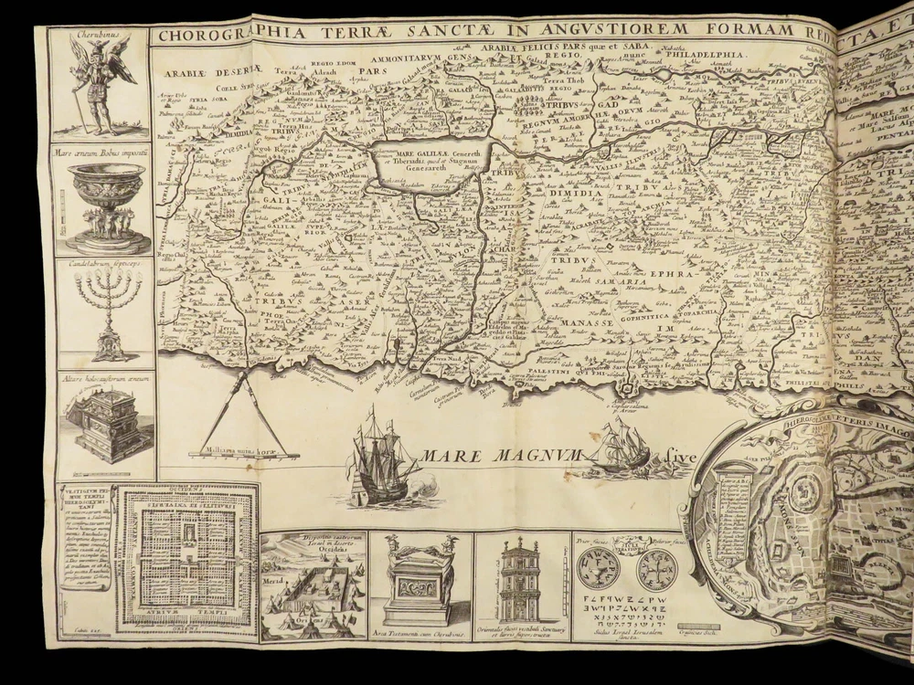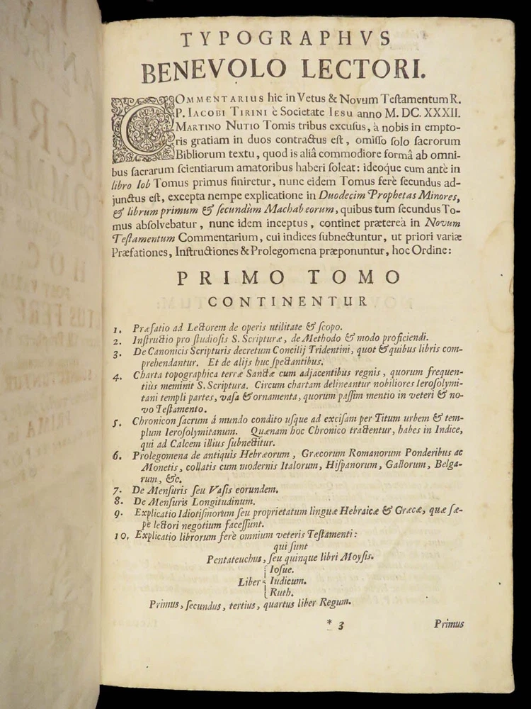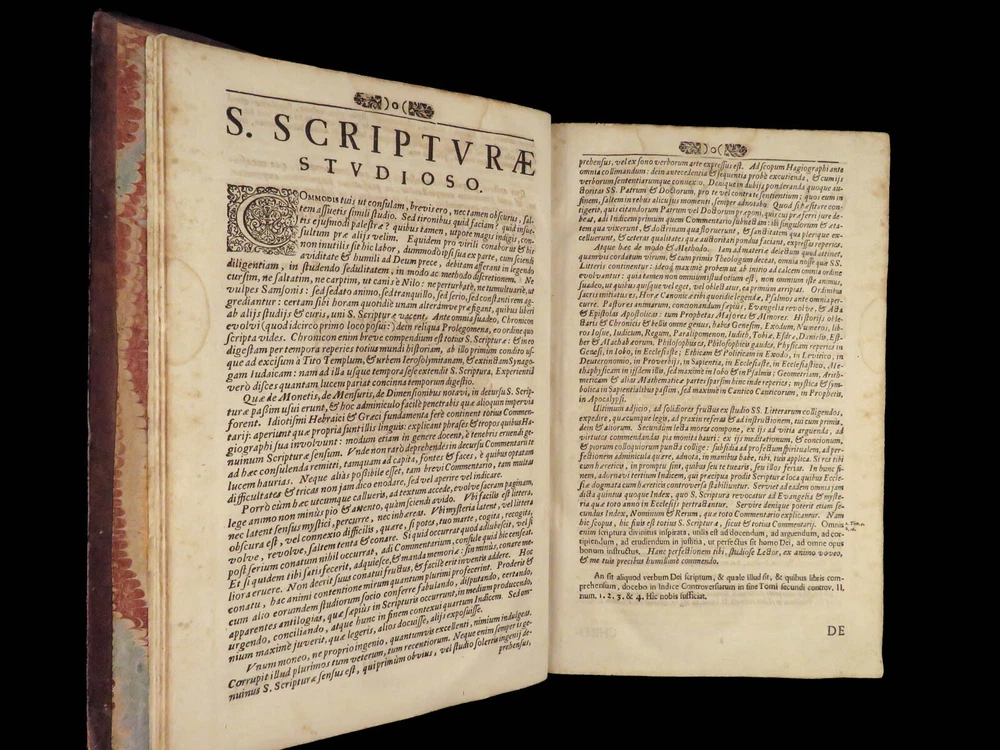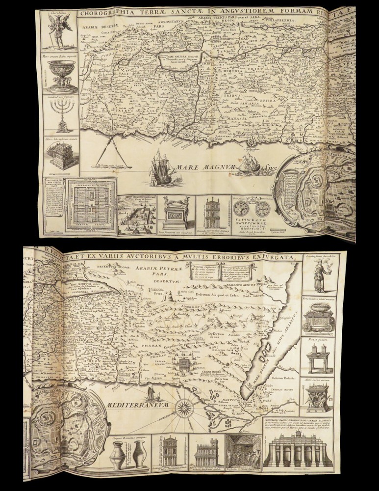 1704 ENORMOUS Jesuit BIBLE Commentary HUGE MAP Old Testament Psalms Tirinus Jacob Tirinus was an early 17 th -century Belgian Jesuit who was best-known for his Bible commentary. First published in 1645, “ Commentarius in Sacram Scripturam ”, this commentary not only contains annotations on the books of the Bible but also includes descriptions of the Holy Land and other major locations covered in the Bible such as Egypt, Babylon, and Syria. This huge tome from the 1704 Frankfurt edition includes commentary on the Pentateuch, Kings, Chronicles, Job, Psalms, Ecclesiastes, Song of Songs, Isaiah, Jeremiah, Lamentations, Ezekiel, and Daniel. It also includes non-canonical books such as ‘ Sapientiae’ , or Wisdom of Solomon, Baruch, and ‘Sirach’ . Item number: #27871 Price: $499 TIRINUS, Jacobus R. p. Jacobi Tirini Antverpiani e Societate Jesu in S. Scripturam commentaries Dilingae & Francofurti: apud Joannem Casparum Bencard, 1704. Details : · Collation: Complete with all pages; o [16], 788 (i.e., 784) o Double-page folding map, 6 folding charts · Provenance: Handwritten o Alois Gerster o Aloiis Arnold · Language: Latin · Binding: Leather; tight and secure · Size: ~13.25in X 9in (33.5cm x 22.5cm) Our Guarantee: Very Fast. Very Safe. Free Shipping Worldwide. Customer satisfaction is our priority! Notify us with 7 days of receiving, and we will offer a full refund without reservation!