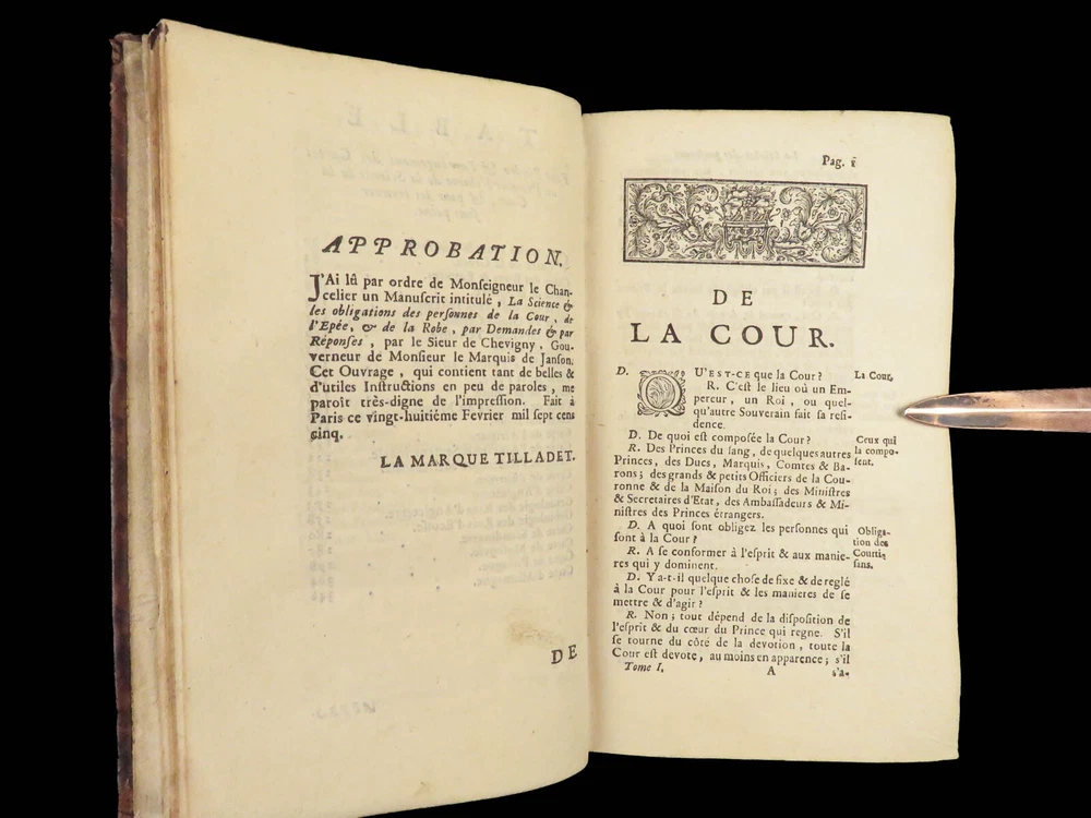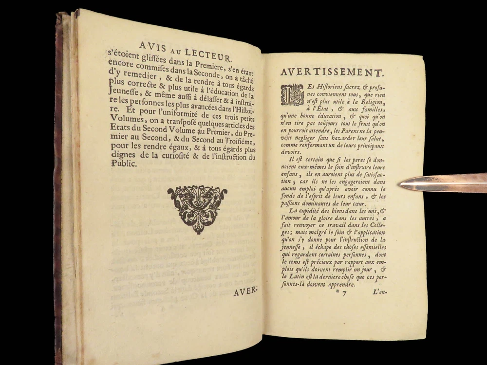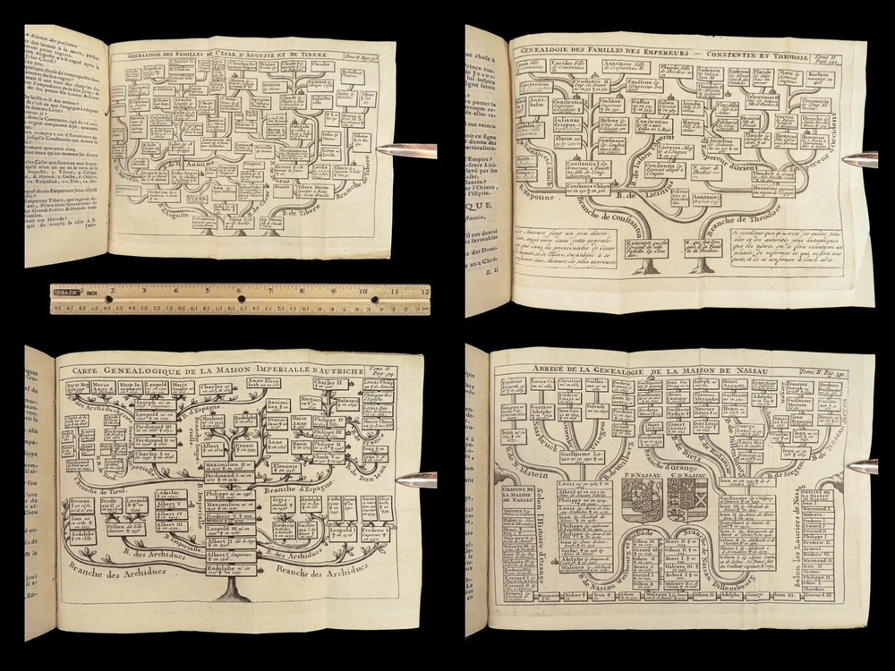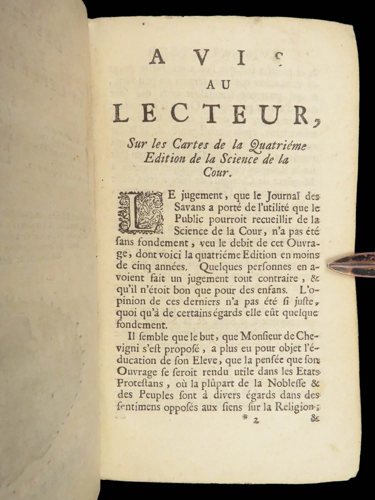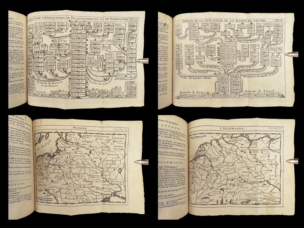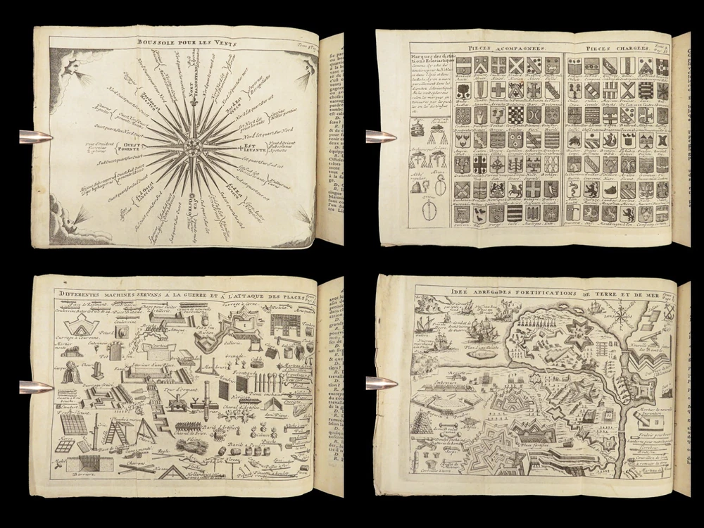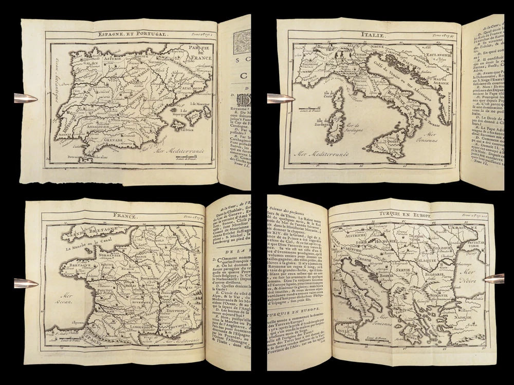 1713 ATLAS Chevigny SCIENCE Encyclopedia Geography Astronomy Zodiac America MAPS The first edition of Chevigny’s “ La Science des la Cour ” appeared in 1706. It covered many fields of knowledge including religion, astronomy, geography, fine art, wars, fortifications, royal families, architecture, marine life, and fairy tales. This three-volume 1713 edition discusses many fascinating topics including: · Religions of the world, general worship, Christian rites and customs · Chronology of the world – beginning with the Old Testament · Temple of Solomon; Foundation of Rome; Cyrus and the Jews · Rise of the Ottoman Empire · Protestant Reformation – Luther and Calvin · Spanish Reformation with Philippe V · George I and English Succession · Astronomy; astrology & religious undertones · General geography · Turkey and Asia Minor · Persia · Tartary · China · India · Egypt and Barbary, Sahara Desert · Congo, Nigeria, Ethiopia · South America – Brazil Peru, Chili · North America – Mexico, Canada; oil and tobacco trade Many of the sections are written in a question-and-answer setting and includes dozens of incredible illustrations and maps such as views of the solar system, mathematical figures, constellations and the zodiac, and maps! Item number: #27452 Price: $950 CHEVIGNY La Science Des Personnes De La Cour, De L'Epée Et De La Robe Amsterdam: Freres Chatelain, 1713. Details : · Collation: 3 volumes o Vol. I – [22], 396, [12] § Two engraving and p. 53-54 present but damaged o Vol. II – [6], 400 o Vol. III – [2], 188 § Indee Generale des Etudes – 209, [3] § Included with separate title page o 46 folding engravings, 3 frontispieces · Provenance: Handwritten – Auguste de Rocquigny · Language: French · Binding: Leather; tight and secure · Size: ~6.75in X 4in (17cm x 10.5cm) Our Guarantee: Very Fast. Very Safe. Free Shipping Worldwide. Customer satisfaction is our priority! Notify us with 7 days of receiving, and we will offer a full refund without reservation!