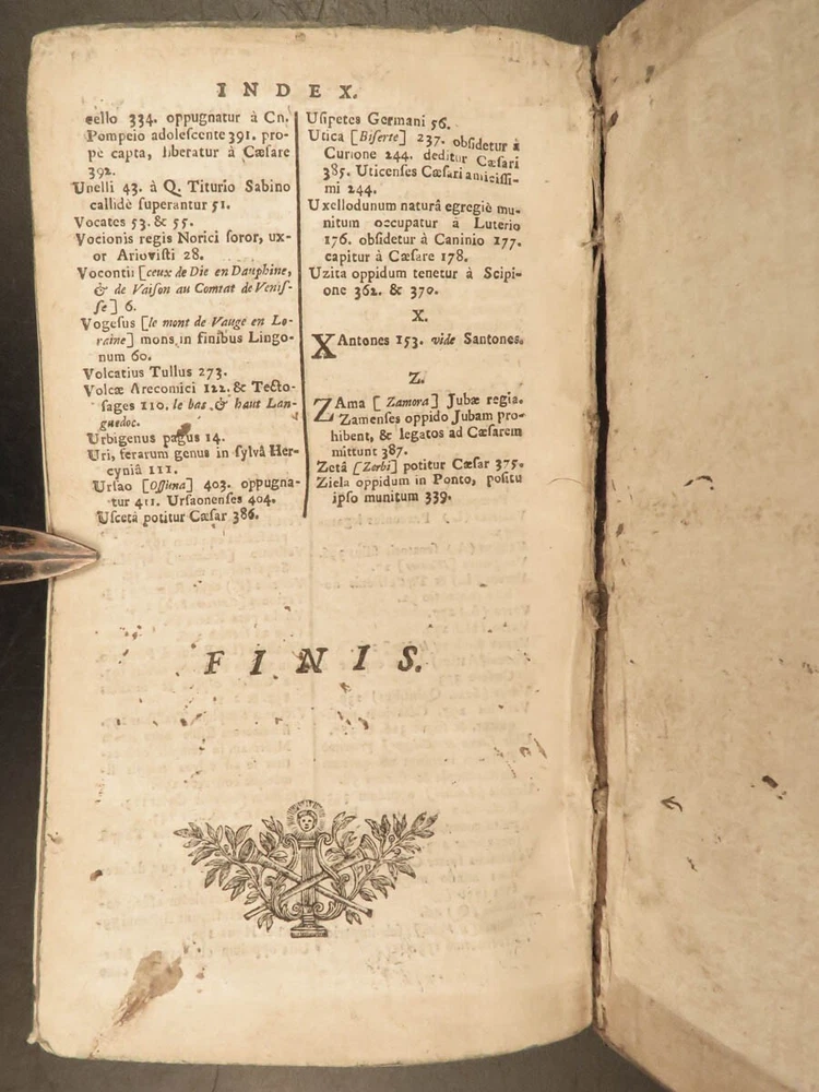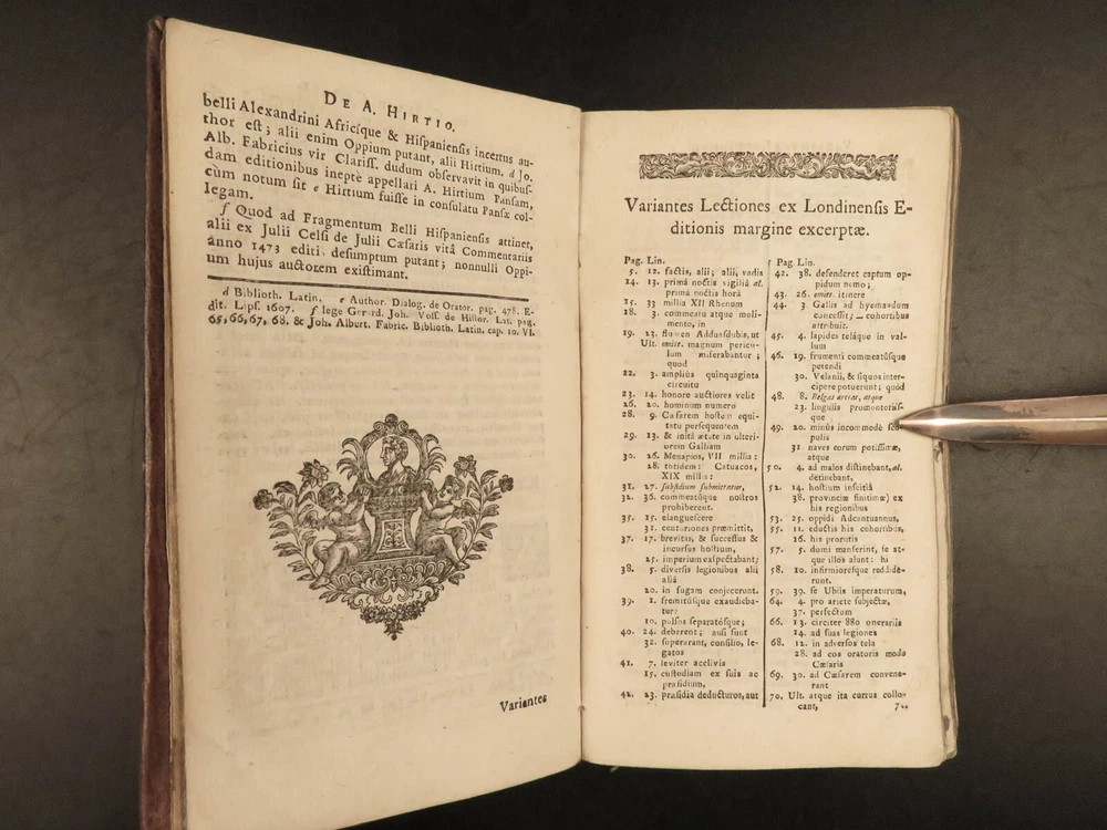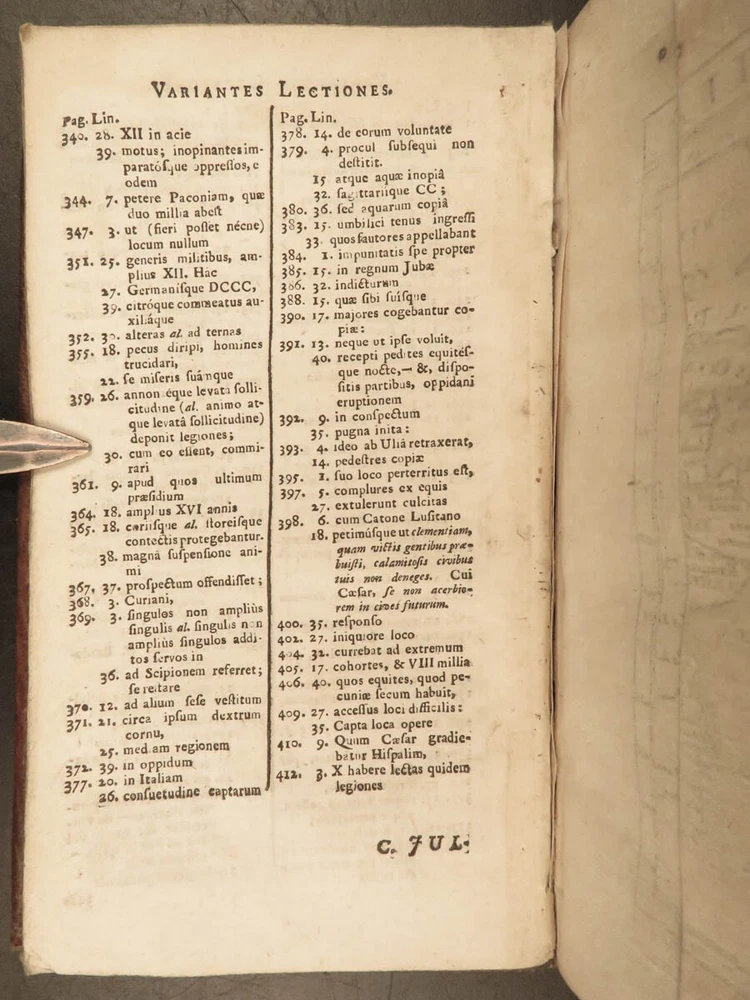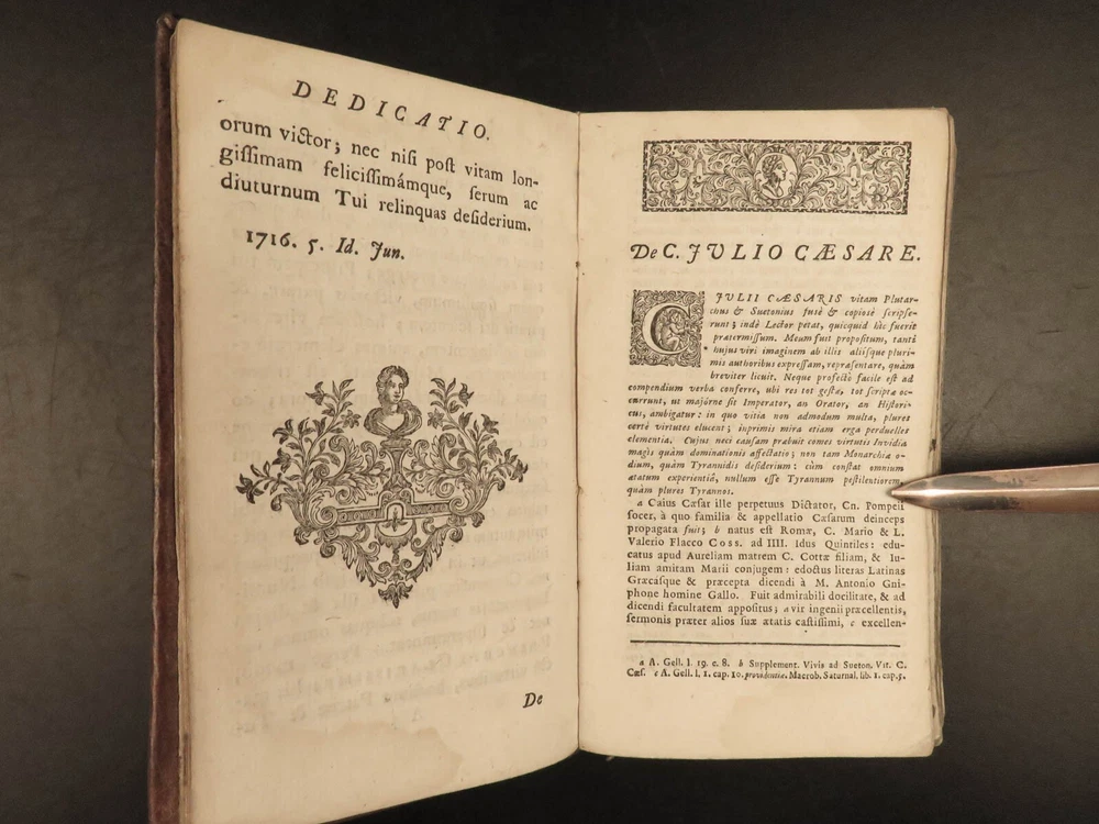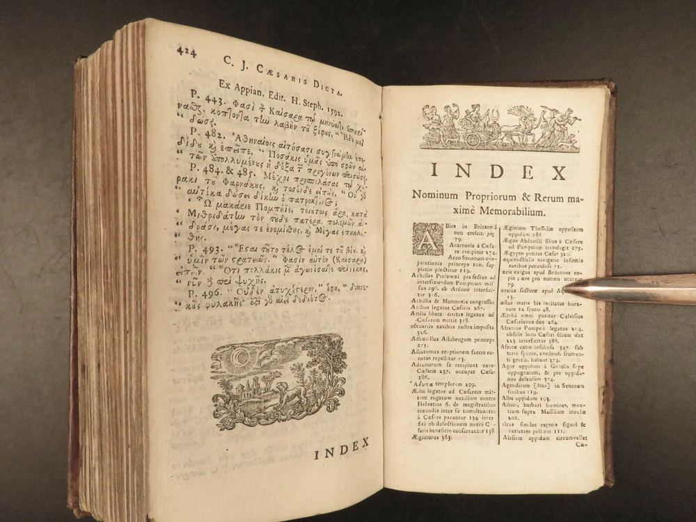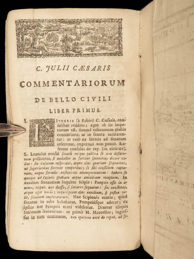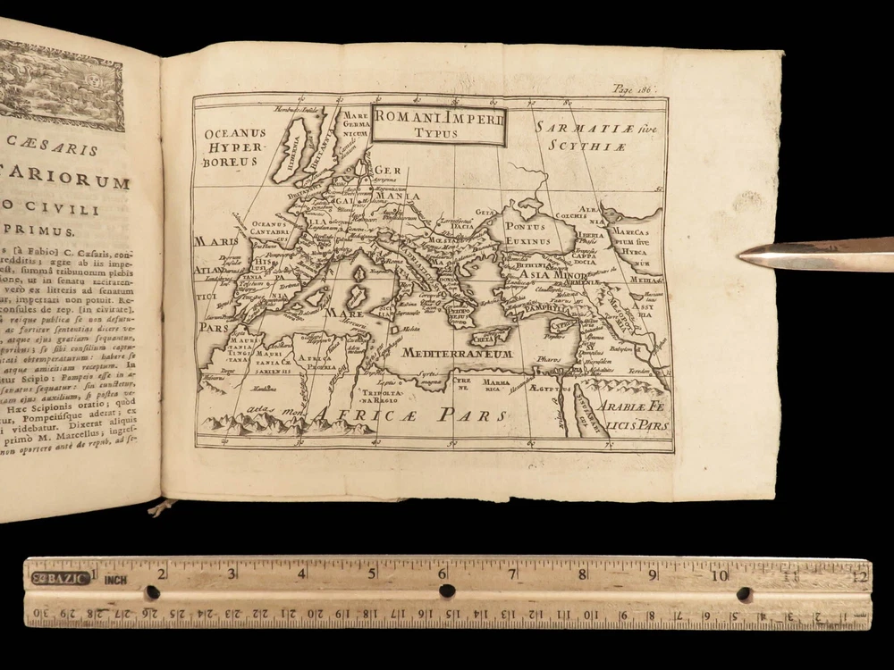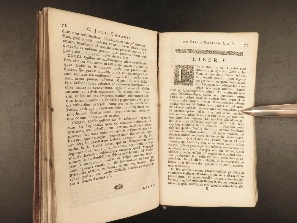 1716 Julius Caesar WAR Commentary Military MAPS Tactics Bellum Africum Hirtius “If you must break the law, do it to seize power: in all other cases observe it!” – Julius Caesar A rare collection of civil war histories and Julius Caesar war commentaries! Julius Caesar’s war commentaries are some of the most prolific military writings! While not specifically known for his writing, Julius Caesar wrote this book which would become a mainstay in the Latin literature canon. It focuses on first-hand account of Julius Caesar in the Callic wars, but it was written as though from a third-person view. This 1716 edition was collected and edited by Michael Maittaire and published in London. It should be noted that included in this edition is Aulus Hirtius' Bellum Alexandrinum and his continuation of Caesar's De bello Gallico. Item number: #23447 Price: $499 CAESAR, Julius C. Julii Cæsaris et A. Hirtii de rebus à C. Julio Cæsari gestis commentarii. Cum C. Jul. Cæsar. Fragmentis Londini: J. Tonson & J. Watts, 1716. Details : · Collation: Complete with all pages o [24], 424, [20] § Pagination errors expected; p. 169-192 bound between p. 216-217 o 3 folding maps + frontis · Provenance: Handwritten – John Collings · Language: Latin · Binding: Leather; tight and secure · Size : ~6.25in X 3.5in (15.5cm x 9cm) Our Guarantee: Very Fast. Very Safe. Free Shipping Worldwide. Customer satisfaction is our priority! Notify us with 7 days of receiving, and we will offer a full refund without reservation! 23447
