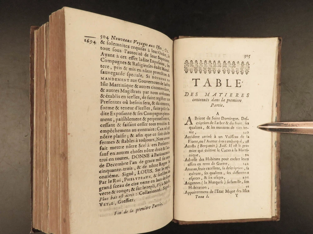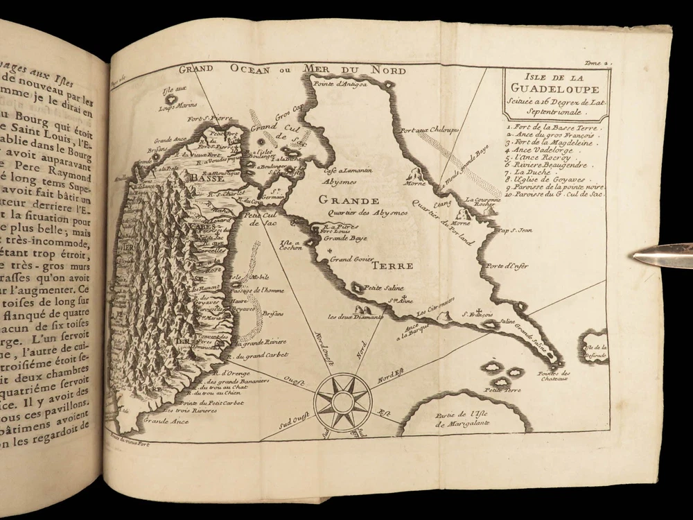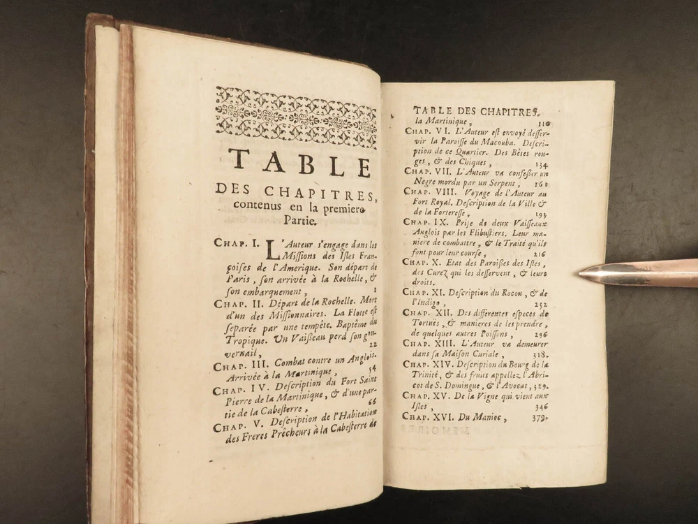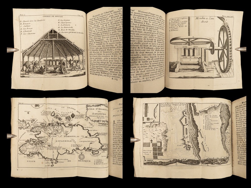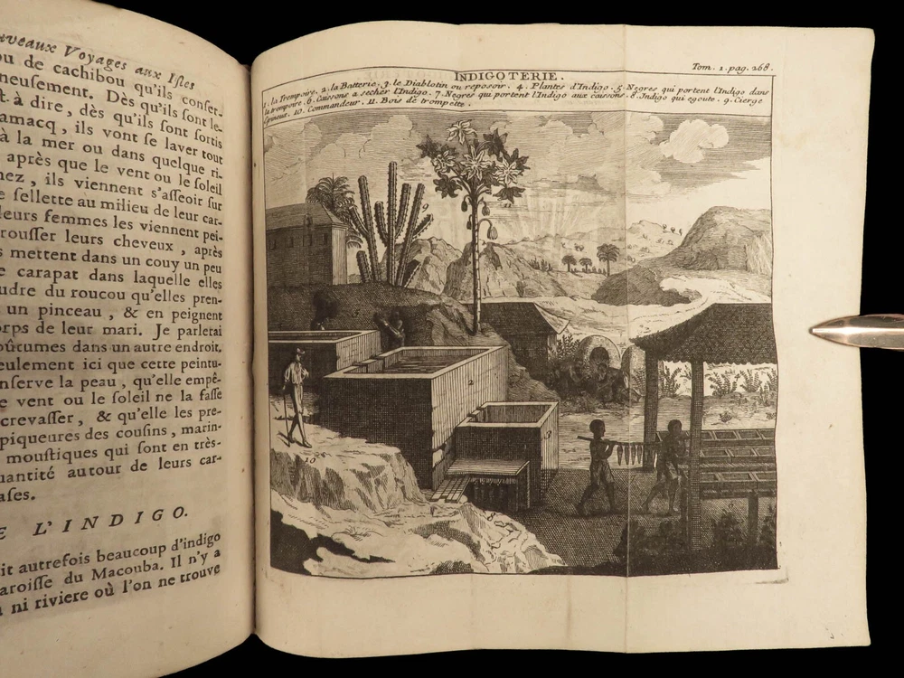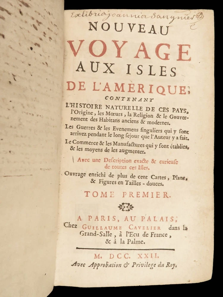 1722 Voyages in America 1 ed Labat West Indies Illustrated MAPS Caribbean Cuba 5v Jean-Baptiste Labat was a 17 th -century Frenchman known for his eclectic interests including exploration. He composed a large portfolio of works, of which, his most famous concern America and his voyages. “ Nouveau voyage aux isles de l’Amerique’ was first published in 1722 and was instantly republished in different languages across Europe. It primarily deals with the West Indies and the Caribbean islands with numerous illustrations that Labat himself illustrated. Many of these illustrations in this first edition are large folding maps; maps of the Caribbean Sea and individual islands such as Isle of Martinique. Other illustrations depict natives, architecture, tools, and scenery. Very impressive and highly desirable first edition! Item number: #23883 Price: $1500 LABAT, Jean-Baptiste Nouveau voyage aux isles de l'Amerique, contenant l'histoire naturelle de ces pays, l'origine, les mœurs, la religion & le gouvernement des habitans anciens & modernes. A Paris: au Palais, chez Theodore Le Gras, M. DCC. XXII. [1722]. First edition. Details : · Collation: Complete with all pages; 5 volumes o Vol. I – xxxvi, [10], 525, [1] o Vol. II – [6], 598 o Vol. III – iv, 549 (i.e., 547), [1] o Vol. V – vi, 524 o Vol. VI – vi, 514, [14] o 85 engravings, many folding § includes 2 folding maps · Provenance: o Armorial bookplate – Sangnier d’Abrancourt o Handwritten – Joannis Sangnier · Language: French · Binding: Leather; tight and secure · Size : ~6.5in X 4in (16.5cm x 10cm) Our Guarantee: Very Fast. Very Safe. Free Shipping Worldwide. Customer satisfaction is our priority! Notify us with 7 days of receiving, and we will offer a full refund without reservation! 23883