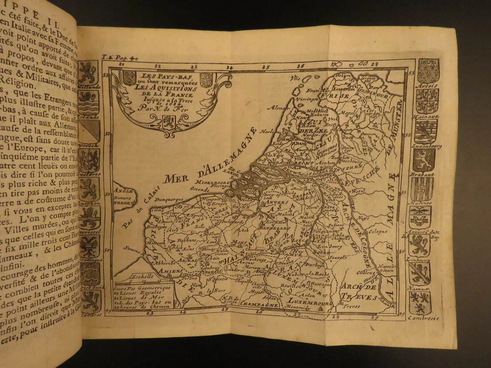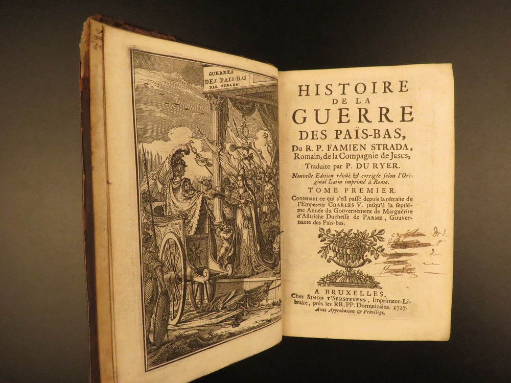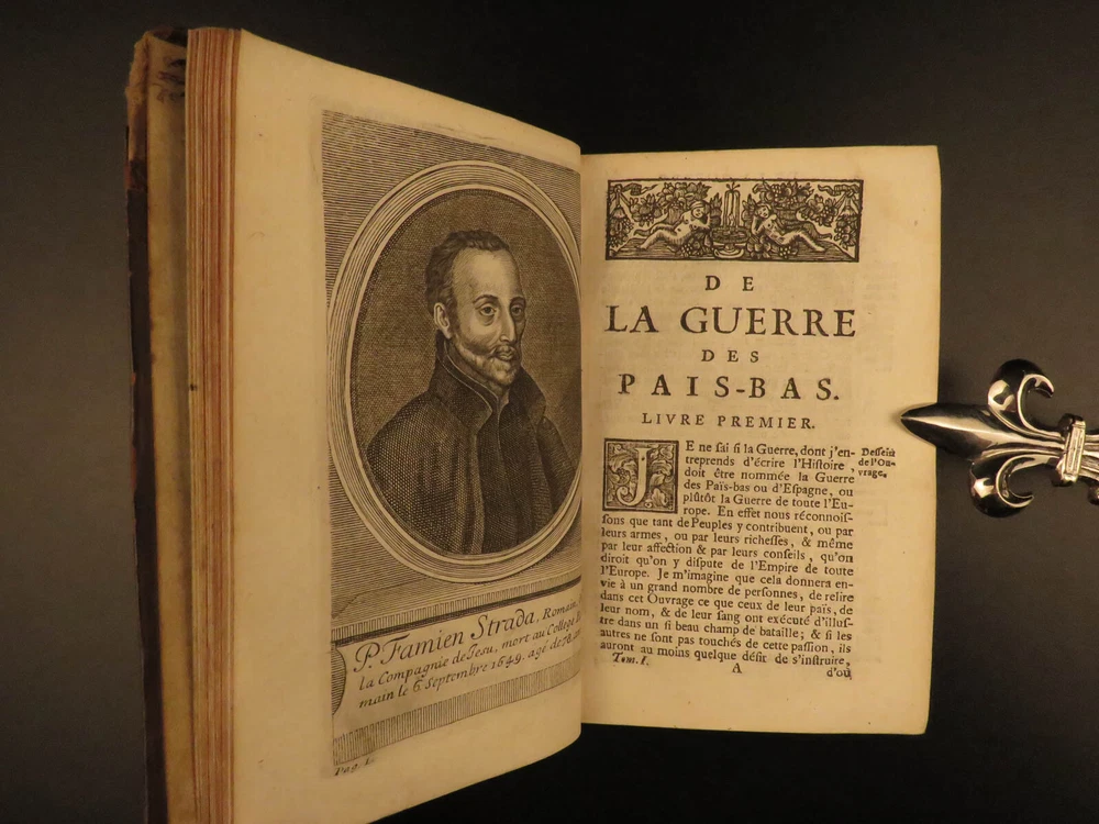 1727 Dutch Wars Belgium Bello Belgico Strada MAPS Battles Habsburg Flanders 2v Famiano Strada, a Jesuit professor of rhetoric, is chiefly remembered for his famous account of the Dutch War. ‘De Bello Belgico ’ was Strada’s most famous work, a work in which Strada describes in detail the battles between Spanish troops of Parma and the Dutch armies under William of Orange. This 1727 edition was translated by du Ryer and includes impressive folding maps. Item number: #11716 Price: $599 STRADA, Famiano Histoire de la guerre des Pais-Bas. Bruxelles : Chez Simon T'Serstevens, 1727. Details : · Collation: Complete with all pages; 2 volumes o Vol. I – [30], 381, [35] § 11 engraved plates o Vol. III – [22], 425, [47] § 14 engraved plates · Language: French · Binding: Leather; tight & secure · Size : ~6.5in X 4in (16.5cm x 10cm) Our Guarantee: Very Fast. Very Safe. Free Shipping Worldwide. Customer satisfaction is our priority! Notify us with 7 days of receiving, and we will offer a full refund without reservation! 11716
