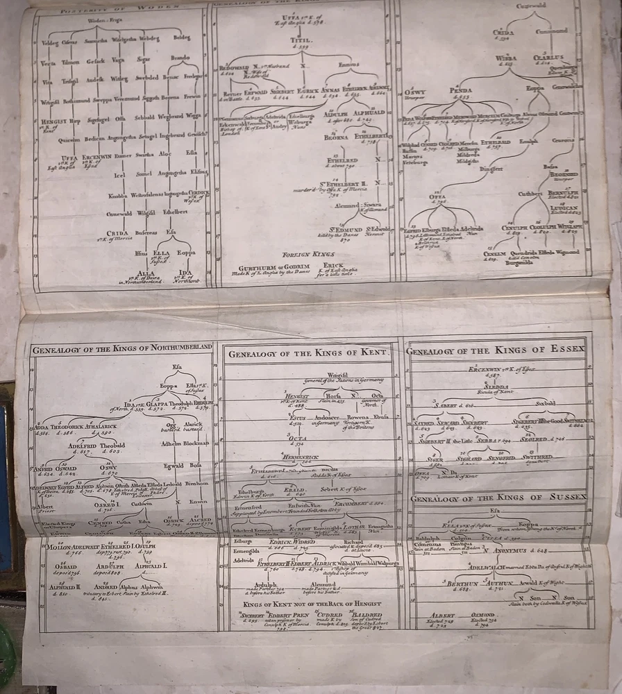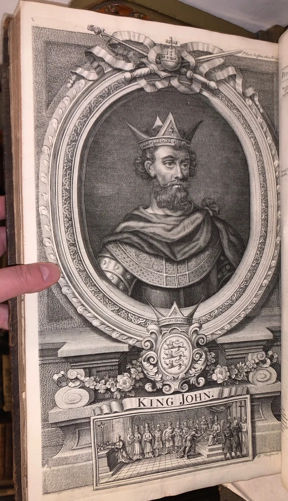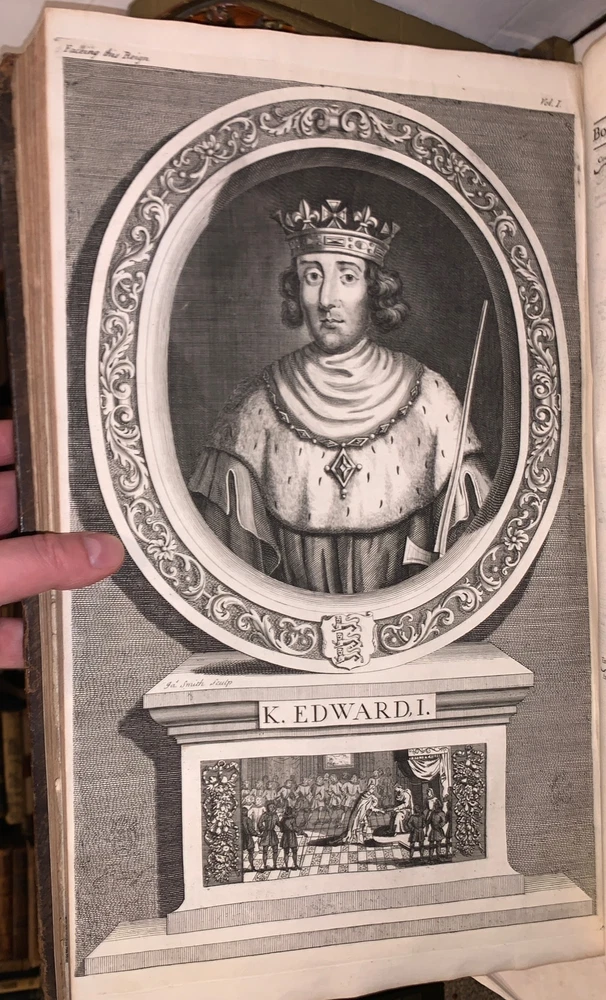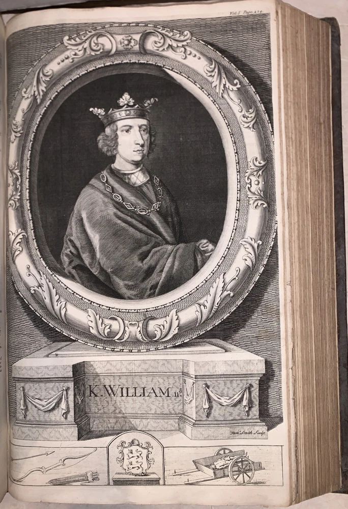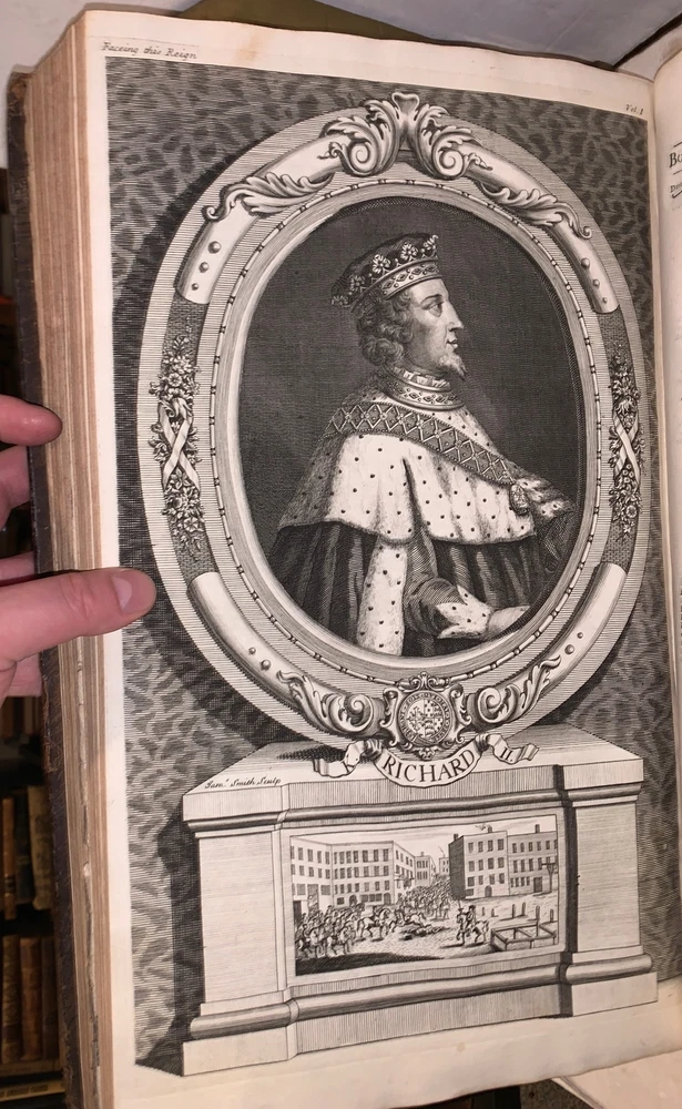The History of England Written originally in French by M. Rapin de Thoyras Translated into English by John Kelly of the Inner Temple, Esq To which is added, critical and explanatory notes; Also Chronological and Genealogical tables: with Some Particulars of the Life of M. Rapin London: James Mechell 1732 First Edition Volume one of three only. The other two volumes were published in 1733 & 1737. Folio, ii, viii, xiv, 822, [1] pages, bound in period full leather. with raised bands to spine. Illustrated throughout with black and white engravings including fold out and double page map. Some rubbing and wear, scuffs, hinges starting to crack, some foxing and discoloration, previous owner's inscription, slightly musty, one plate a little loose, corners bumped, else in good + condition. "The History of England" by Paul de Rapin de Thoyras is a comprehensive chronicle of England's historical events, spanning from its earliest origins through to more contemporary periods of the author's time. First published in the early 18th century, Rapin de Thoyras' work stands out for its meticulous research and detailed narrative, providing a thorough account of England's political, social, and military history. The author, a French historian, brings a unique perspective to English history, blending an outsider's objectivity with rigorous scholarly methods. The multi-volume series delves into the complexities of monarchical reigns, significant battles, religious upheavals, and the evolution of the English legal and governmental systems. Rapin de Thoyras' "The History of England" has been highly regarded for its clarity, accuracy, and insightful analysis, making it a significant contribution to historical literature on England. If you have any questions, feel free to ask, and don't forget to check out my other listings.