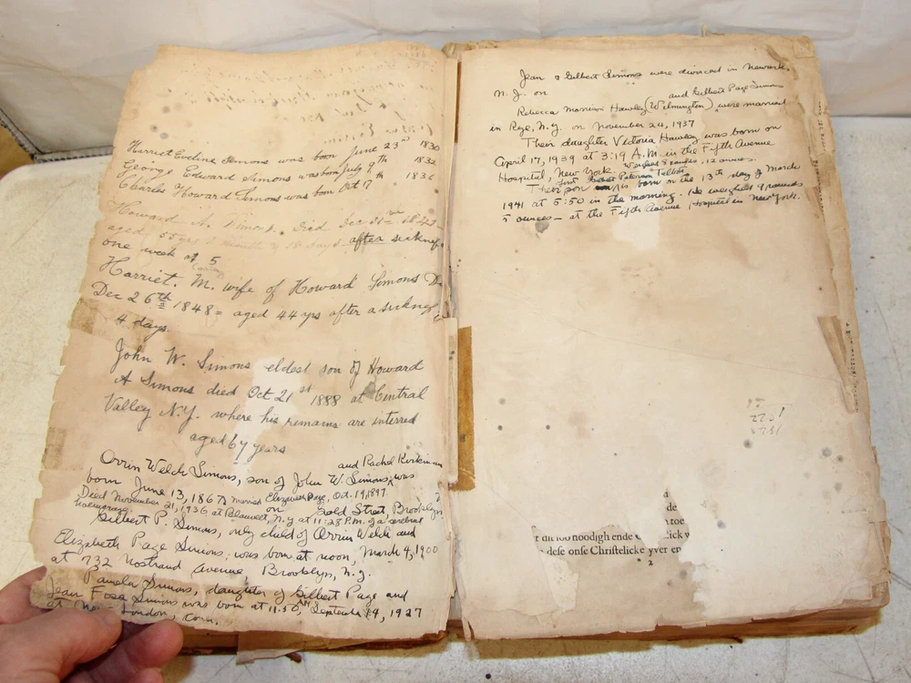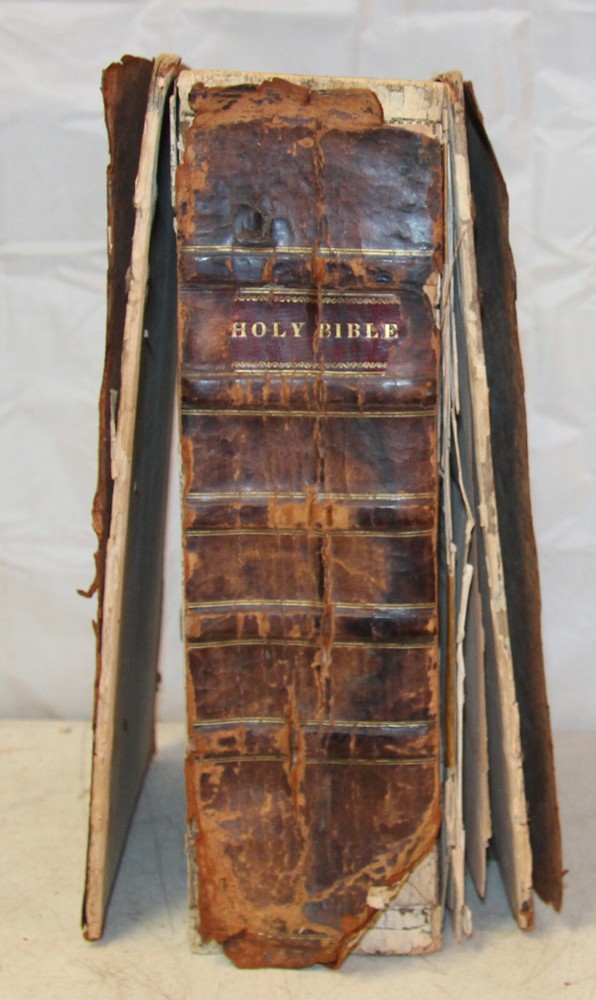 The Bible arrived well packed, it will now receive help, restoration and lots of tender loving care. I believe this antique Bible was advertised perfectly and I want to say God Bless You. Thank you. Howard