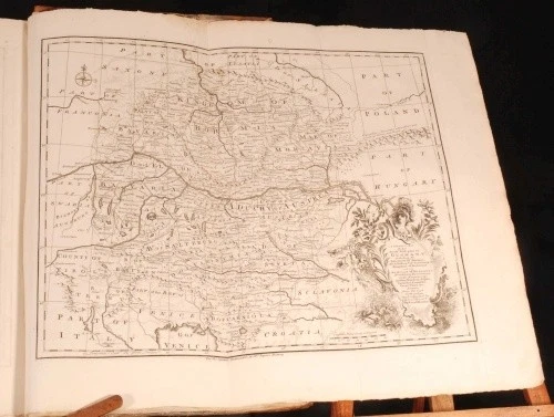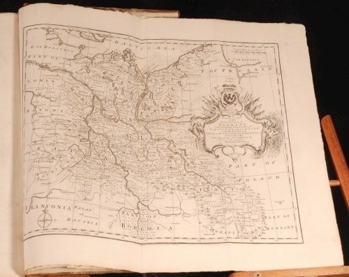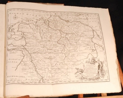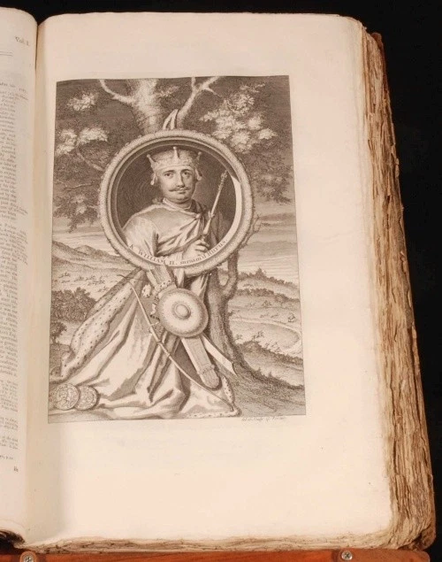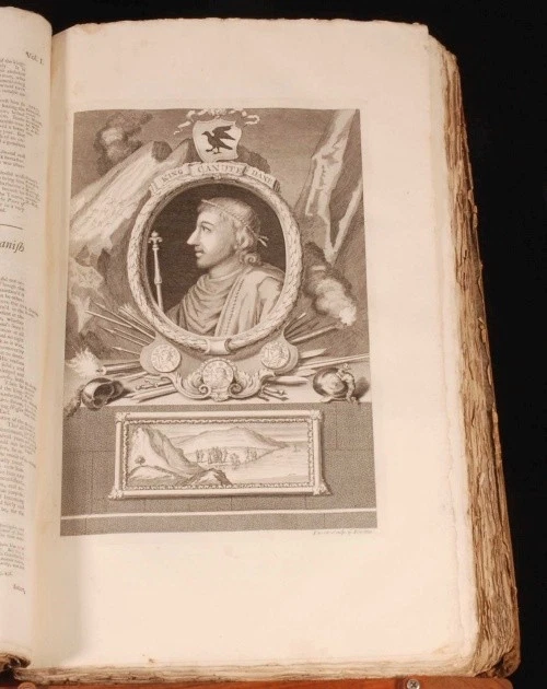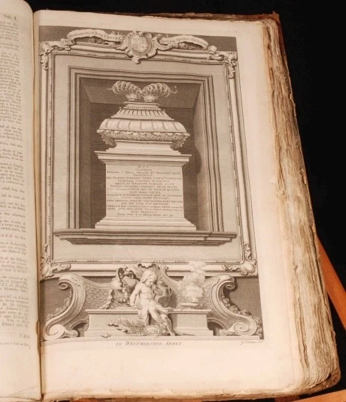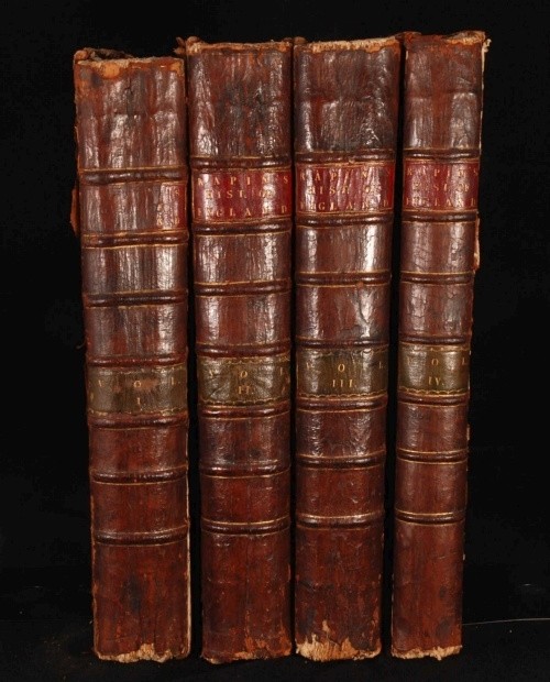 Click here to see our other books! The History of England Mr. Rapin de Thoyras; N. Tindal 1743-5 John and Paul Knapton : London 18" by 11" x, viii, 849pp & 807, 17pp; x, viii, 849pp + 807, 17pp + xxviii, 29-796 + 392, iv, 40pp SUMMARY A four volume leather set of Rapin de Thoyras' 'The History of England' translated into English with additional notes by N Tindal Illustrated,Leather Binding Overall Condition: Good Only This book weighs 20 KG when packed UK Postage: £ 4.49 US Postage: £ 89.99 EU Postage : £ 45.99 European Postage: £ 85.99 Asia Postage: £ 169.99 Worldwide Postage: £ 259.99 DESCRIPTION Volume I has an engraved frontispiece, 3 fold-out maps, 4 foldout plates, and 49 other plates. Volume II has an engraved frontispiece and 12 plates. Volume III has an engraved frontispiece, 2 foldout maps, 1 foldout plate and 6 other plates. Volume IV has an engraved frontispiece, 1 other plate, 5 foldout maps and plans, and all 22 plates of medals. Paul de Rapin (March 25, 1661 - 1725), sieur of Thoyras (and therefore styled Thoyras de Rapin), was a French historian writing under English patronage. The son of Jacques de Rapin, an avocat at Castres (Tarn), he was educated at the Protestant academy of Saumur, and in 1679 became an advocate, but soon afterwards joined the army. The revocation of the Edict of Nantes in 1685, and the death of his father led him to come to England; but, unable to find work there, he went on to the Netherlands where he enlisted in a company of French volunteers at Utrecht, commanded by his cousin, Daniel de Rapin. He accompanied William III to England in 1688, and during the Williamite war in Ireland he took part in the siege of Carrickfergus and the Battle of the Boyne, and was wounded at the Siege of Limerick (1690). Soon afterwards he was promoted to captain; but in 1693 he resigned in order to become tutor to the Earl of Portland's son. After travelling with the boy, he settled with his family (he married Marie-Anne Testart in 1699) in Holland, first at the Hague, then, to save money, at Wesel, in 1707. It was at Wesel that he began his great work, L'Histoire d'Angleterre. Volume I contained, in five books, an account of Britain from the time of the Ancient British down to the Norman Conquest, and made an unsually thorough attempt for its time to rally the various principal sources. Volume II (Books VI-VIII) Covered from William the Conqueror to Henry III; Volume III (IX, X and XI), Edward I to Henry V; Volume IV (XII to XIV), Henry VI to Henry VII; Volume V (XV), Henry VIII; Volume VI (XVI & XVII), Edward VI to Elizabeth, and Vol VII (XVIII), James I and Charles I. It was printed at the Hague in 1724, with illustrations and allegorical endpieces designed and engraved by F.M. La Cave, and with a dedicatory epistle to King George I. The written style is lucid and effective. Although written in French this work was produced for the endorsement of the British monarchy, and at the time of its publication, for the House of Hanover. The original version was almost the only English History available in France in the first half of the eighteenth century. All volumes of his work were translated in the early 18th century by the Rev Nicolas Tindal. Tindal, the nephew and heir of Dr Matthew Tindal, the eminent deist, in a total of 14 volumes. Tindal began this great task as a chaplain to the Royal Navy, as attested in his Forward to an early volume. He added large numbers of informative notes throughout the volumes, which were illustrated with engravings, maps and genealogical tables of great quality. CONDITION In half calf binding with marble paper covered boards and gilt titles to the spines. Externally, rubbed. There is some wear to the extremities including heavy rubbing to the boards with loss to the paper at the edges, and some cracking to the leather on the spines. Joints are starting to crack. Internally, generally firmly bound. Pages are generally clean and bright with the occasional handling mark, odd spot, mild water stain and some pencil and ink annotations. Pages are rough cut. There are repairs to a few of the edges of the pages, mainly in Volume I, including the title page of Volume I. There are two pages with large closed tears to the middle: p 671/2 in Volume II, and p 513/4 in Volume III. Page 11/12 in Volume IV is detached and present. The volumes are missing some plates, although there is no pagination on the ESTC to properly compare this. All the medals plates of Volume IV are present as these are numbered and described in the accompanying text. Overall Condition: Good Only GLOSSARY OF TERMS Overall Condition (Dustwrapper condition rating is shown after that for the book itself, where a dustwrapper is present) Fine - Very well preserved copy showing very little wear Very Good Indeed - Only one or two minor faults, really a very attractive copy Very Good - Quite a wide term meaning no major faults but probably several smaller ones often expected given the age of the book, but still a respectable copy Good - Meaning not very good. Some more serious faults as will be described in the condition report under 'condition' Good Only - Meaning one or more faults that could really do with repair Fair - As with good only above but with other faults leaving a compromised copy even after repair Poor - Really bad and possibly seriously incomplete. We only sell books in this condition where their rarity or value makes them attractive none the less. Major defects will be described. GUARANTEE We offer a full money back guarantee on our descriptions. Please ask for details and conditions. We prefer PAYPAL. If you pay via PAYPAL we will post the item off the same or the next working day with the postage you have selected. Please note we cannot accept USD cheques