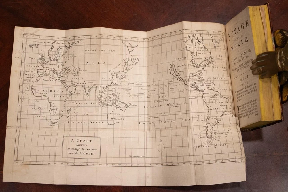BOOK IS IN VERY GOOD+ CONDITION BEAUTIFULLY BOUND IN 3/4 SPECKLED CALF WITH MARBLED BOARDS, SIX COMPARTMENTS AND FIVE RAISED BANDS TO SPINE WITH BRIGHT GILT DETAILS AND TITLE. BINDING AND HINGES ARE EXCELLENT, NEWER END PAPERS AND PASTE DOWNS. NO LOOSE OR MISSING PAGES, PAGES ARE BRIGHT AND CLEAN, WITHOUT MARKS AND MINIMAL FOXING. COMPLETE WITH ALL 3 LARGE FOLD OUT CHARTS, BOOK MEASURES 7.5"x5". SIXTH EDITION, 276 YEARS OLD. A BEAUTIFUL BOOK IN EXCELLENT CONDITION. 1749 A Voyage Round the World by George Anson Fine Leather Fold Out Maps 1749 A Voyage Round the World by George Anson Fine Leather Fold Out Maps Description BOOK IS IN VERY GOOD+ CONDITION BEAUTIFULLY BOUND IN 3/4 SPECKLED CALF WITH MARBLED BOARDS, SIX COMPARTMENTS AND FIVE RAISED BANDS TO SPINE WITH BRIGHT GILT DETAILS AND TITLE. BINDING AND HINGES ARE EXCELLENT, NEWER END PAPERS AND PASTE DOWNS. NO LOOSE OR MISSING PAGES, PAGES ARE BRIGHT AND CLEAN, WITHOUT MARKS AND MINIMAL FOXING. COMPLETE WITH ALL 3 LARGE FOLD OUT CHARTS, BOOK MEASURES 7.5"x5". SIXTH EDITION, 276 YEARS OLD. A BEAUTIFUL BOOK IN EXCELLENT CONDITION. !!!CLICK HERE!!! Visit My eBay Store TO SEE ALL THE BOOKS WE HAVE FOR SALE!!! IF YOU LIKE WHAT YOU SEE THAN SAVE US TO YOUR FAVORITES BY CLICKING HERE. Add me to your Favorite Sellers RARE ANTIQUARIAN BOOKS CAN BE FRAGILE AND NEED TO BE HANDLED WITH CARE. About us: Reagan's Rare Books is a purveyor of Antiquarian books primarily from the 18th and 19th centuries. We love antique books! We search all over the country for the finest rare books, looking for those with beautiful bindings and in great condition so that we can offer you, the customer, a truly rare one of a kind collectible. Paypal Preferred. Please make payment arrangements within 48 hours of winning your auction. We reserve the right to re-list items not paid within 5 days. Shipping *To Insure That Your Package arrives without any Problems , Please Double Check to Make Sure That The Address You Have Selected in eBay Is Correct. All books are carefully bubble wrapped and packed in a box with adequate packing peanuts to prevent any damage during shipment. All books are shipped with delivery confirmation and tracking. Books over $75.00 are automatically insured. RETURNS 100% Satisfaction Guaranteed. Returns accepted for any reason within 30 days of receipt. PLEASE CHECK MY OTHER LISTINGS. POSTING NEW RARE BOOKS DAILY/WEEKLY. Pictures sell! Auctiva offers Free Image Hosting and Editing. 300+ Listing Templates! Auctiva gets you noticed! The complete eBay Selling Solution. Track Page Views With Auctiva's Counter