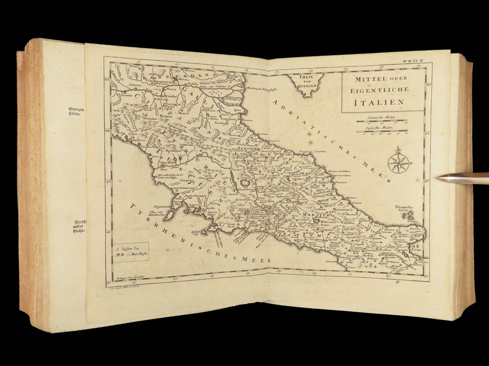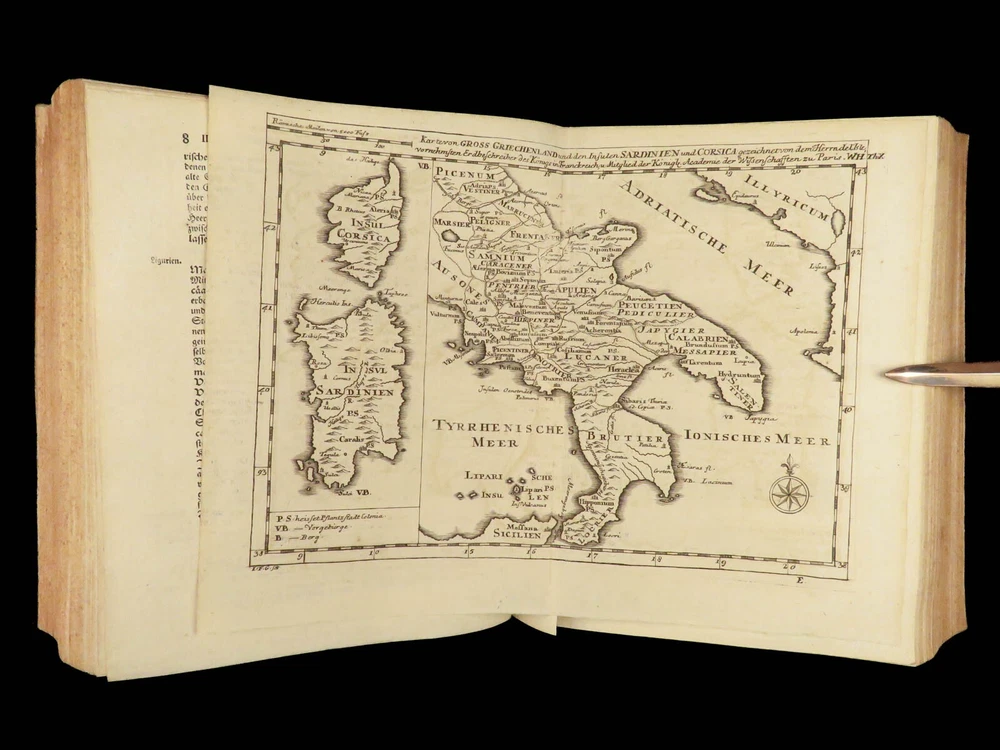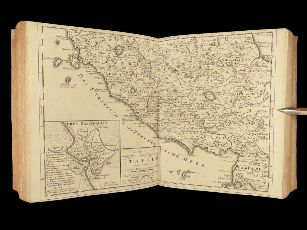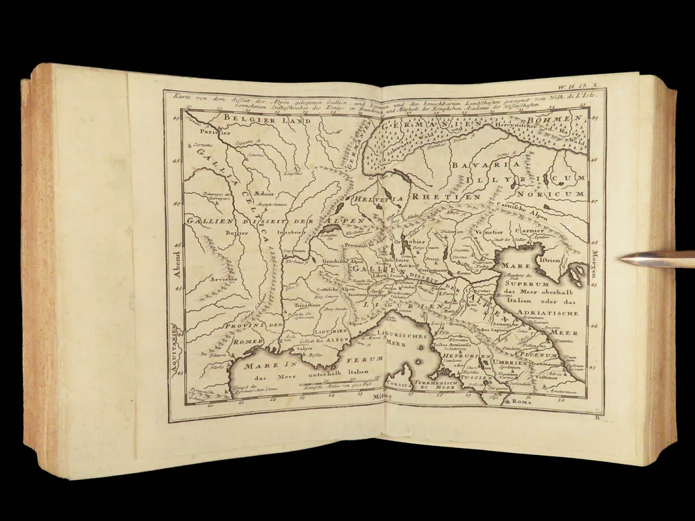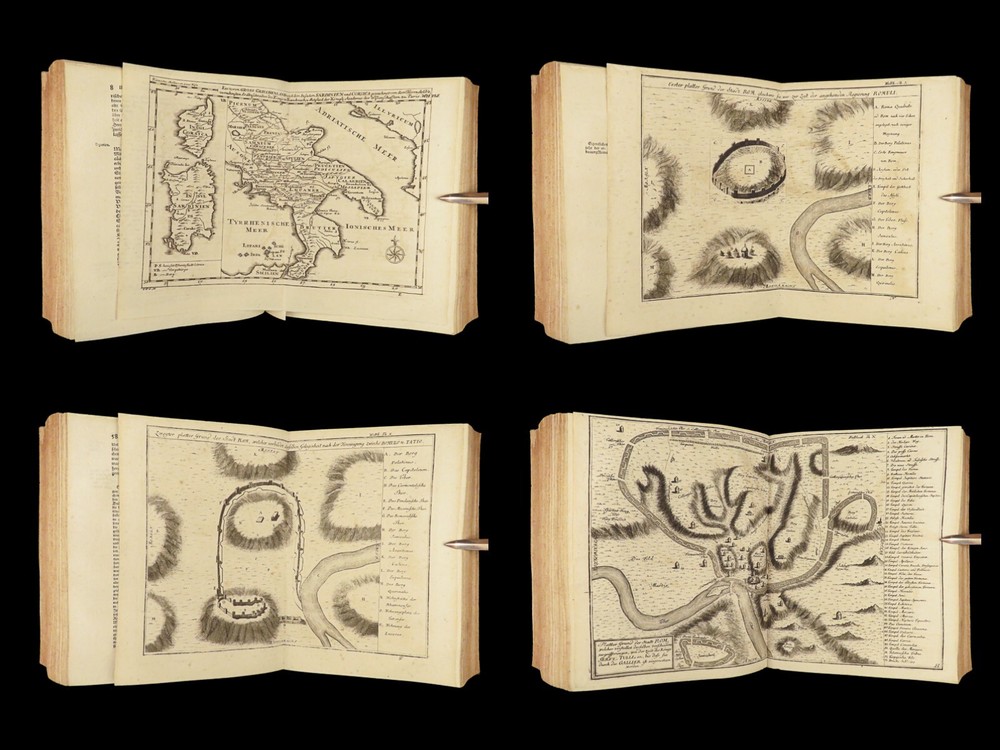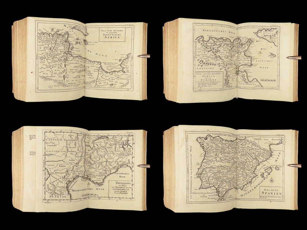 1750 Ancient ISRAEL Holy Land Atlas MAPS Jewish Hebrew Persia Rome Gaul Africa The “ Algemeinen Welthistorie ” was an 18 th -century historical journal collected to provide a complete and thorough history of the world. First edited by Siegmund Baumgarten and later by Johann Semler, this recurring work was a collection of articles by English scholars then translated and edited by Semler and Baumgarten – who Voltaire called ‘the crown of German scholars.’ This particular tome consists of volumes 9-10 and covers interesting histories including: · Jewish history, Old Testament history o Lives of Saul, David, and Jonathan o History of Jericho o Reigns of King Herods o Ongoing feuds between Israel and Palestine (Philistines) o City plan of Jerusalem per Josephus description · Rise of Babylon in Mesopotamia · Life of Roman general, Marcus Crassus governor of Syria, 1 st -c BC · Folding map of Persia, Middle East · Double page map of early Rome · Double page map of Numidia, Rome occupied Northern Africa · Double page map of Rome occupied Gaul, southern France · Earliest (7) kings of Rome including the first three - Romulus, Numa Pompilius, and Tullus · Establishment of the Roman Republic by Lucius Brutus and Poplicola · Scipio Africanus, Rome victories over Carthage in 2 nd -c BC Item number: #26404 Price: $750 BAUMGARTEN, Siegmund Jacob; SEMLER, Johann Uebersetzung der Algemeinen Welthistorie die in Engeland durch eine Geselschaft von Gelehrten ausgefertiget worden Halle: Verlag Joh. Justinus Gebauers, 1750-1751. 1 st edition Details : · Collation: Complete with all pages; 2 volumes in 1 tome o Vol. 9 – 11, [1], 746 o Vol. 10 – [2], 80, 708 o 17 double-page maps and engravings, plus engraved frontispiece in each volume · Language: German · Binding: Leather; tight and secure · Size : ~9.75in X 8.25in (25cm x 20.5cm) Our Guarantee: Very Fast. Very Safe. Free Shipping Worldwide. Customer satisfaction is our priority! Notify us with 7 days of receiving, and we will offer a full refund without reservation! 26404