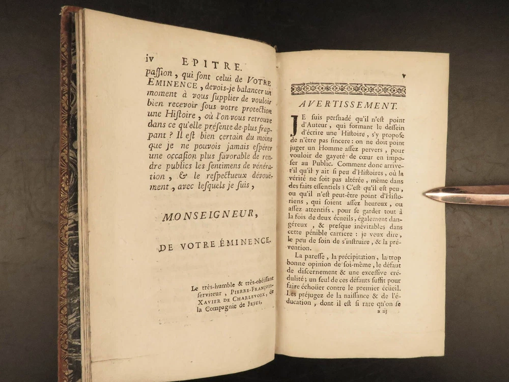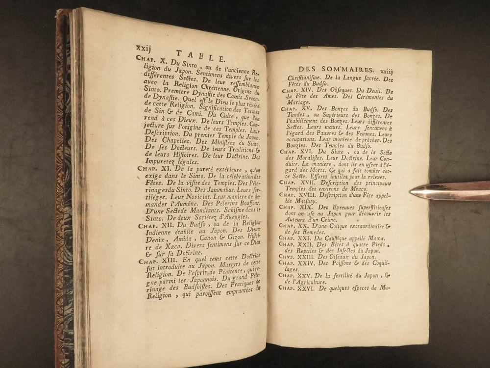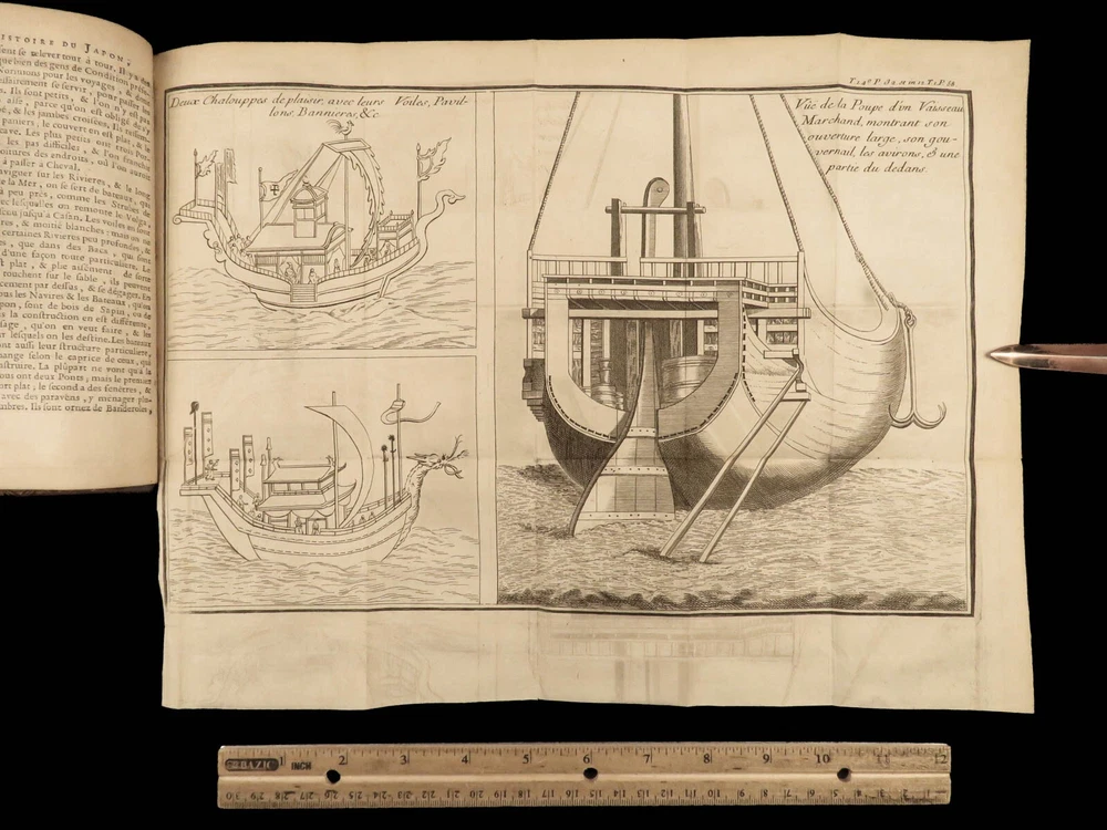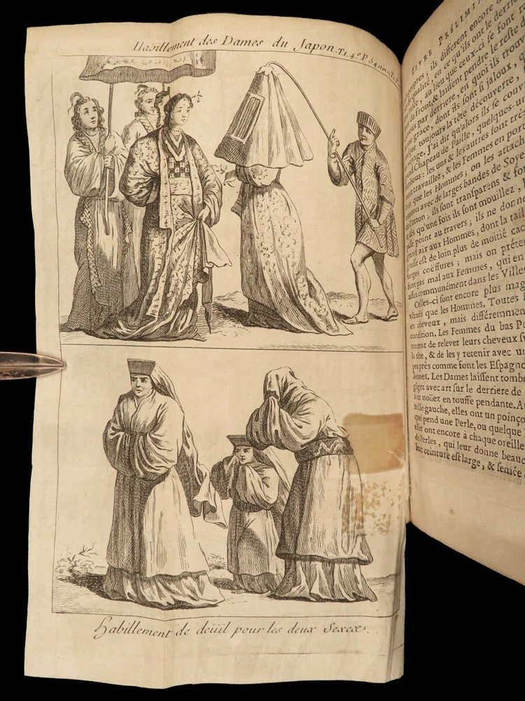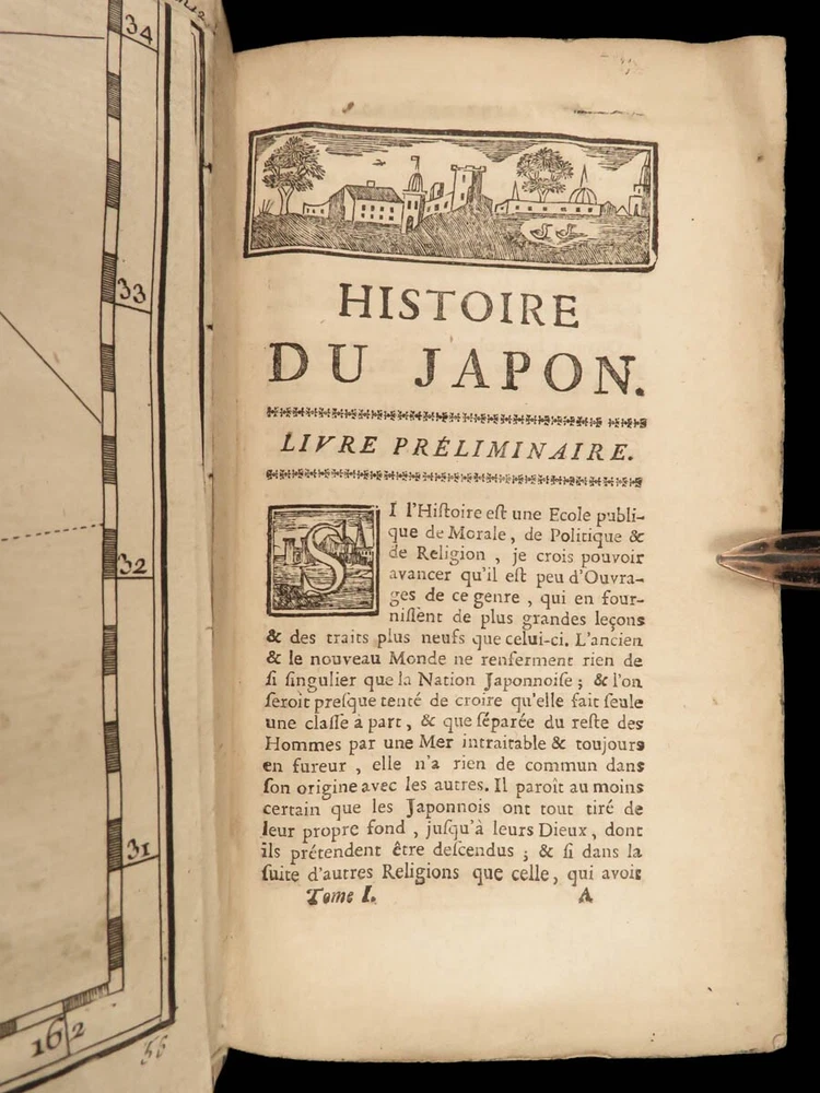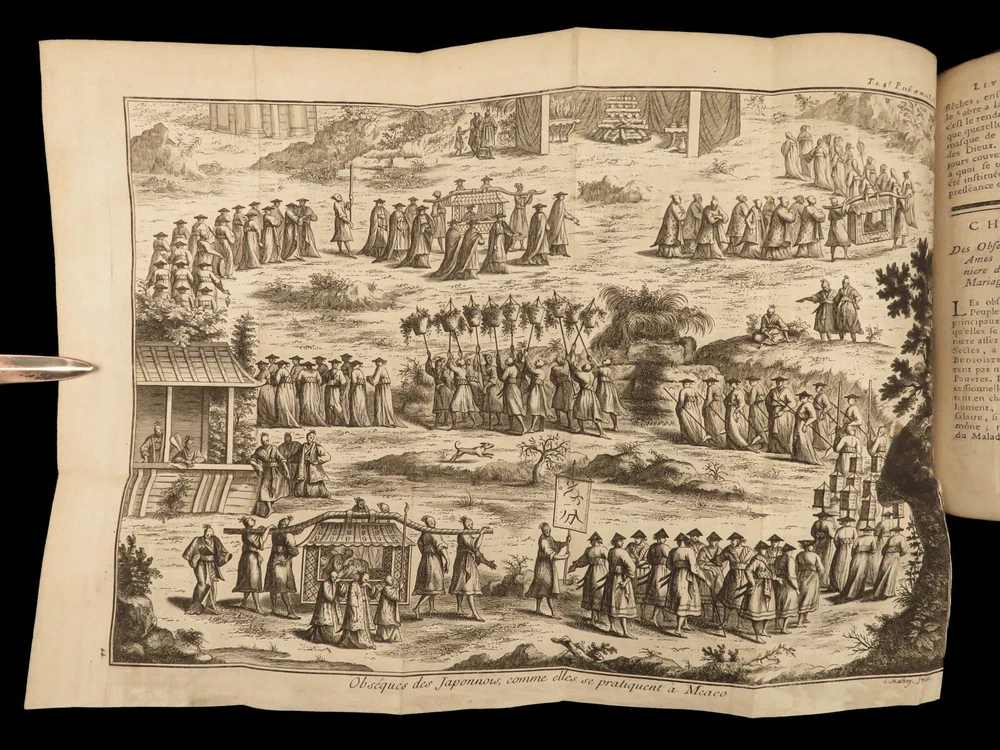 1754 Charlevoix JAPAN 1 ed Jesuit Voyages TOKYO Maps Ships FAMOUS Korea China 6v Pierre Charlevoix was an 18 th -century French Jesuit writer known for his informational surveys of Jesuit missionary voyages around the world. He published reports on voyages in Paraguay, Brazil and other South American countries, as well as voyages in Asia even though he himself never visited these locations. One of his best works was his “ History of Japan ”. This work provides a comprehensive overview of Japanese history which proved to be a catalyst for the western world understanding Japanese culture. This highly desirable and incredibly valuable 1754 edition of Charlevoix’s “ Japan ” consist of 56 engravings many of which are exquisite folding maps of Japan, Korea, and China! Other engravings depict Japanese costume and manners, ships and weaponry, customs, language, and city plans of Kyoto, Osaka, and Tokyo (Edo). Item number: #25054 Price: $3500 CHARLEVOIX, Pierre Histoire du Japon Paris: Chez Didot, 1754. First edition. Details : · Collation: Complete with all pages; 6 volumes o Vol. I – [4], xxiv, 417, [1] o Vol. II – [4], lxxxv, [3], 429, [1] o Vol. III – [4], 558, [2] o Vol. IV – [4], 534, [2] o Vol. V – [4], 479, [1] o Vol. VI – [4], 386, [6] o 56 full-page and folding engravings § Maps! · References: Cordier ‘Japonica’ 424 · Provenance: Bookplate – M. Jausions · Language: French · Binding: Leather; tight and secure · Size : ~6.75in X 4in (17cm x 10cm) · Very rare and desirable with auction records and price comaparisons between $5500-$9000 Our Guarantee: Very Fast. Very Safe. Free Shipping Worldwide. Customer satisfaction is our priority! Notify us with 7 days of receiving, and we will offer a full refund without reservation! 25054