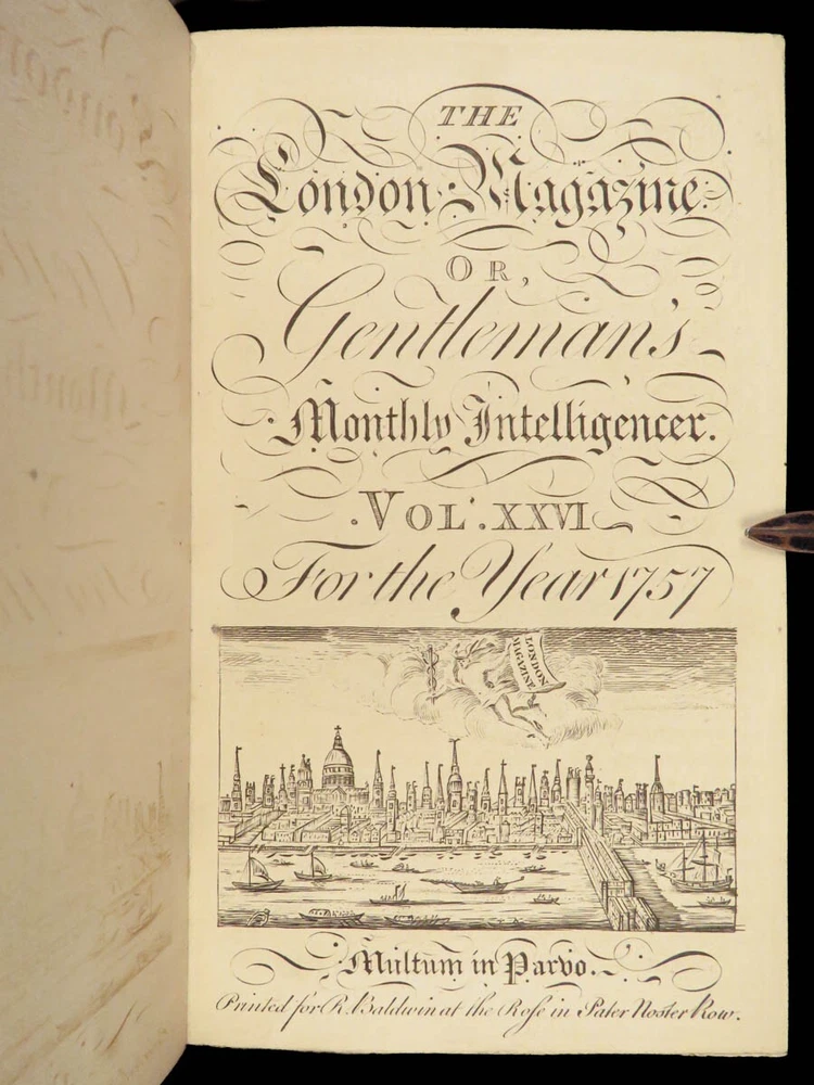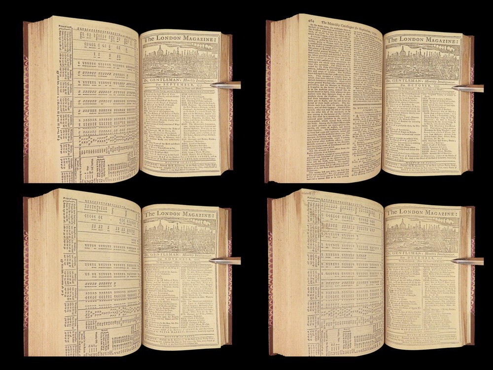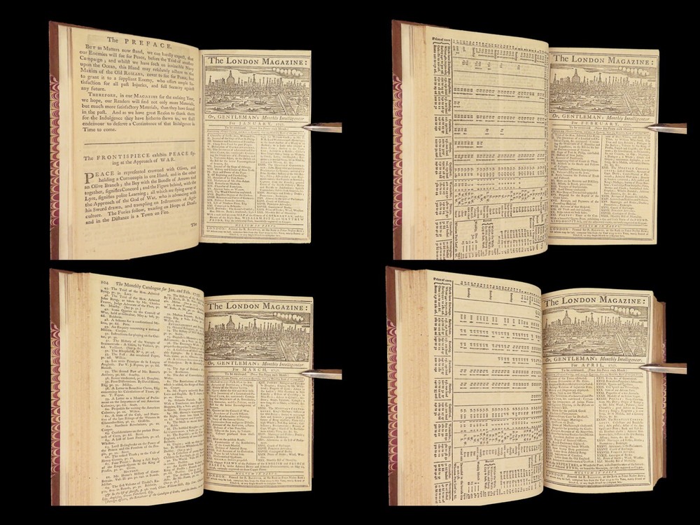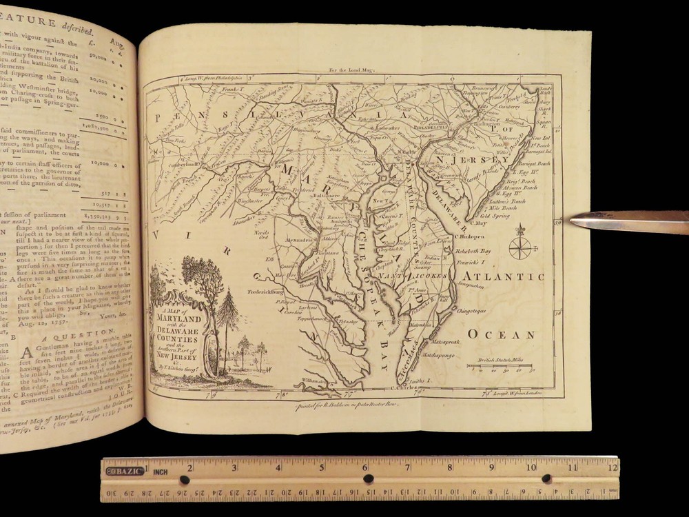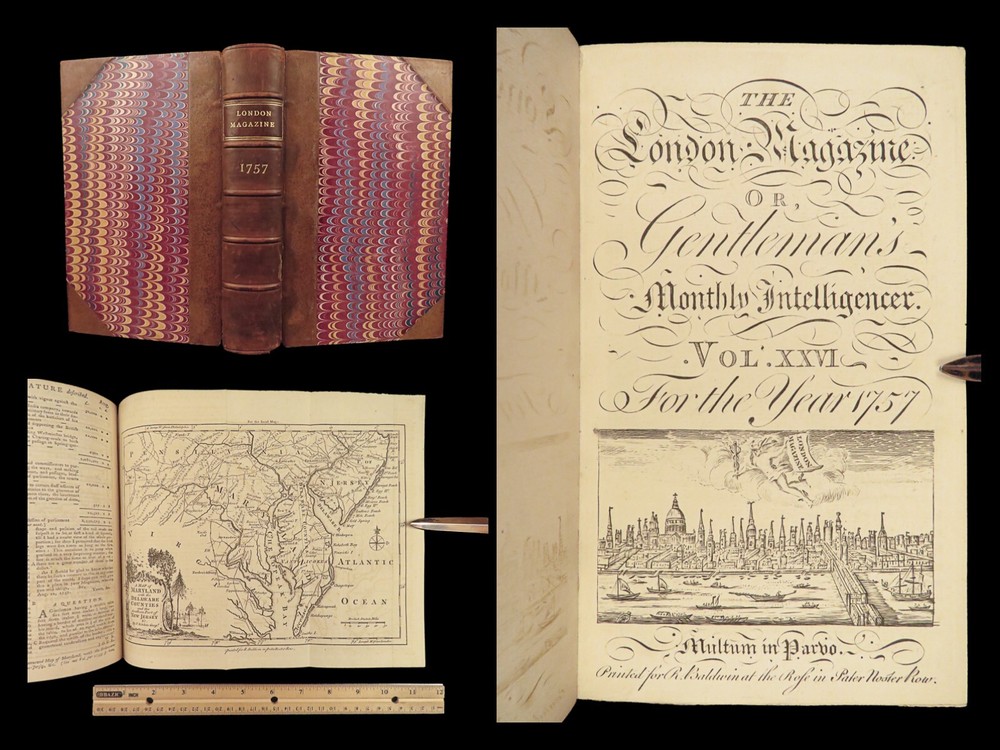 1757 Colonial USA MAP 1 ed Choctaw INDIANS GEORGIA & Carolina Colonies Americana A rare 1757 printing of the famed periodical, ‘ The London Magazine’ . This volume includes notable topics such as: · Biographical sketch of William Pitt · Notes and journal descriptions of the Siege of Oswego during the French and Indian War · Description of the Siege of Fort St Philip during the Seven Years’ War · Ship movement and positioning of French and English navies during the Seven Years War · An account of British plantations in American, South Carolina o Conspiracy of negro slaves uprising and murdering white owners · Descriptions of battles led by Frederick II of Prussia · State of British colonies, confined spaces – need for expansion · Descriptions of Choctaw and Creek Indians in Georgia, Indian warriors Item number: #26032 Price: $750 periodical The London Magazine, Vol. XXVI. London: printed for Baldwin, 1757. 1 st edition Details : · Collation: Complete o [2], 654, [24] § Pagination errors expected o Includes folding map · Language: English · Binding: Leather; tight and secure · Size : ~8.5in X 5.5in (21.5cm x 14cm) Our Guarantee: Very Fast. Very Safe. Free Shipping Worldwide. Customer satisfaction is our priority! Notify us with 7 days of receiving, and we will offer a full refund without reservation! 26032