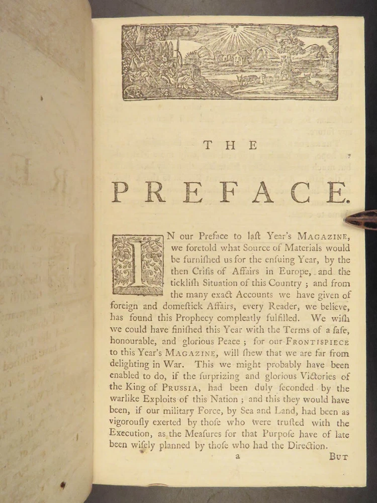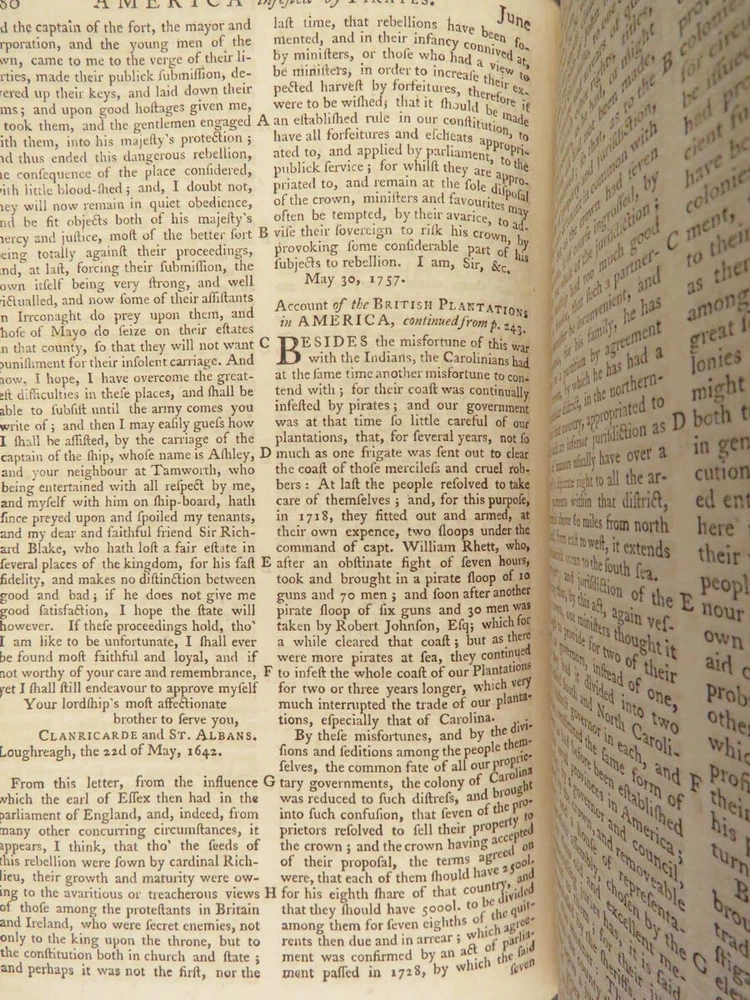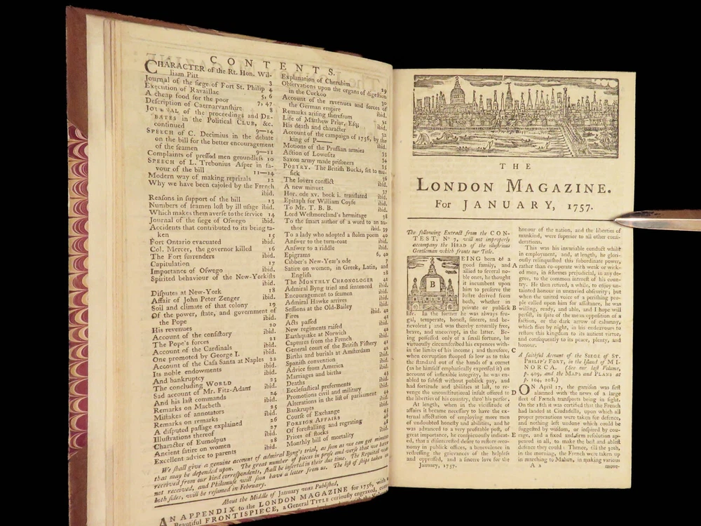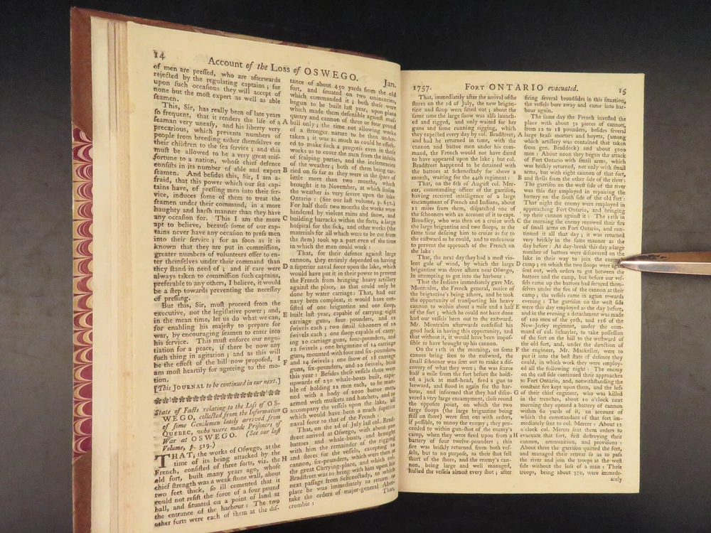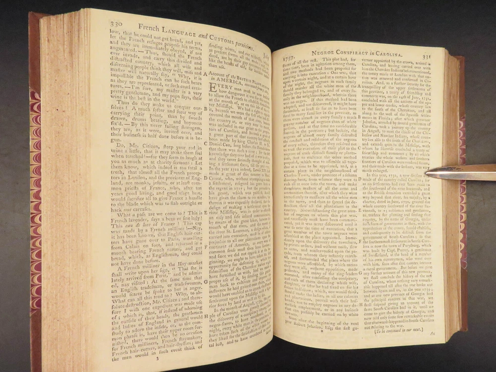 1757 Colonial USA MAP 1 ed Choctaw INDIANS GEORGIA & Carolina Colonies Americana A rare 1757 printing of the famed periodical, ‘ The London Magazine’ . This volume includes notable topics such as: · Biographical sketch of William Pitt · Notes and journal descriptions of the Siege of Oswego during the French and Indian War · Description of the Siege of Fort St Philip during the Seven Years’ War · Ship movement and positioning of French and English navies during the Seven Years War · An account of British plantations in American, South Carolina o Conspiracy of negro slaves uprising and murdering white owners · Descriptions of battles led by Frederick II of Prussia · State of British colonies, confined spaces – need for expansion · Descriptions of Choctaw and Creek Indians in Georgia, Indian warriors Item number: #26032 Price: $750 periodical The London Magazine, Vol. XXVI. London: printed for Baldwin, 1757. 1 st edition Details : · Collation: Complete o [2], 654, [24] § Pagination errors expected o Includes folding map · Language: English · Binding: Leather; tight and secure · Size : ~8.5in X 5.5in (21.5cm x 14cm) Our Guarantee: Very Fast. Very Safe. Free Shipping Worldwide. Customer satisfaction is our priority! Notify us with 7 days of receiving, and we will offer a full refund without reservation! 26032
