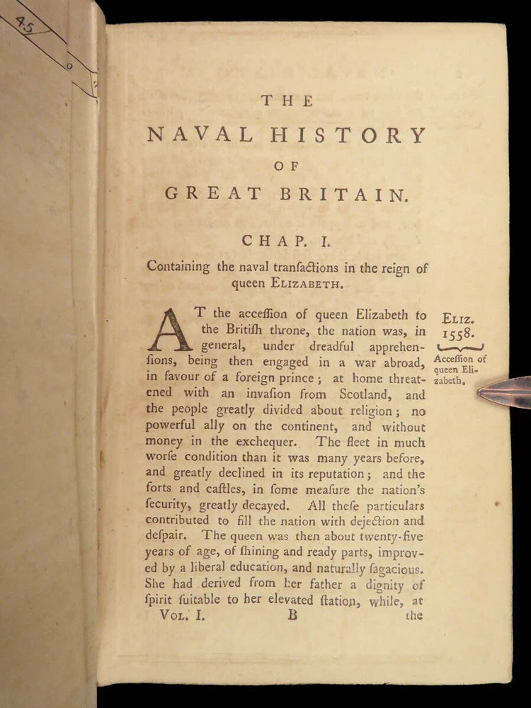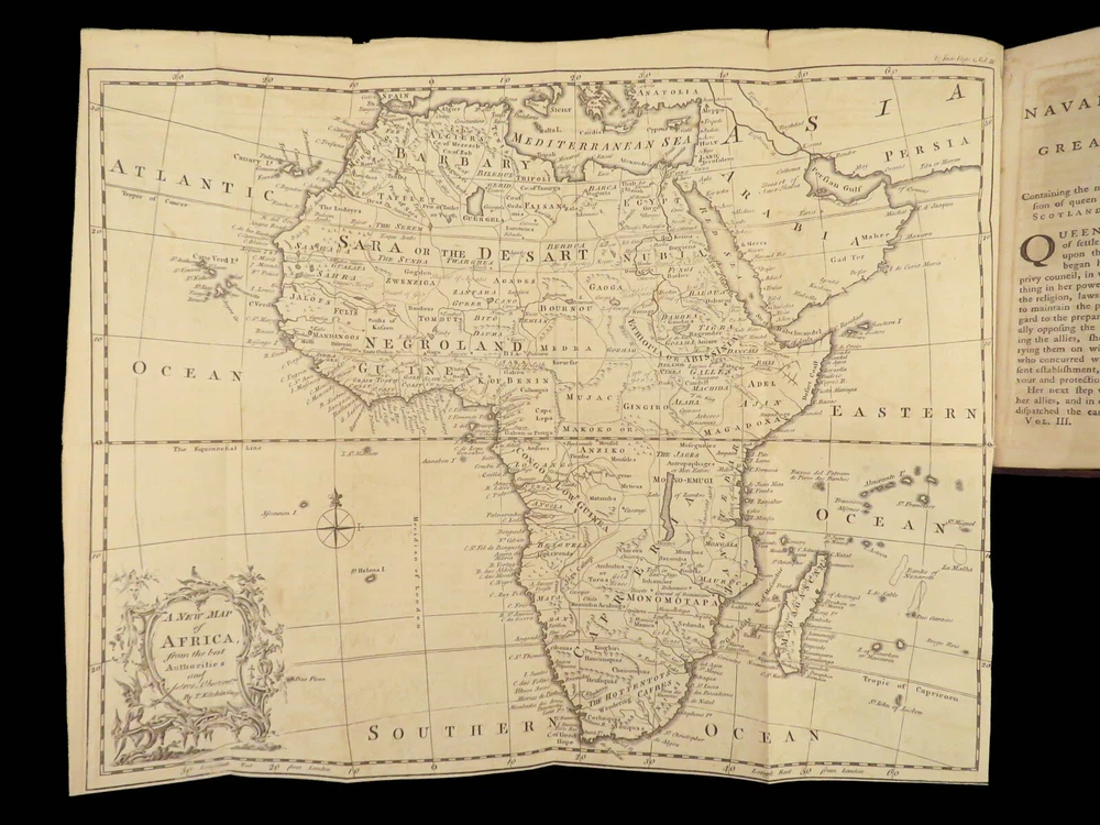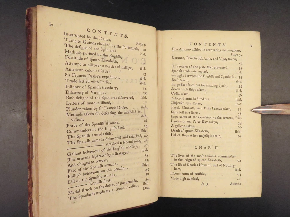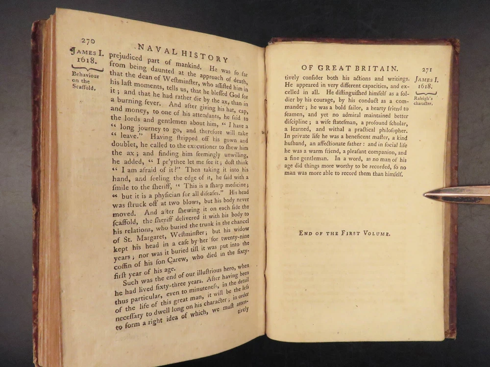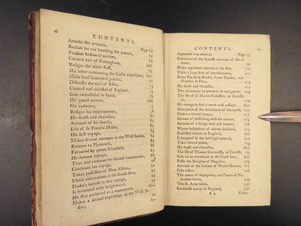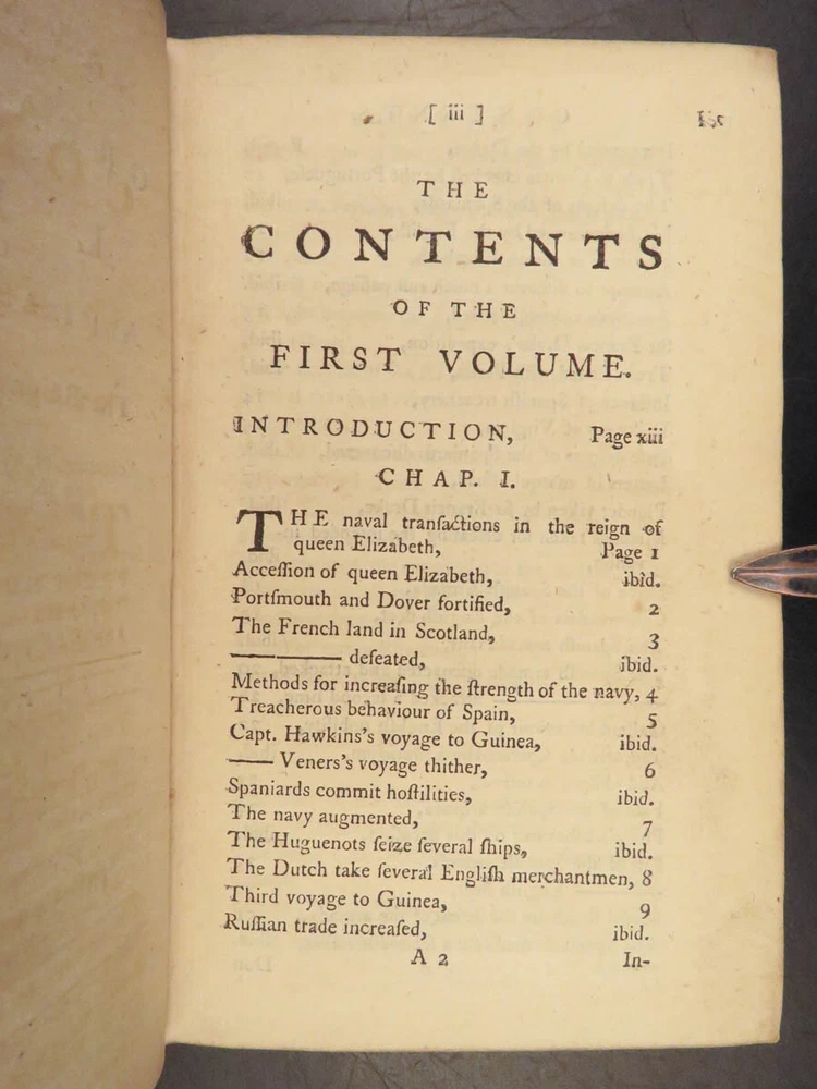 1758 Naval History Britain Barrow Voyages MAPS Walter Raleigh Francis Drake 4v John Barrow was an 18 th -century English naval historian remembered for his illustrated dictionaries. Perhaps his best work is ‘ The Naval History of Great Britain’ , a book about the lives and military conquests of British admirals and ship commanders. It offers commentary on some of the most notable sea battles during the Seven Years War. This highly valuable and desirable work contains impressive folding engravings depicting views of ships, portraits of admirals such as Walter Raleigh, Francis Drake, and Robert Blake, and maps of the world ! Item number: #26028 Price: $950 BARROW, John The naval history of Great Britain; with the lives of ... admirals and commanders ... and including ... the present war to 1758. London: Printed for James Rivington, 1758 1 st edition Details : · Collation: Complete with all pages; 4 volumes o Vol. 1 – xlviii, 271, [1] o Vol. 2 – xii, 336 o Vol. 3 – xi, [1], 339 (i.e., 340) o Vol. 4 – xi, [1], 370 o 9 engraved portraits o 4 folding maps · Language: English · Binding: Leather; tight and secure · Size : ~6.75in X 4.5in (17.5cm x 11cm) Our Guarantee: Very Fast. Very Safe. Free Shipping Worldwide. Customer satisfaction is our priority! Notify us with 7 days of receiving, and we will offer a full refund without reservation! 26028