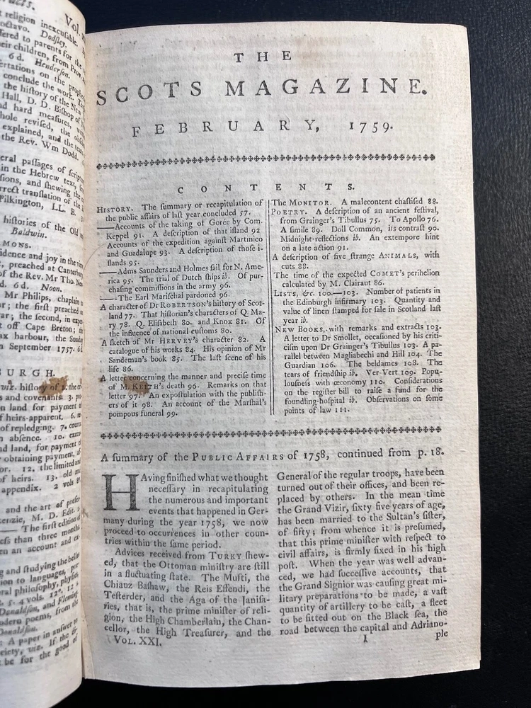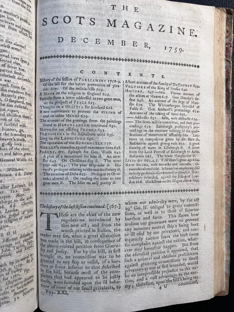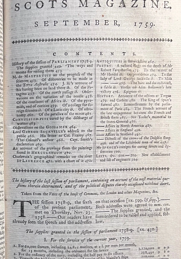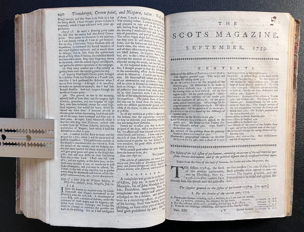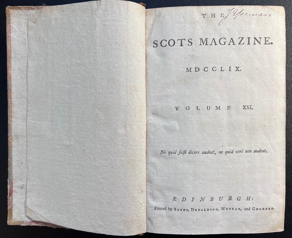 1759 The Scots Magazine Volume XXI Edinburgh French Indian War and several maps. Real nice French Indian War info and map on Quebec and St Lawrence.