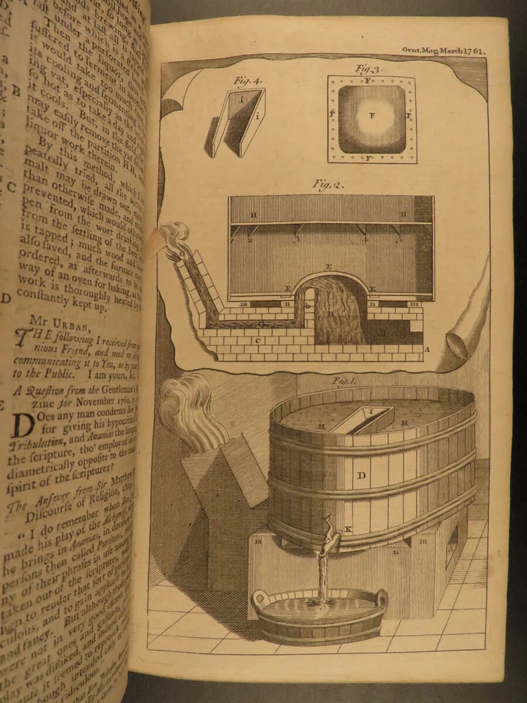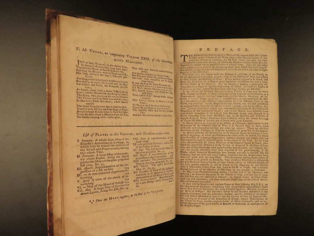 1761 1 ed Egyptian Mummies St Malo Raid Atlas MAPS Beer Brewing Ceylon Sri Lanka The Gentleman’s Magazine was an English periodical which first appeared in 1731. It was published without interrupt for nearly 200 years and was the first of its kind to use the term ‘magazine’. It was published by Edward Cave, pseud. Sylvanus Urban. This volume from the 1761 edition includes a variety of important and interesting contents including: · Account of the British naval raid on St. Malo, 1758 · Description of Ceylon in the mid-18 th -century · Details and description on Egyptian mummification and embalming o Egyptian gods – Harpocrates, Isis, Osiris · Sugar trade in the Americas · Processes of brewing beer (with a full-page engraving of the setup) Item number: #16033 Price: $750 URBAN, Sylvanus [Edward Cave] The Gentleman’s Magazine: and historical Chronicle volume XXXI London: printed for D. Henry, 1761. 1 st edition Details : · Collation: Textually complete with all pages o [4], 637, [17] o 6 maps, 8 engraved plates · Provenance: Armorial Bookplate – Charles MacKenzie of Kilcoy o Charles MacKenzie of Kilcoy was an ensign in the 78 th Highlanders, 2 nd battalion established in 1794. The regiment received battle honors in the Battle of Assaye, as well as the Battle of Maida and the Invasion of Java during the Napoleonic Wars. The regiment would merge with the 72 nd Highlanders in 1881 to become the Seaforth Highlanders. · Language: English · Binding: Leather; secure · Size : ~8.25in X 5.25in (21cm x 13.5cm) Our Guarantee: Very Fast. Very Safe. Free Shipping Worldwide. Customer satisfaction is our priority! Notify us with 7 days of receiving, and we will offer a full refund without reservation! 16033