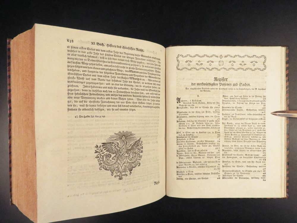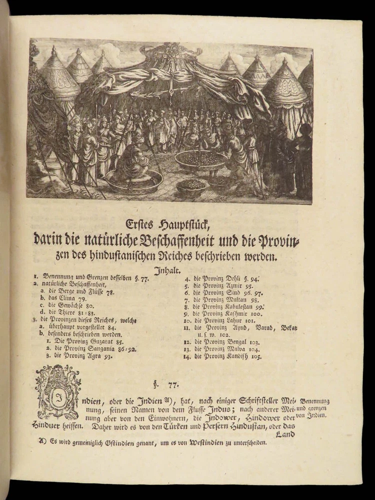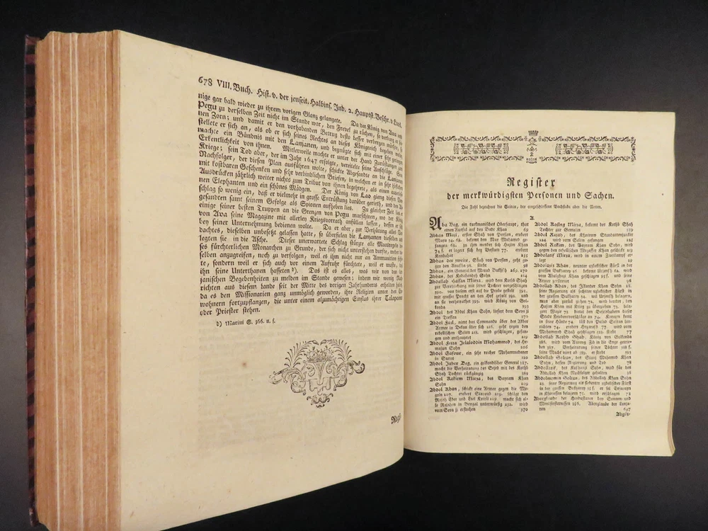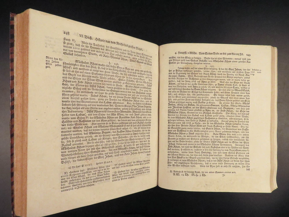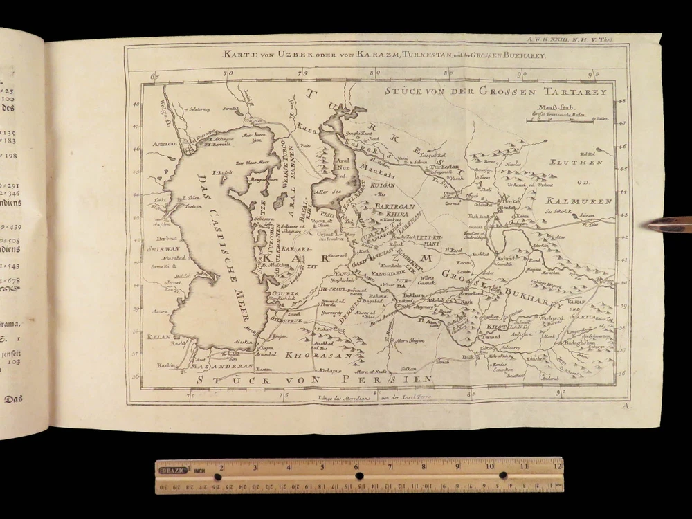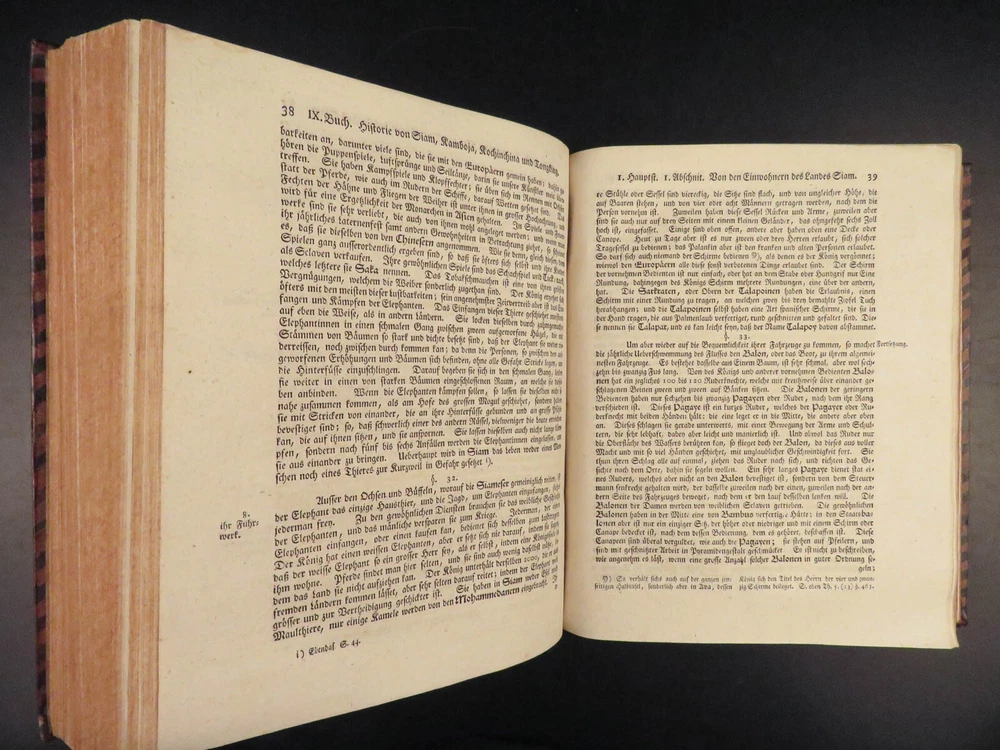 1761 ASIA 1 ed India HUGE MAPS Cambodia Laos Tonkin CHINA Siam PEGU Chinese Hindu The “ Allgemeinen Welthistorie ” was an 18 th -century historical journal collected to provide a complete and thorough history of the world. First edited by Siegmund Baumgarten and later by Johann Semler, this recurring work was a collection of articles by English scholars then translated and edited by Semler and Baumgarten – who Voltaire called ‘the crown of German scholars’. This particular tome covers interesting histories including: · History of the India, Persia, China, Southeast Asia · Chinnaballabaram, Gummi Palace · Extensive coverage of Hindustani religions, local tribes · Rulers and kings of Pegu, Hathawaddy Kingdom, and Burma and Laos, Cambodia, Singapore, Siam, Tonkin, o Portuguese Jesuit missionaries Item number: #26398 Price: $750 BAUMGARTEN, Siegmund Jacob; SEMLER, Johann Uebersetzung der Algemeinen Welthistorie die in Engeland durch eine Geselschaft von Gelehrten ausgefertiget worden Halle: Verlag Joh. Justinus Gebauers, 1761. 1 st edition Details : · Collation: Complete with all pages o Vol. XXIII – 29, [1]; 678, [34] o Vol. XXIV – 38; 660 o 3 maps, folding § Middle East, Persia § India & Southeast Asia § Eastern China · Language: German · Binding: Leather; tight and secure · Size : ~9.75in X 8.25in (25cm x 21cm) Our Guarantee: Very Fast. Very Safe. Free Shipping Worldwide. Customer satisfaction is our priority! Notify us with 7 days of receiving, and we will offer a full refund without reservation! 26398