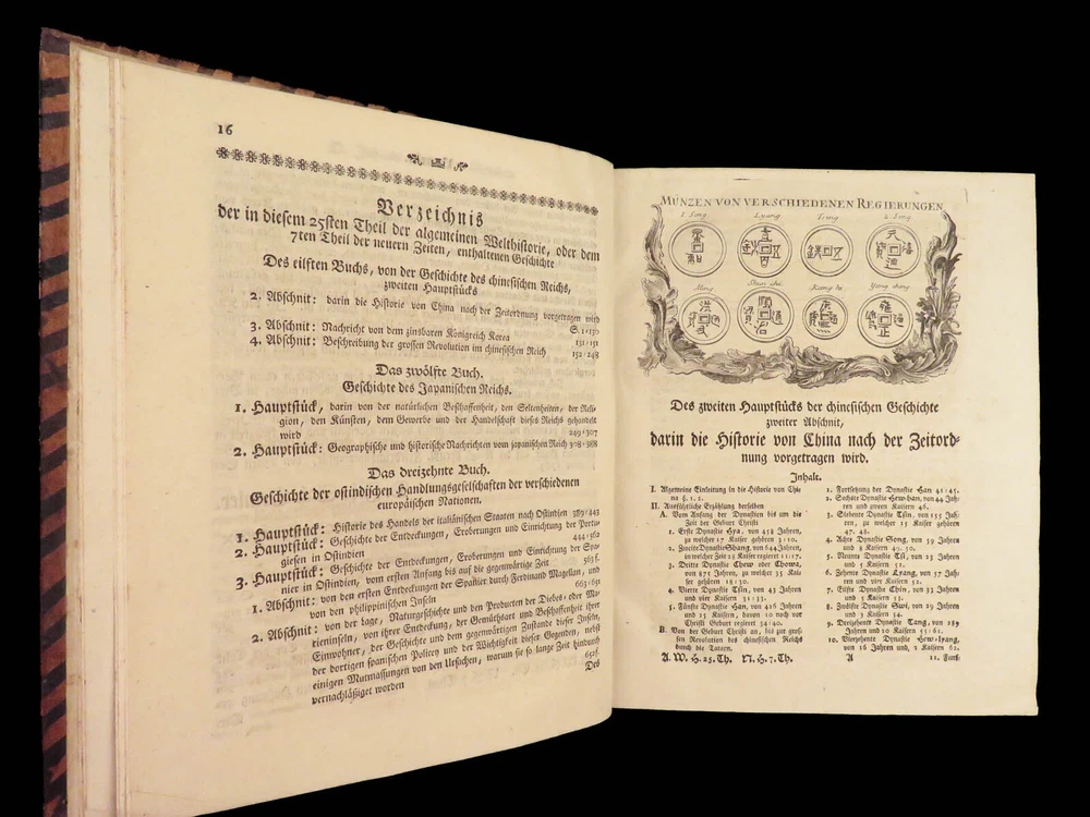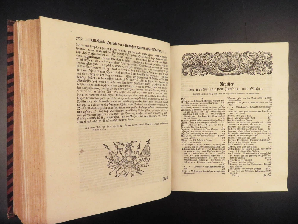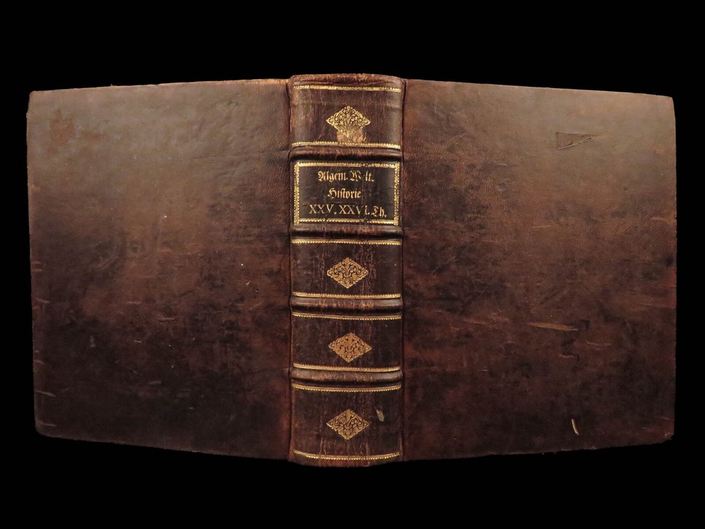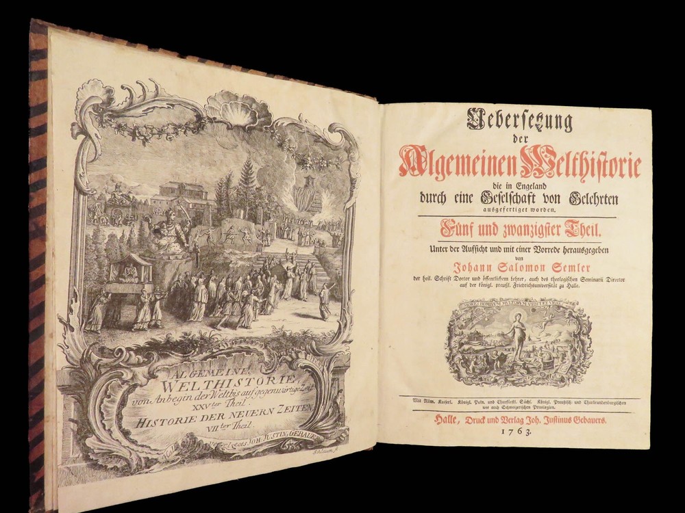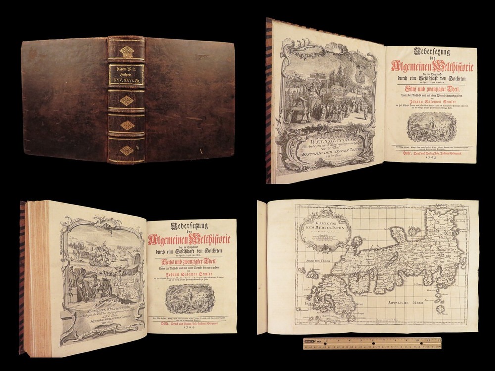1763 JAPAN Emperors MAPS Korea Indonesia Sumatra Malaysia Taiwan Peking China The “ Allgemeinen Welthistorie ” was an 18 th -century historical journal collected to provide a complete and thorough history of the world. First edited by Siegmund Baumgarten and later by Johann Semler, this recurring work was a collection of articles by English scholars then translated and edited by Semler and Baumgarten – who Voltaire called ‘the crown of German scholars’. This particular tome consists of volumes 25-26 and covers interesting histories including: · History of Japan and China, Peking o Chronological list of the emperors of Japan including Emperor Kotoku, o Emperor Jimmu (660BC) through “Satohito” Emperor Reigen in 1687 · 10 th -century Taiwan · Jesuit Missionaries in Peking (Tanjaouang, father Schall) · Map of Japan, folding – detailed islands · Korea, Indonesia, Sumatra o Cities of Padang and Malacca · Dutch settlements in Southeast Asia, Malacca, Malaysia Item number: #26401 Price: $750 BAUMGARTEN, Siegmund Jacob; SEMLER, Johann Uebersetzung der Algemeinen Welthistorie die in Engeland durch eine Geselschaft von Gelehrten ausgefertiget worden Halle: Verlag Joh. Justinus Gebauers, 1763. 1 st edition Details : · Collation: Complete with all pages; 2 volumes in 1 tome o Vol. XXV – 16, 717, [1] o Vol. XXVI – 26, 700 o 8 engravings and maps, including frontispieces · Language: German · Binding: Leather; tight and secure · Size : ~9.75in X 8.25in (25cm x 21cm) Our Guarantee: Very Fast. Very Safe. Free Shipping Worldwide. Customer satisfaction is our priority! Notify us with 7 days of receiving, and we will offer a full refund without reservation! 26401