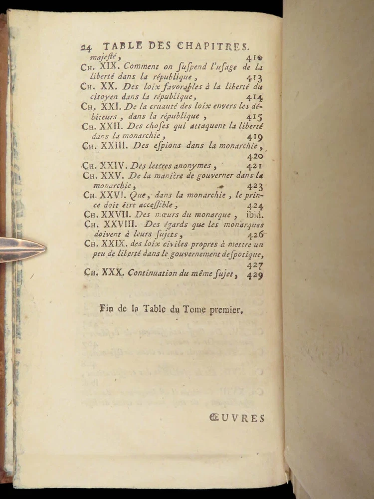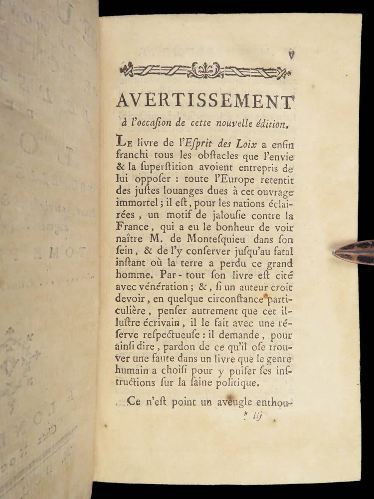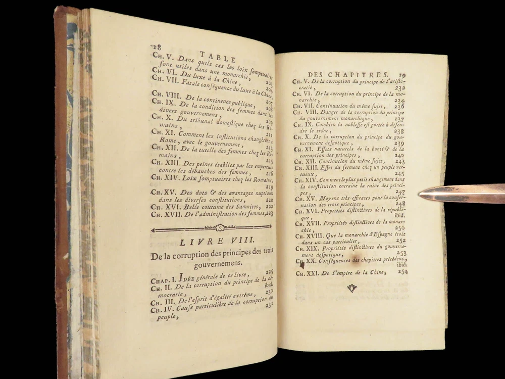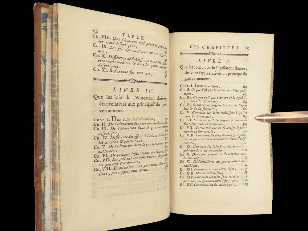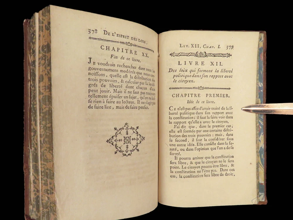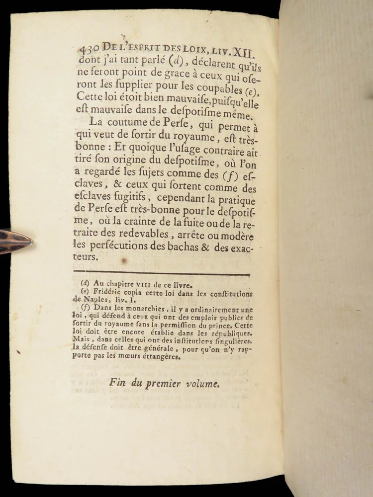 1769 Montesquieu Spirit of the Laws MAPS Political Government Democracy LAW 4v “Useless laws weaken the necessary laws.” ― Montesquieu , The Spirit of the Laws Charles-Louis de Montesquieu’s ‘ Spirit of the Laws’ is one of the most famous treaties ever written, especially on political theory. This work was so influential that world leaders such as Catherine the Great and the United States founding fathers applied the methods taught in this book to their culture’s future. This famed work found itself on the infamous ‘ Prohibited Book Index’ in 1751 even though it was well-respected and well-read around the world. Montesquieu lists a few major points in his work; points that have resonated with government for centuries. These include: · Separation of power · Liberty and democracy are one in the same · The point of civil and criminal law is to ensure personal security · Qualities and flaws of governmental types This 1769 French edition was published in as part of the complete works of Montesquieu. Item number: #27809 Price: $750 MONTESQUIEU, Charles-Louis de Oeuvres… De l'esprit des loix A Londres: Chez Nourse, 1769. Details : · Collation: Complete with all pages; 4 volumes o Vol. I –xliv, 24, 430 § 2 folding maps o Vol. II – xvi, 362 o Vol. III – xvi, 440 o Vol. IV – viii, 618 · Language: French · Binding: Leather; tight and secure · Size: ~6.75in X 4in (17cm x 10cm) Our Guarantee: Very Fast. Very Safe. Free Shipping Worldwide. Customer satisfaction is our priority! Notify us with 7 days of receiving, and we will offer a full refund without reservation!