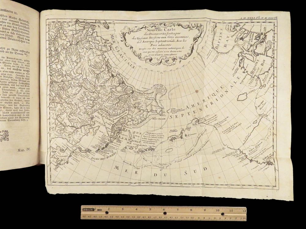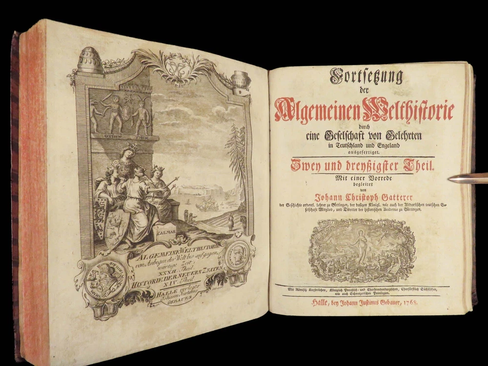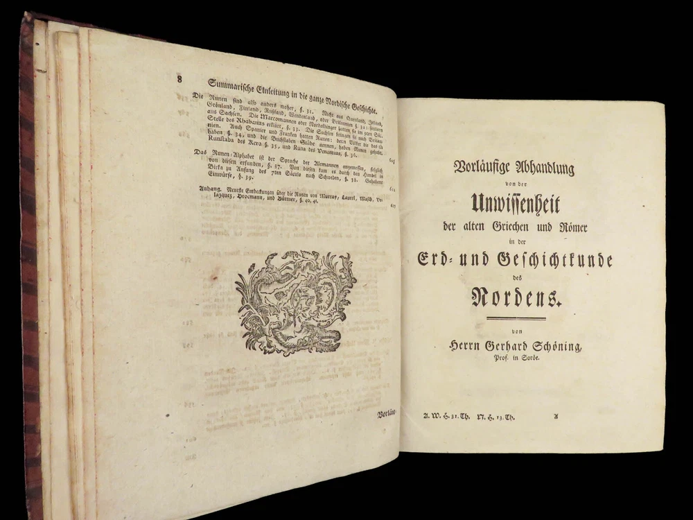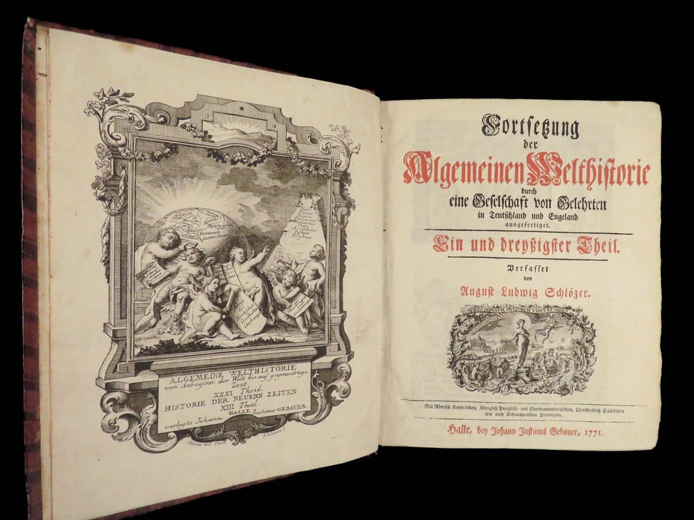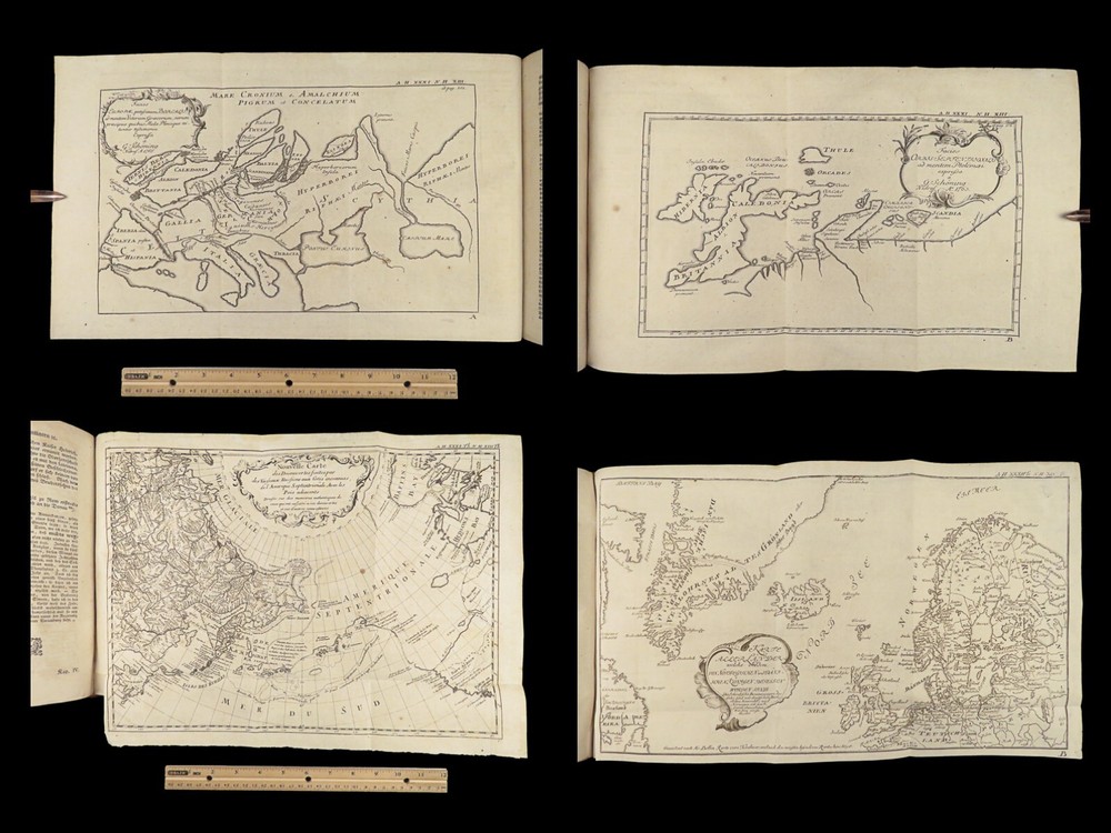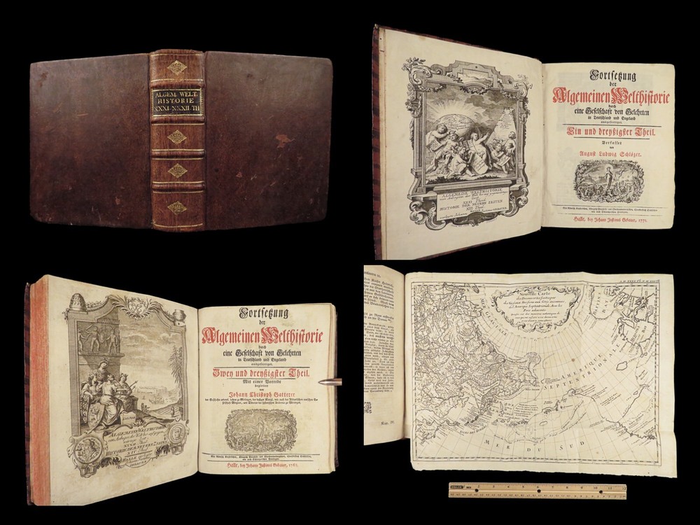 1771 SWEDEN Scandinavia MAPS Edmund the Old Minniskiold Norse Vikings Nordic The “ Allgemeinen Welthistorie ” was an 18 th -century historical journal collected to provide a complete and thorough history of the world. First edited by Siegmund Baumgarten and later by Johann Semler, this recurring work was a collection of articles by English scholars then translated and edited by Semler and Baumgarten – who Voltaire called ‘the crown of German scholars’. This particular tome consists of volumes 31-32 and covers interesting histories including: · 11 th -century Swedish history, Edmund Gammal the Old, King of Sweden · Magnus Minniskiöld, medieval Swedish magnate · Ancient nomadic tribes, Cimmerian people and the ancient city of Chersonesus; Scythians · 13 th -century Holy Roman Empire, Counts of Schauenburg and Holstein – Jutland history Includes the oft lacking folding maps! Item number: #26394 Price: $750 BAUMGARTEN, Siegmund Jacob; SEMLER, Johann Uebersetzung der Algemeinen Welthistorie die in Engeland durch eine Geselschaft von Gelehrten ausgefertiget worden Halle: Verlag Joh. Justinus Gebauers, 1771. 1 st edition Details : · Collation: Complete with all pages; 2 volumes in 1 tome o Vol. XXXI – [2], 8, 8, 636 o Vol. XXXII – 42, 708 o 8 folding maps, plus engraved frontispiece in each volume · Language: German · Binding: Leather; tight and secure · Size : ~9.75in X 8.25in (25cm x 21cm) Our Guarantee: Very Fast. Very Safe. Free Shipping Worldwide. Customer satisfaction is our priority! Notify us with 7 days of receiving, and we will offer a full refund without reservation! 26394