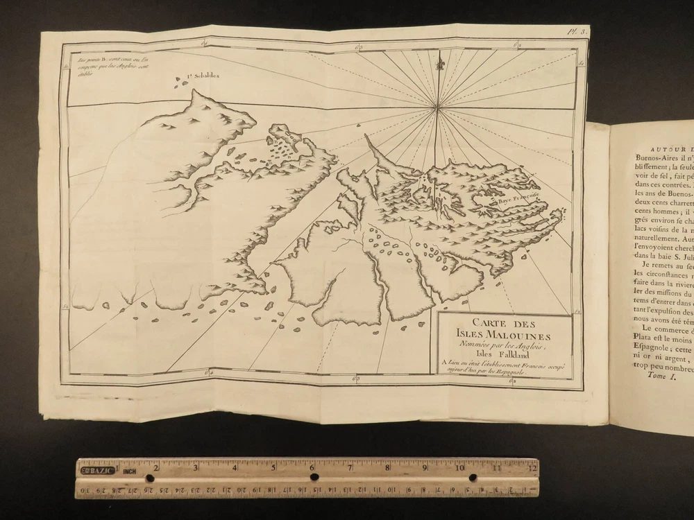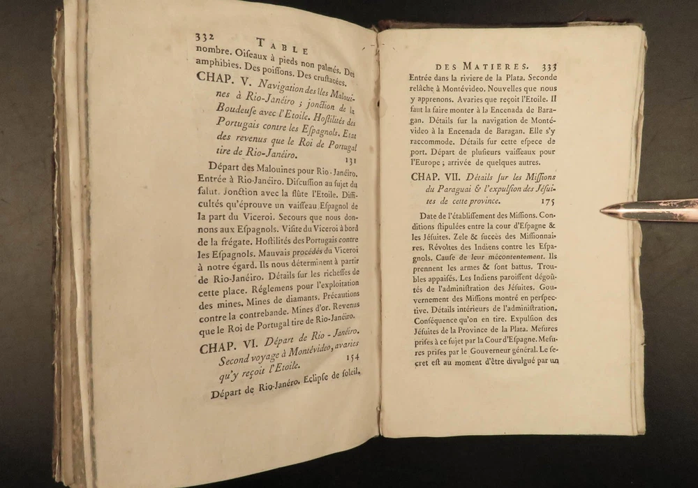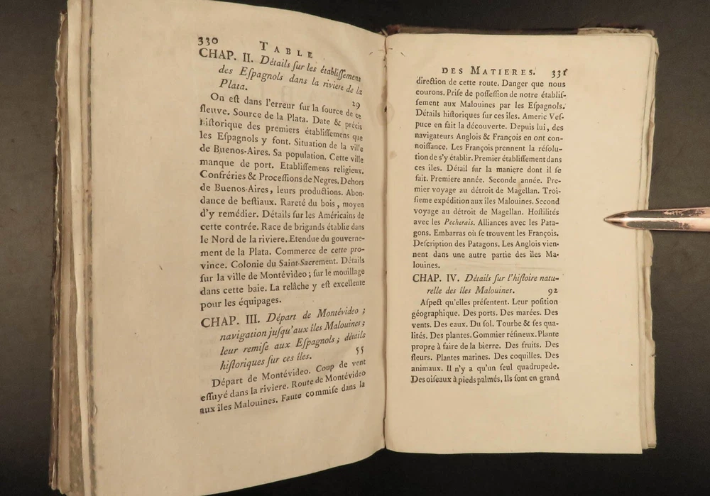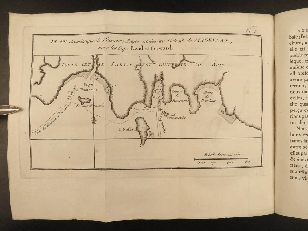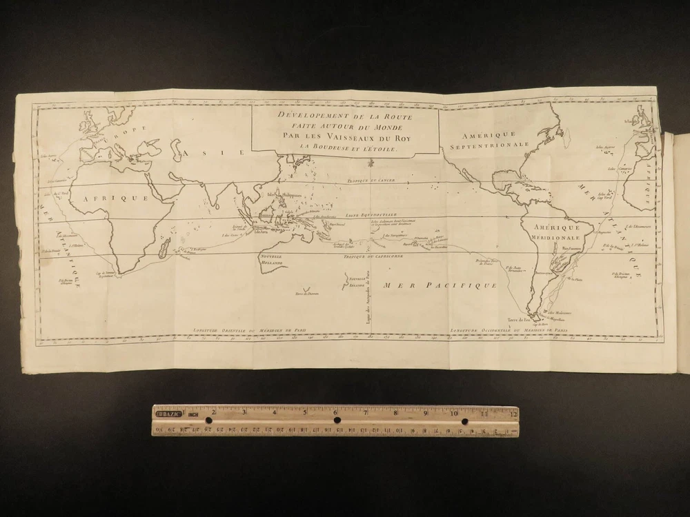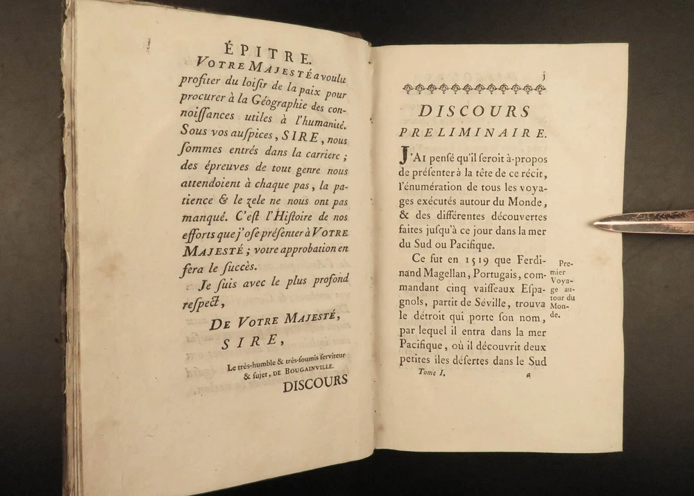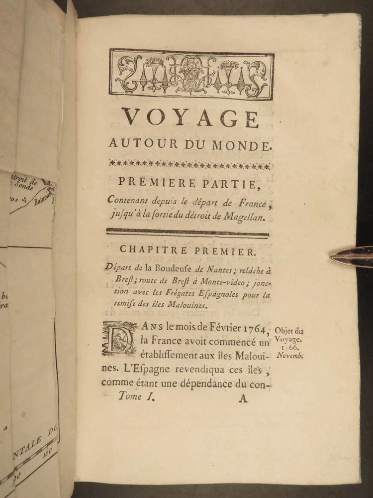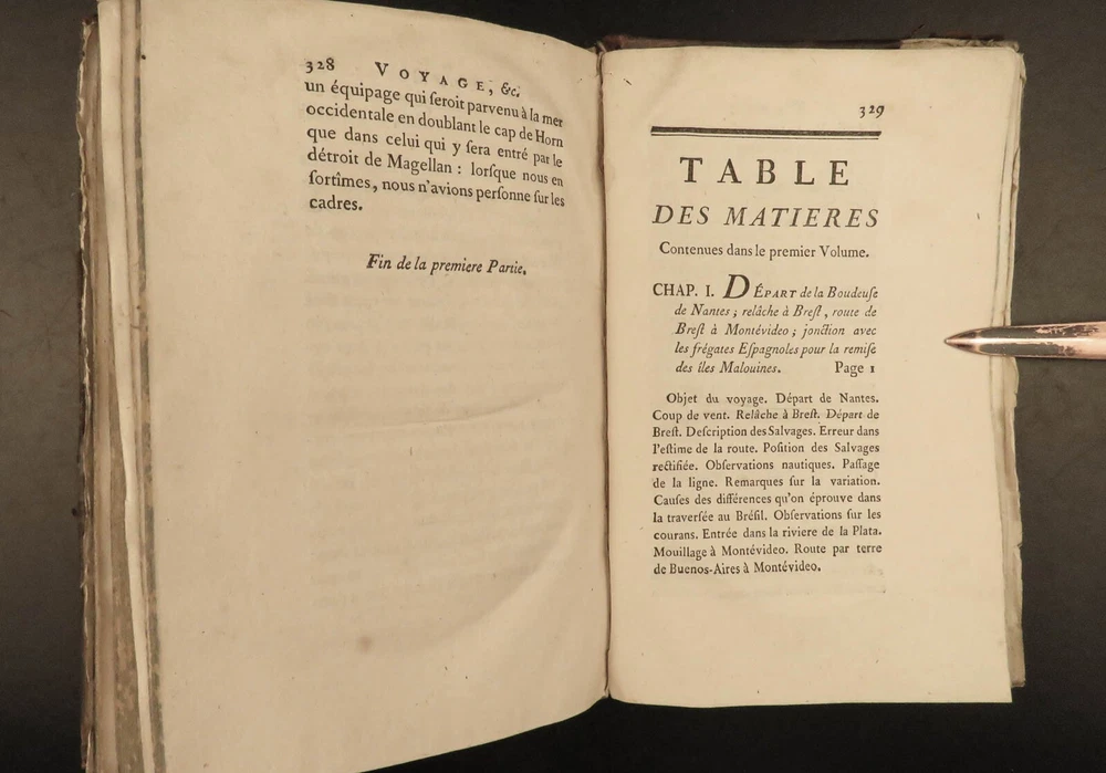 1772 Voyages of Louis Bougainville Pacific Ocean TAHITI Falkland Islands MAPS 2v SET Louis Antoine de Bougainville was an 18 th -century French explorer who, after serving in the American Revolution, gained notoriety for his attempt to circumnavigate the world. This voyage became famous for being the first expedition to make records of the Falkland Islands and other islands near Papua New Guinea. The two-ship expedition which began in 1766 spent much time in Tahiti and Samoa gaining information on the local tribes, and much of what we know now of these peoples is attributed to Bougainville and his expedition. Item number: #21910 Price: $1500 BOUGAINVILLE, Louis Antoine de Voyage autour du monde, par la frégate du Roi la Boudeuse et la Flûte l'Étoile A Paris: Chez Saillant & Nyon, 1772. Details : · Collation: Complete with all pages; 2 volumes o Vol. I – [8], xliii, [1], 336 o Vol. II – [4], 453, [3] o 15 folding illustrations/maps · Language: French · Binding: Leather; tight and secure · Size : ~8in X 5in (20cm x 13cm) · Very rare and desirable with auction records and price comparisons at $3,000 Our Guarantee: Very Fast. Very Safe. Free Shipping Worldwide. Customer satisfaction is our priority! Notify us with 7 days of receiving, and we will offer a full refund without reservation! 21910