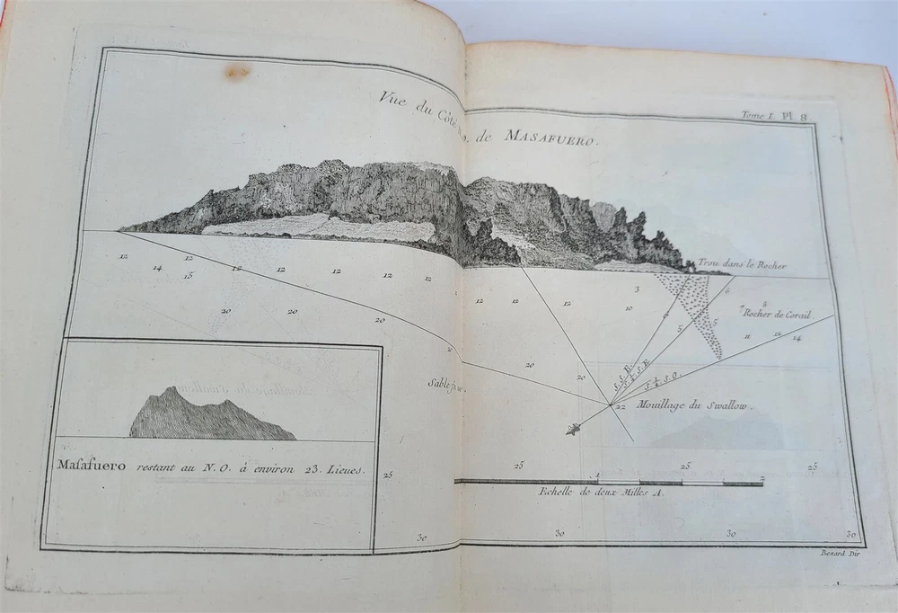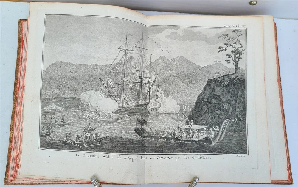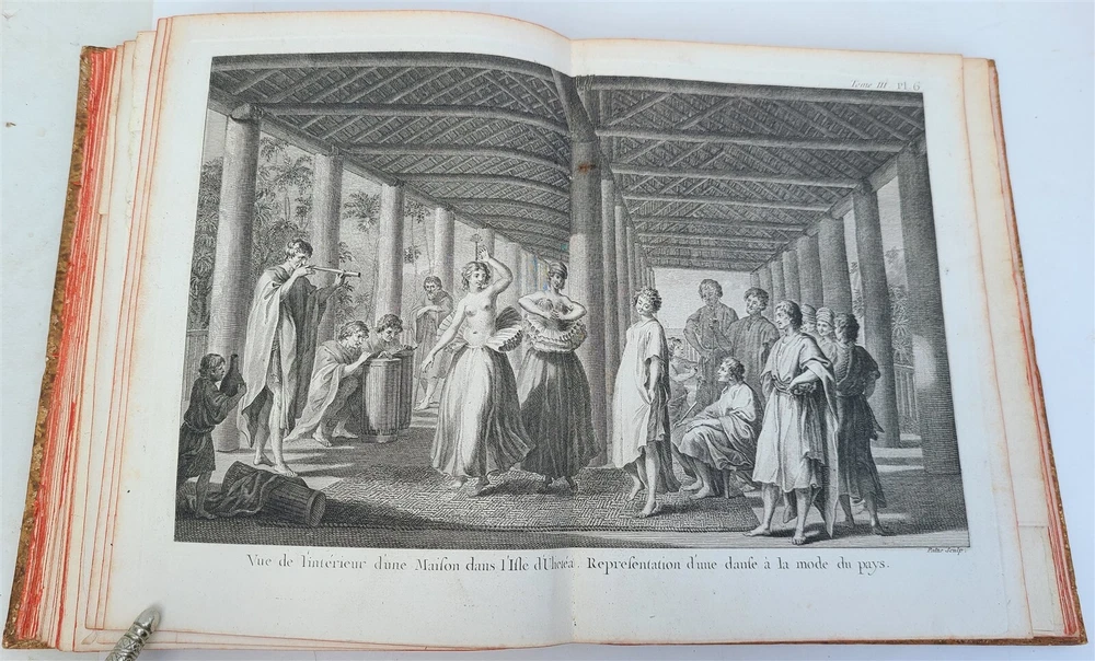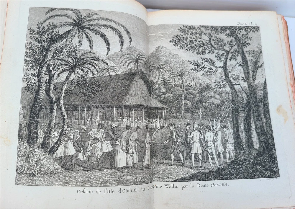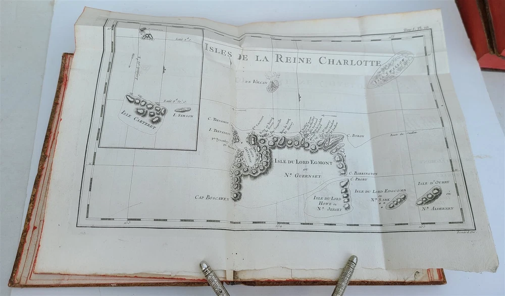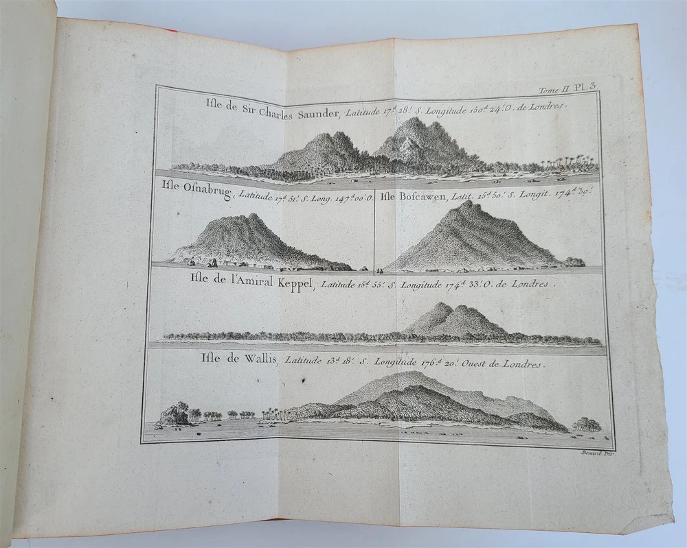 JAMES COOK. HAWKESWORTH, John. RELATION DES VOYAGES entrepris par ordre de sa Majeste Britannique, et successivement executes par le Commodore Byron, le Capitaine Carteret, le Capitaine Wallis et le Capitaine Cook, dans les Vaisseauax le Daupin, le Swallow & l’Endeavour; Traduite de l’Anglois. Eight volumes in four, plus atlas Paris, Saillant et Nyon, Panckoucke, 1774 4 text volumes: 5 by 8" atlas: 8 by 10 1/4" The atlas with 52 engraved maps and plates (most folding or double-page), pale stain to final five plates, the text in original mottled calf, all edges red Atlas in calf-backed paste paper boards. First French octavo edition of Cook’s first voyage, complete with the separate atlas. Very good condition Beddie, 660. Text in French ==================================== Please see my other auctions Thank You Refund Policy: We will issue a FULL REFUND, 100% money back if you are not satisfied with your purchase. Items must be returned to us within 20 days in order to receive a refund or replacement. Buyer is responsible for shipping costs. Powered by SixBit's eCommerce Solution