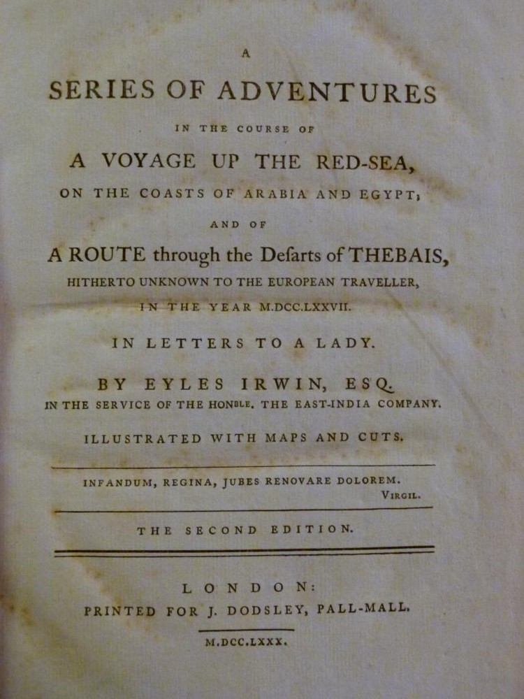 Irwin's Voyage A SERIES OF ADVENTURES in the course of A VOYAGE UP THE RED-SEA, ON THE COASTS OF ARABIA AND EGYPT; and of A ROUTE THROUGH THE D ESARTS OF THEBAIS, Hitherto Unknown to the European Traveller IN THE YEAR M.DCC.LXXII. [ By Ey les Irwin, ESQ . Printed for J. Dodsley, Pall-Mall, London; 1780; the second edition. 11" x 8.5" 400 numbered pages.] Amazing antique book on the history of East India Company and travels to distant lands! Complete with many large folding maps and full page engravings from copper plates. Bound in full calf leather with gold stamping on spine. Leather is in fabulous condition. Overall excellent condition with tightly bound pages and a square binding; early professional restoration to the sp ine; boards are original. some light age spots on the first and last few pages; book is 100% complete, and free of any previous ownership marks, or writings. E xcellent collector's copy! Froo www.froo.com | Froo Cross Sell, Free Cross Sell, Cross promote, eBay Marketing, eBay listing Apps, eBay Apps, eBay Application Track Page Views With Auctiva's Counter
