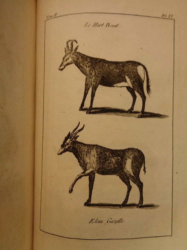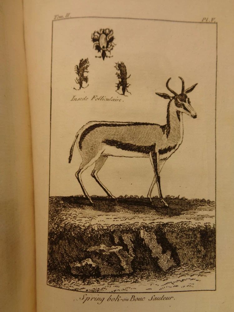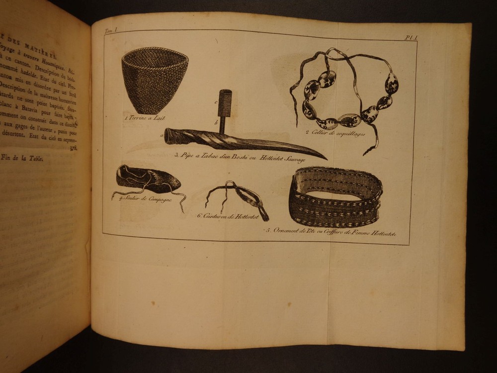 1787 1 ed Good Hope Voyages Sparrman Captain Cook MAPS Illustrated 3v SET Africa A rare book on the second voyage of Captain cook by Andres Sparrman, who accompanied Cook on that second voyage. Anders Sparrman (1748 – 1820) was a Swedish naturalist, abolitionist and an apostle of Carl Linnaeus. We find other examples of this same edition for sale elsewhere for $3,200! Main author : Anders Sparrman; P Le Tourneur Title : Voyage au cap le Bonne-Espérance, et autour du monde avec le capitaine Cook, et principalement dans le pays des Hottentots et des Caffres Published : Paris : Chez Buisson, 1787. Language : French Notes & contents : · 1 st French edition · 3 volume set · 16 charming engravings o 1 folding map o 15 engraved plates FREE SHIPPING WORLDWIDE Wear : wear as seen in photos Binding : tight and secure leather binding Pages : complete with all xxxii + 388 + 366 + 363 pages; plus, indexes, prefaces, and such Publisher : Paris : Chez Buisson, 1787. Size: ~7.5in X 5in (19cm x 13cm) FREE SHIPPING WORLDWIDE Shipping: Very Fast. Very Safe. Free Shipping Worldwide. Satisfaction Guarantee: Customer satisfaction is our first priority. Notify us within 7 days of receiving your item and we will offer a full refund guarantee without reservation. $1750 Anders Sparrman (27 February 1748, Tensta, Uppland – 9 August 1820) was a Swedish naturalist, abolitionist and an apostle of Carl Linnaeus. Sparrman was the son of a clergyman. At the age of nine he enrolled at Uppsala University, beginning medical studies at fourteen and becoming one of the outstanding pupils of Linnaeus. In 1765 he went on a voyage to China as ship's doctor, returning two years later and describing the animals and plants he had encountered. On this voyage he met Carl Gustaf Ekeberg. He sailed for the Cape of Good Hope in January 1772 to take up a post as a tutor. When James Cook arrived there later in the year at the start of his second voyage, Sparrman was taken on as assistant naturalist to Johann and Georg Forster. After the voyage he returned to Cape Town in July 1775 and practiced medicine, earning enough to finance a journey into the interior. He was guided by Daniel Ferdinand Immelman, the young frontiersman who had previously guided the Swedish botanist Carl Peter Thunberg. Daniel and Sparrman reached the Great Fish River and returned in April 1776.[1] In 1776 Sparrman returned to Sweden, where he had been awarded an honorary doctorate in his absence. He was also elected a member of the Royal Swedish Academy of Sciences in 1777. He was appointed keeper of the natural historical collections of the Academy of Sciences in 1780, Professor of natural history and pharmacology in 1781 and assessor of the Collegium Medicum in 1790. In 1787 he took part in an expedition to West Africa, but this was not successful. Sparrman published several works, the best known of which is his account of his travels in South Africa and with Cook, published in English as A voyage to the Cape of Good Hope, towards the Antarctic polar circle, and round the world: But chiefly into the country of the Hottentots and Caffres, from the year 1772 to 1776 (1789). He also published a Catalogue of the Museum Carlsonianum (1786–89), in which he described many of the specimens he had collected in South Africa and the South Pacific, some of which were new to science. He published an Ornithology of Sweden in 1806. The asteroid 16646 Sparrman bears his name. The Swedish novelist Per Wästberg has written a biographical novel about Sparrman which was published in English in 2010, under the title as The Journey of Anders Sparrman. Anders Erikson Sparrman is denoted by the author abbreviation Sparrm. when citing a botanical name.
