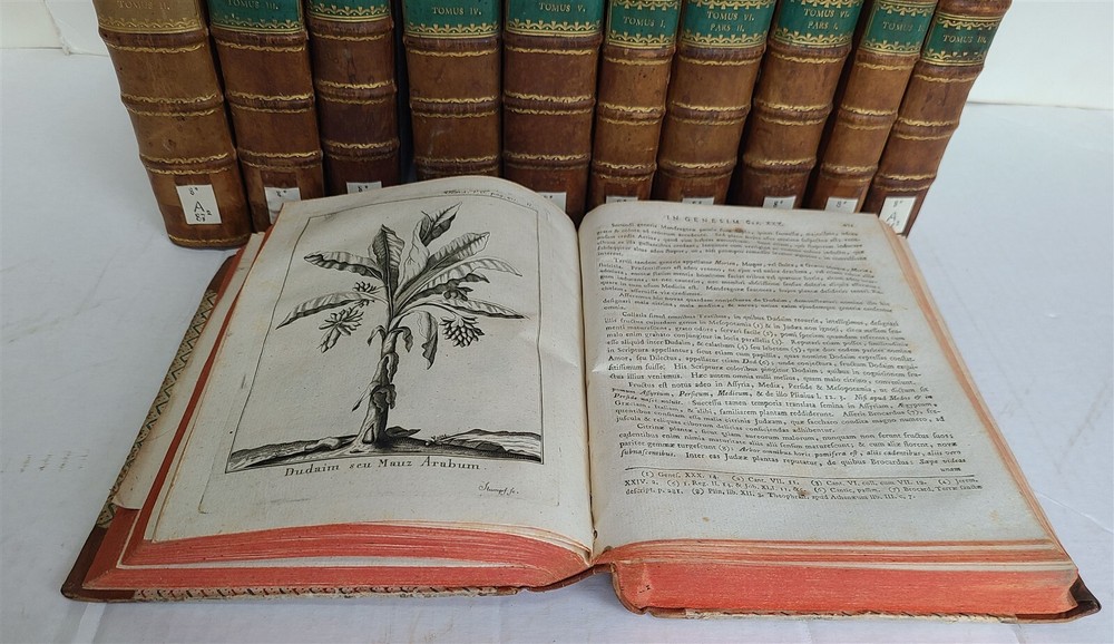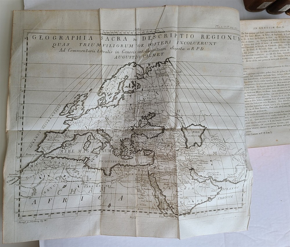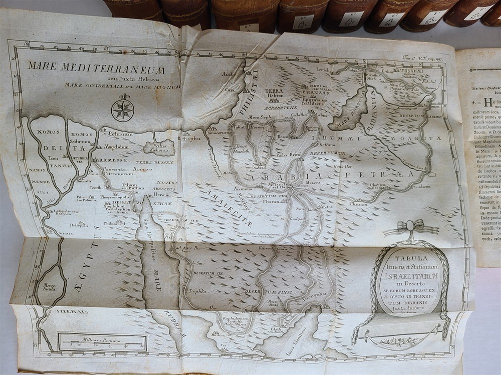 Antoine Augustin Calmet Commentarius literalis in omnes libros veteris (et novi) testamenti. Ed. noviss. 11 volumes (incomplete set) Wurzburg, Rienner; 1789-92 With engraved front and numerous copperplate and engravings. - Latin translation of the esteemed commentaries of the highly learned Benedictine Auguste Calmet.- Original 3/4 leather over marbled boards Good condition, some wear. Browned and stained in places. Ex-library Size 9 by 7 1/4" Text in Latin ========================================= Please see my other auctions Thank You Refund Policy: We will issue a FULL REFUND, 100% money back if you are not satisfied with your purchase. Items must be returned to us within 20 days in order to receive a refund or replacement. Buyer is responsible for shipping costs. Powered by SixBit's eCommerce Solution
