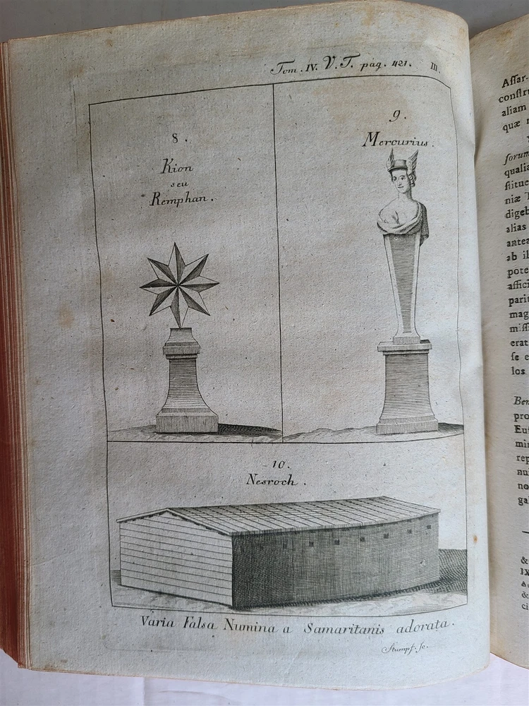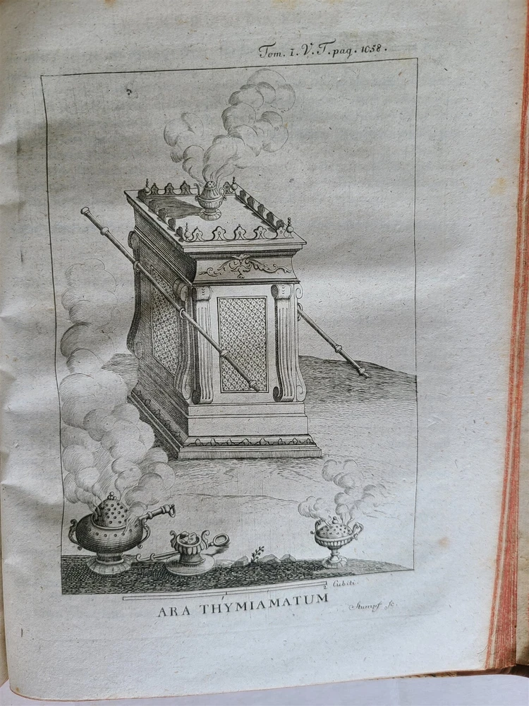 Antoine Augustin Calmet Commentarius literalis in omnes libros veteris (et novi) testamenti. Ed. noviss. 11 volumes (incomplete set) Wurzburg, Rienner; 1789-92 With engraved front and numerous copperplate and engravings. - Latin translation of the esteemed commentaries of the highly learned Benedictine Auguste Calmet.- Original 3/4 leather over marbled boards Good condition, some wear. Browned and stained in places. Ex-library Size 9 by 7 1/4" Text in Latin ========================================= Please see my other auctions Thank You Refund Policy: We will issue a FULL REFUND, 100% money back if you are not satisfied with your purchase. Items must be returned to us within 20 days in order to receive a refund or replacement. Buyer is responsible for shipping costs. Powered by SixBit's eCommerce Solution