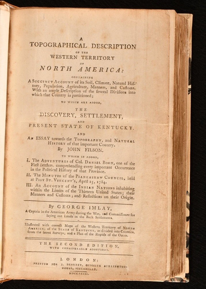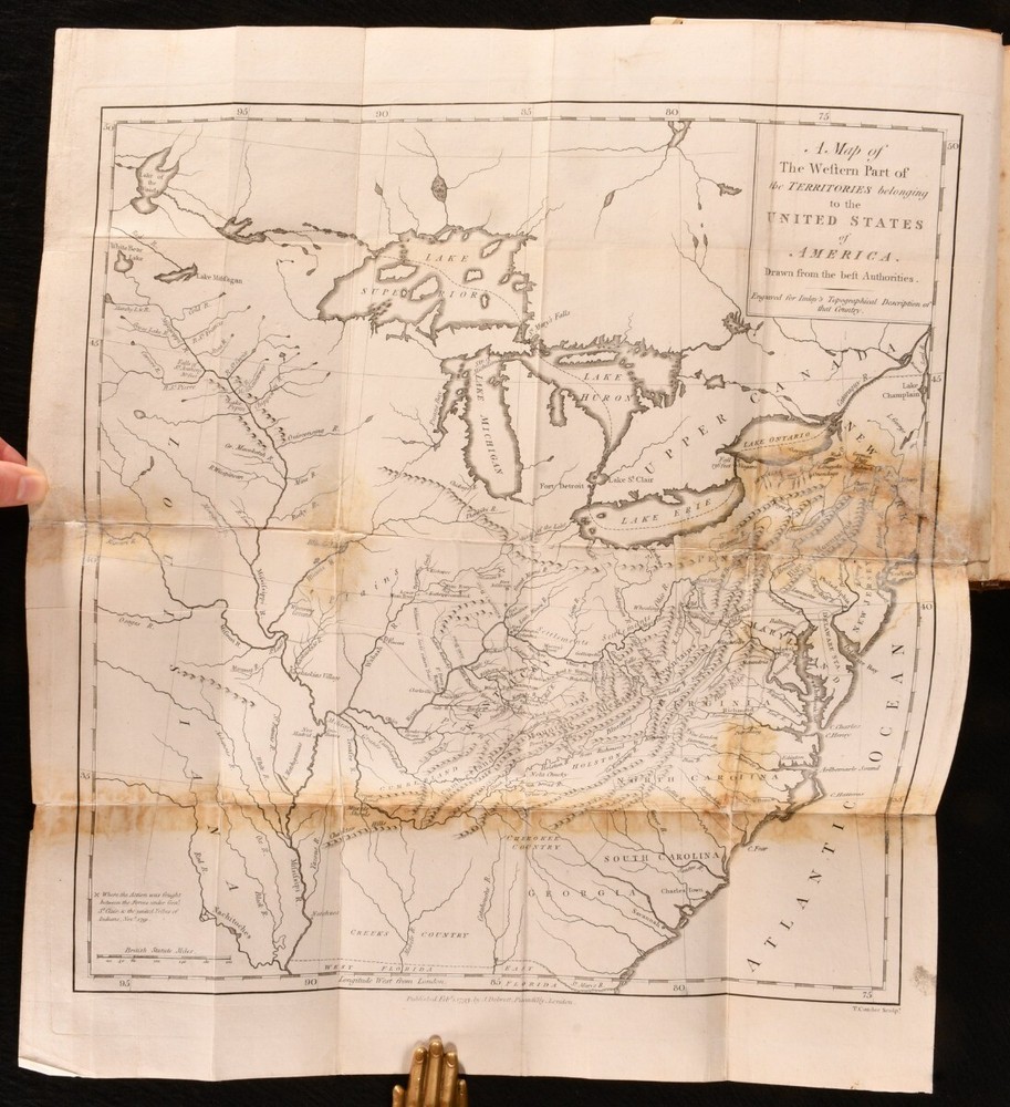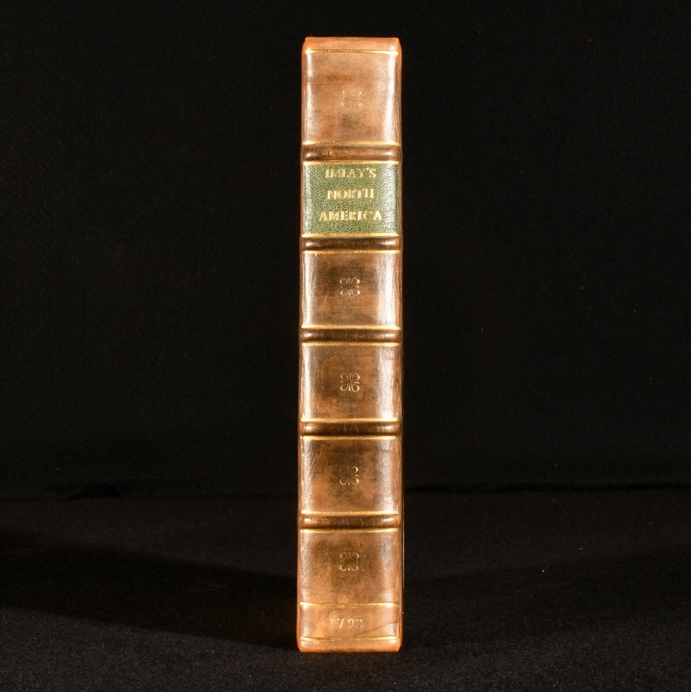 Click here to see our other books! A Topographical Description of the Western Territory of North America: Containing a Succinct Account of its Soil, Climate, Natural History, Population, Agriculture, Manners, and Customs. With an Ample Description of the Several Division into Which That Country is Partitioned; to Which are Added, the Discovery, Settlement, and Present State of Kentucky. And an Essay Towards the Topography, and Natural History of That Important Country George Imlay; [Gilbert Imlay] 1793 J. Debrett : London 8.5" by 5.5" [4], xvi, 399, [1pp] SUMMARY The second edition of Gilbert Imlay's influential and very important study on the Western States of America, complete with folding maps. Folding Maps,Illustrated,Leather Binding,Rebound Overall Condition: Very Good Indeed This book weighs 0.5 KG when packed UK Postage: £ 3.99 US Postage: £ 15.99 EU Postage : £ 13.99 European Postage: £ 14.99 Asia Postage: £ 18.99 Worldwide Postage: £ 19.99 DESCRIPTION The second edition. Smartly rebound in a modern quarter calf binding. Half-title present. Illustrated with a folding map to the frontispiece, two folding maps, and one folding table. Collated, complete. 'A Topographical Description of the Western Territory of North America' details the topography of the Western States and its settlements, a very detailed exploration in which Imlay details the climate, natural history, popularation, custom, agriculture, manners, and more. Including an interesting look into the settlement of Kentucky and its present state post-American Revolutionary War. Also including an essay by John Filson, 'An Essay Towards the Topography and Natural History of that Important Country'. Including the adventures of Daniel Boon, the minutes of the Piankashaw Council on the 15th April 1784, and an account of the Indian Nations. Gilbert Imlay was one of the earliest American writers to gain popularity worldwide, with this work and his novel 'The Emigrants'. He is best known today for his affair with the renowned Mary Wollstonecraft, which resulted in the birth of Franny Imlay. The influential travel work of Gilbert Imlay. CONDITION Rebound in a quarter calf binding with marbled paper to the boards and new endpapers. Externally, smart. Spine is very lightly faded. Internally, firmly bound. Pages are lightly age-toned with some spots. Neat repairs to the folding map frontispiece, and a smaller neat repair to the reverse of the folding map to the rear. Overall Condition: Very Good Indeed GLOSSARY OF TERMS Overall Condition (Dustwrapper condition rating is shown after that for the book itself, where a dustwrapper is present) Fine - Very well preserved copy showing very little wear Very Good Indeed - Only one or two minor faults, really a very attractive copy Very Good - Quite a wide term meaning no major faults but probably several smaller ones often expected given the age of the book, but still a respectable copy Good - Meaning not very good. Some more serious faults as will be described in the condition report under 'condition' Good Only - Meaning one or more faults that could really do with repair Fair - As with good only above but with other faults leaving a compromised copy even after repair Poor - Really bad and possibly seriously incomplete. We only sell books in this condition where their rarity or value makes them attractive none the less. Major defects will be described. GUARANTEE We offer a full money back guarantee on our descriptions. Please ask for details and conditions. We prefer PAYPAL. If you pay via PAYPAL we will post the item off the same or the next working day with the postage you have selected. Please note we cannot accept USD cheques
