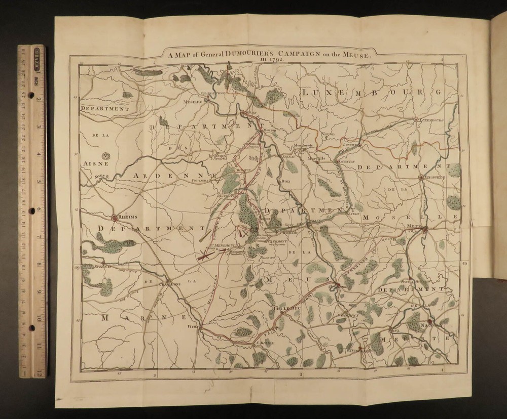 1793 French Revolution 1 ed John Moore Journal of Paris Louis XIV + Color MAP 2v John Moore was an 18 th -century Scottish travel writer who is best known for his novel ‘ Zeluco’ . In addition to his novels, Moore published an account of his and travel companion James Maitland’s time in Paris during the French Revolution. This book offers an important first-hand account of the French Revolution from a Scottish perspective with notes on Louis XIV and the Parisian communes. Item number: #20215 Price: $550 MOORE, John A journal during a residence in France : from the beginning of August, to the middle of December, 1792 London : Printed for G.G. and J. Robinson, 1793. First edition. Details : · Collation: Complete with all pages; 2 volumes o Vol. 1 – [4], 502 o Vol. 2 – [4], 617, [3] § Includes folding map · Language: English · Binding: Leather; tight and secure · Size : ~8.5in X 5.5in (21.5cm x 14cm) Our Guarantee: Very Fast. Very Safe. Free Shipping Worldwide. Customer satisfaction is our priority! Notify us with 7 days of receiving, and we will offer a full refund without reservation! 20215
