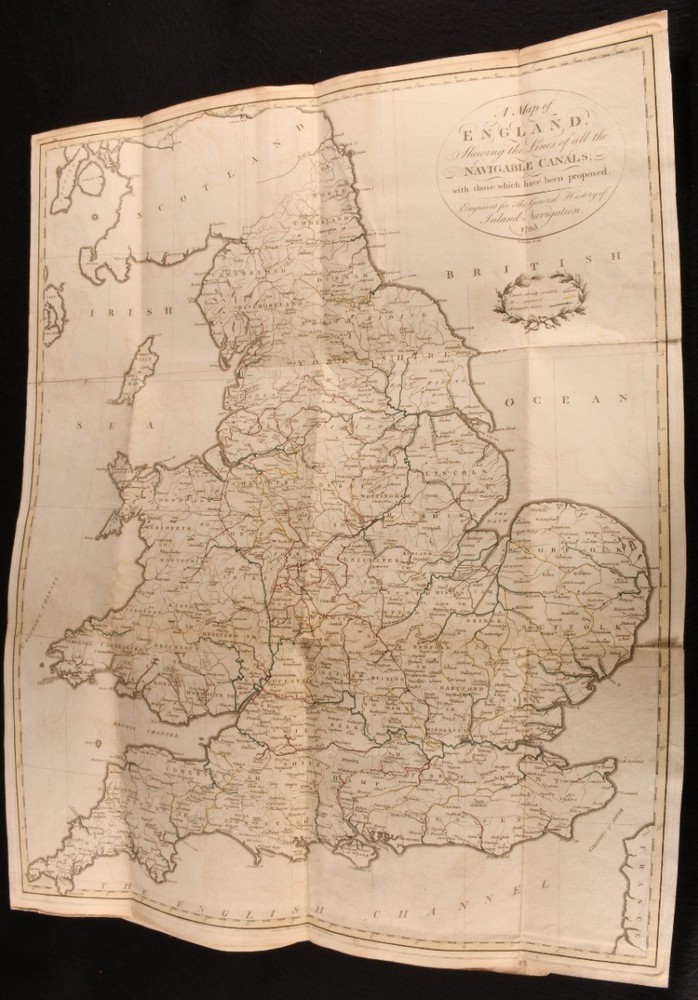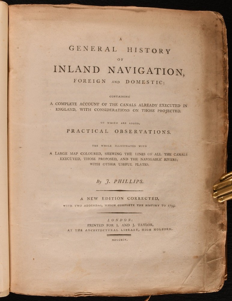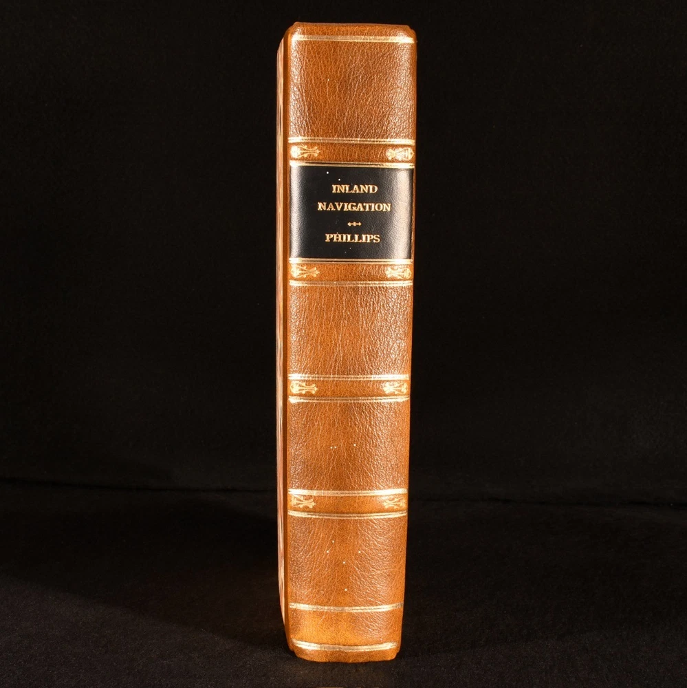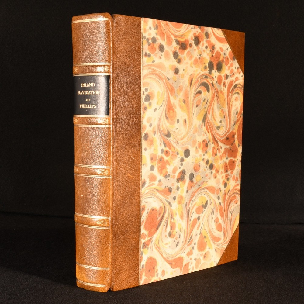 Click here to see our other books! A General History of Inland Navigation, Foreign and Domestic J. Phillips 1795 I. and J. Taylor : London 12" by 9.5" xx [1], 2-185 [1]pp SUMMARY A handsomely bound 'New Edition' of John Phillips' detailed history of canals in England, looking at their usage for travel and and trade purposes. Folding Maps,Illustrated,Leather Binding,Rebound Overall Condition: Very Good Indeed This book weighs 2 KG when packed UK Postage: £ 3.99 US Postage: £ 29.99 EU Postage : £ 21.99 European Postage: £ 23.99 Asia Postage: £ 37.99 Worldwide Postage: £ 38.99 DESCRIPTION Illustrated with a folding map - hand-coloured in outline - and with four engraved plates. Collated, complete. The map is entitled, "A map of England, shewing the lines of all the navigable canals, with those which have been proposed", is engraved by Thomas Conder. Writing at the time of the industrial revolution in England, Phillips' enthusiasm and passion for the subject is evident; Phillips was a great surveyor of canals, and his works were widely read and published by his peers. Phillips thought that canals provided a method of easy and secure communication to other parts of the country. Phillips considers distances, timing, and prices. ESTC T118563 Rebound in half morocco, with endpapers renewed. Chapters detail proposed canals as well as those already constructed, the nature of construction, the canal between Dublin and the Shannon, the canal between the Forth and the Clyde, and the Duke of Bridgewater's canal. CONDITION Rebound in half morocco, with marbled paper covered boards. Endpapers renewed. Externally, fine. Internally, firmly bound. Title page age toned to perimeters, as are a number of further leaves. Pages otherwise bright and generally clean, with the odd light handling mark or instance of spotting. Overall Condition: Very Good Indeed GLOSSARY OF TERMS Overall Condition (Dustwrapper condition rating is shown after that for the book itself, where a dustwrapper is present) Fine - Very well preserved copy showing very little wear Very Good Indeed - Only one or two minor faults, really a very attractive copy Very Good - Quite a wide term meaning no major faults but probably several smaller ones often expected given the age of the book, but still a respectable copy Good - Meaning not very good. Some more serious faults as will be described in the condition report under 'condition' Good Only - Meaning one or more faults that could really do with repair Fair - As with good only above but with other faults leaving a compromised copy even after repair Poor - Really bad and possibly seriously incomplete. We only sell books in this condition where their rarity or value makes them attractive none the less. Major defects will be described. GUARANTEE We offer a full money back guarantee on our descriptions. Please ask for details and conditions. We prefer PAYPAL. If you pay via PAYPAL we will post the item off the same or the next working day with the postage you have selected. Please note we cannot accept USD cheques