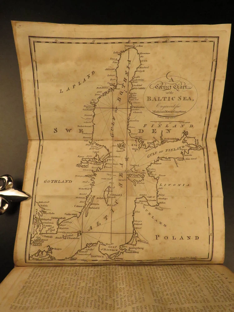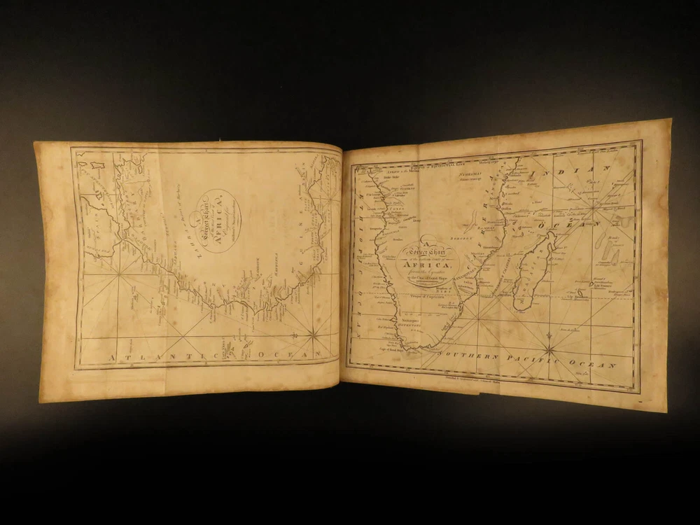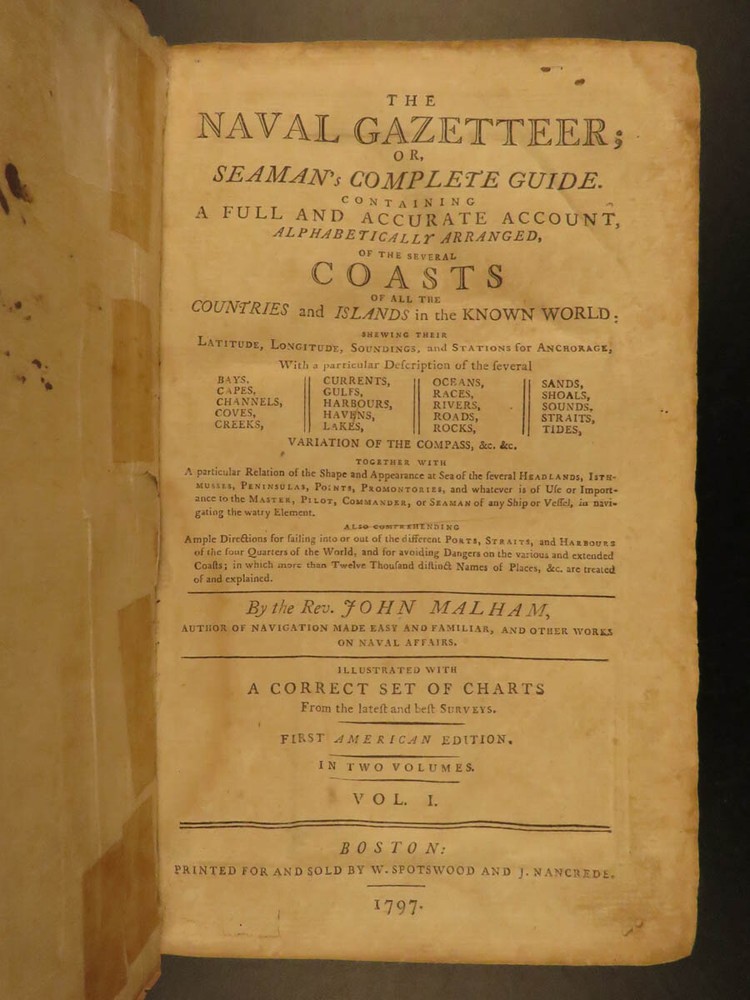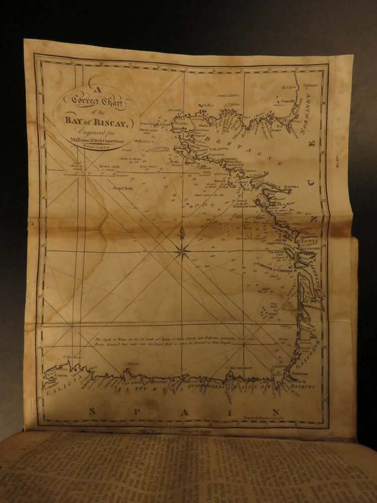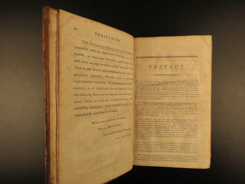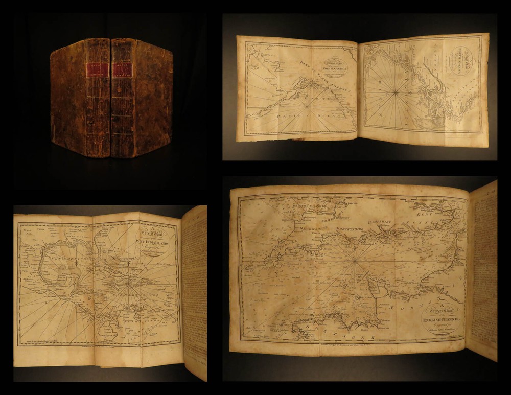 1797 1 ed AMERICAN Naval Gazetteer Voyages Malham Sailing MAPS Atlas Africa Ports ‘ The Naval Gazetteer’ is a late 18 th -century sailor’s guide, filled with descriptions of coastlines, countries, and islands from around the world and sailing directions to and from various locations. However, the real draw of this set is the exquisite folding maps! Maps include views of ports and coasts along India, Portugal, the Baltic Sea, North and South America, Africa, and Great Britain. Item number: #14295 Price: $1950 MALHAM, John The naval gazetteer, or, Seaman's complete guide : containing a full and accurate account, alphabetically arranged, of the several coasts of all the countries and islands in the known world ... Boston : Printed for and sold by W. Spottswood and J. Nancrede, 1797. First edition. Details : · Collation: Complete; 2 volumes o Vol. 1 – xlvi, 436 (i.e. 536) § 10 folding maps § Wanting frontis folding map o Vol. 2 – 573, [3] § 6 folding maps · Provenance: Handwritten o J.L. Parrish o M.A. Parrish o Peter Le Breton · Language: English · Binding: Leather; tight & secure · Size : ~8.5in X 5.5in (cm x cm) · Very rare and desirable with auction records and price comparisons at $4,000 Our Guarantee: Very Fast. Very Safe. Free Shipping Worldwide. Customer satisfaction is our priority! Notify us with 7 days of receiving, and we will offer a full refund without reservation! 14295