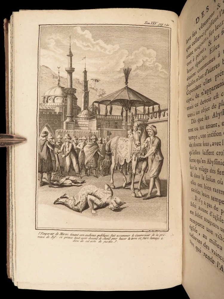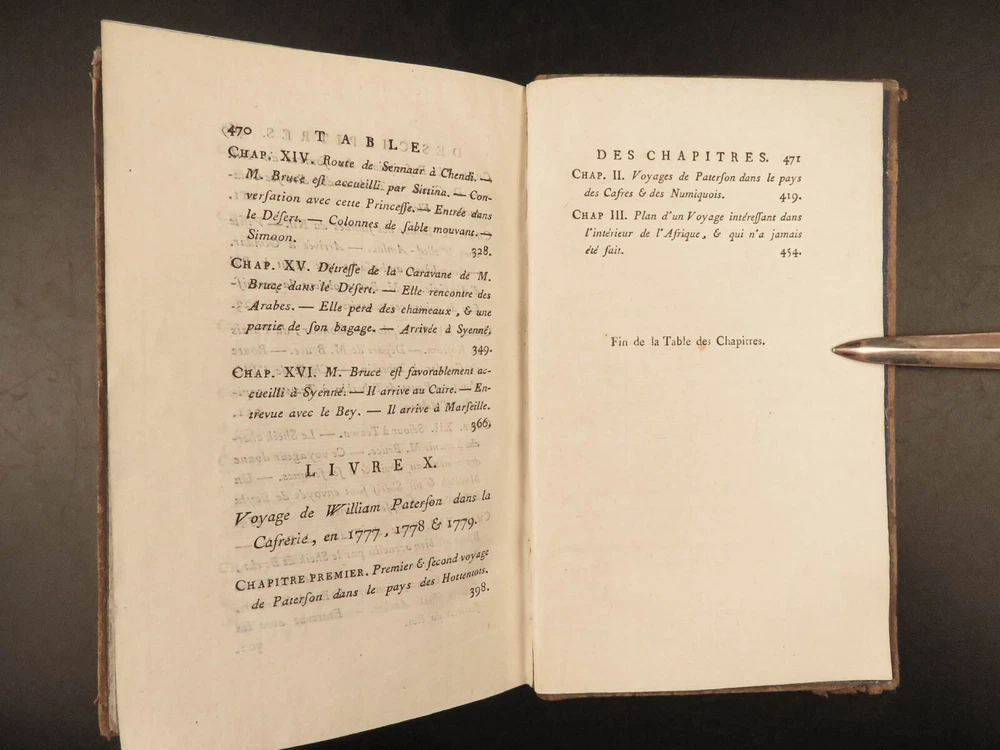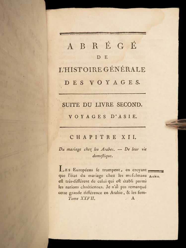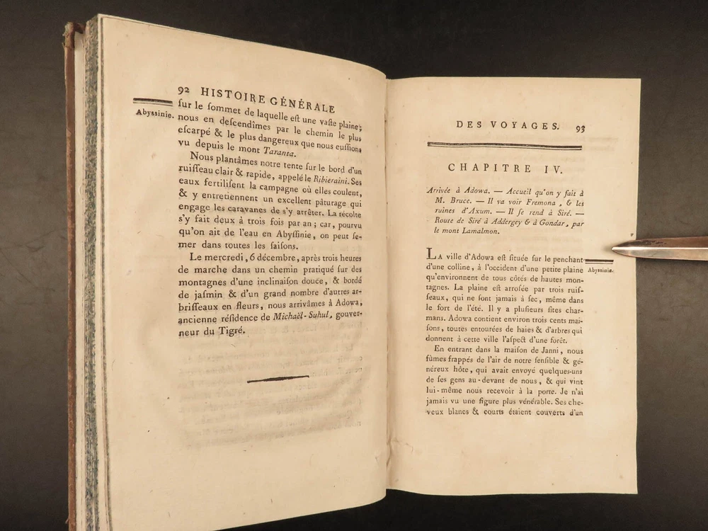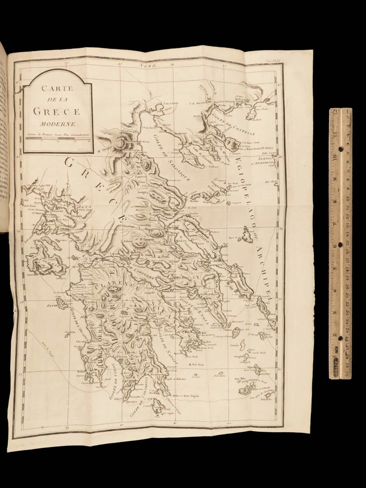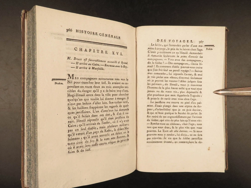 1798 VOYAGES Constantinople Arabia James Bruce Hottentots Africa Pococke MAPS The best book of its kind! A rare book La Harpe’s ‘ General History of Voyages’ ! This extensive work was begun by La Harpe, and, after the first 21 volumes, was completed by several other historians. Not only does this work describe the geography of specific voyages, but it covers the sciences, commerce, religion, and customs of people groups from Africa, Asia, Americas, and Pacific Islands. According to Sabin, La Harpe’s ‘Voyages’ is “a work that has met with greater success than any other of the same kind; the fidelity of the narration, the striking details of adventures, and the lively pictures of manners, etc., it presents, will always give it a peculiar and lasting merit. Contains all the early voyages of America. ” This lot includes volumes from the supplemental volumes. Notable contents found in these tomes including: · James Bruce voyages in Nubia, Abyssinia, Egypt · William Paterson voyages in South Africa o Hottentots · Middle East voyages: o Chardin in Constantinople o Georgia o Armenia o Persia · Voyages of Tournefort and Pockocke to Constantinople, Armenia, Georgia · Voyages of Tocat & d’Angora · Ancient and Modern Constantinople – extensive descriptions Item number: #25589 Price: $599 La HARPE, Jean-François Abrégé de l'histoire générale des voyages. A Paris : Hôtel de Thou, 1798-1801. Details : · Collation: Complete with all pages; 4 volumes o Vol. 25 – [4], 471, [1] § 1 folding map § 2 engravings o Vol. 27 – [4], 527, [1] § 1 folding map § 1 engraving o Vol. 29 – [2], 583, [1] § 1 folding map § 1 engraving o Vol. 32 – vi, 420 · References: Brunet III, 771; Sabin 38632 · Language: French · Binding: Leather; tight and secure · Size : ~8in X 5.25in (20cm x 13cm) Our Guarantee: Very Fast. Very Safe. Free Shipping Worldwide. Customer satisfaction is our priority! Notify us with 7 days of receiving, and we will offer a full refund without reservation! 25589