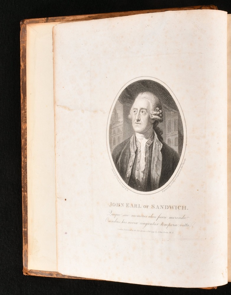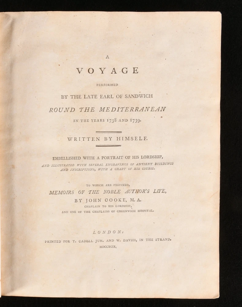 Click here to see our other books! A Voyage Performed By the Late Earl of Sandwich Round the Mediterranean in the Year 1738 and 1739 Earl of Sandwich; John Montagu 1799 T. Caddell Jun. and W. Davies : London 11" by 9" [5], ii-xl, [3], 4-539, [1pp] SUMMARY An illustrated first edition documenting the Earl of Sandwich's voyage to the Mediterranean, complete with the hand-coloured folding map. First Edition,Folding Maps,Illustrated,Leather Binding Overall Condition: Very Good Indeed This book weighs 3 KG when packed UK Postage: £ 3.99 US Postage: £ 36.99 EU Postage : £ 25.99 European Postage: £ 27.99 Asia Postage: £ 47.99 Worldwide Postage: £ 69.99 DESCRIPTION The first edition of this work. Illustrated with a frontispiece, one hand-coloured folding map, and twenty-five plates. Collated, complete. ESTC citation number T98245. This work is a quarto, with the signatures running as [2], a-z4, AA-ZZ4, AAA-YYY4, ZZZ2. Prefixed with a memoir of the author's life, written by John Cooke, who was Sandwich's chaplain, and one of the chaplains of Greenwich Hospital. This work documents John Montagu's, the 4th Earl of Sandwich, experiences during his early eighteenth century Grand Tour around Continental Europe. He undertook this tour after he graduated Trinity College Cambridge. He visited what were considered to be stranger and unusual destinations during his tour, as they were part of the Ottoman Empire, such as Greece, Turkey, and Egypt. The tour took a year, and he undertook it with a small group of friends. In Constantinople, he studied the language and customs of the country. On the return of the journey he was full of new information with learned manuscripts and a collection of antiquities. It provided him with his reputation as a traveller and scholar, due to it being an unusual and dangerous voyage. Later in his life Sandwich founded a number of Orientalist societies. Bookplate of Henry Holdsworth to the front pastedown. CONDITION In a full mottled calf binding, rebacked with the original spine and boards laid down. Externally, snart. Light rubbing and surface cracks to the spine. A few light marks to the boards. Minor bumping to the extremities. Bookplate of Henry Holdsworth to the front pastedown. Internally, firmly bound. Pages are bright and generally clean with only the odd light spot. Small repair to the frontispiece, not affecting image. Small marginal closed tears to the head of pages 149/150 and 385/386, with no loss. Overall Condition: Very Good Indeed GLOSSARY OF TERMS Overall Condition (Dustwrapper condition rating is shown after that for the book itself, where a dustwrapper is present) Fine - Very well preserved copy showing very little wear Very Good Indeed - Only one or two minor faults, really a very attractive copy Very Good - Quite a wide term meaning no major faults but probably several smaller ones often expected given the age of the book, but still a respectable copy Good - Meaning not very good. Some more serious faults as will be described in the condition report under 'condition' Good Only - Meaning one or more faults that could really do with repair Fair - As with good only above but with other faults leaving a compromised copy even after repair Poor - Really bad and possibly seriously incomplete. We only sell books in this condition where their rarity or value makes them attractive none the less. Major defects will be described. GUARANTEE We offer a full money back guarantee on our descriptions. Please ask for details and conditions. We prefer PAYPAL. If you pay via PAYPAL we will post the item off the same or the next working day with the postage you have selected. Please note we cannot accept USD cheques