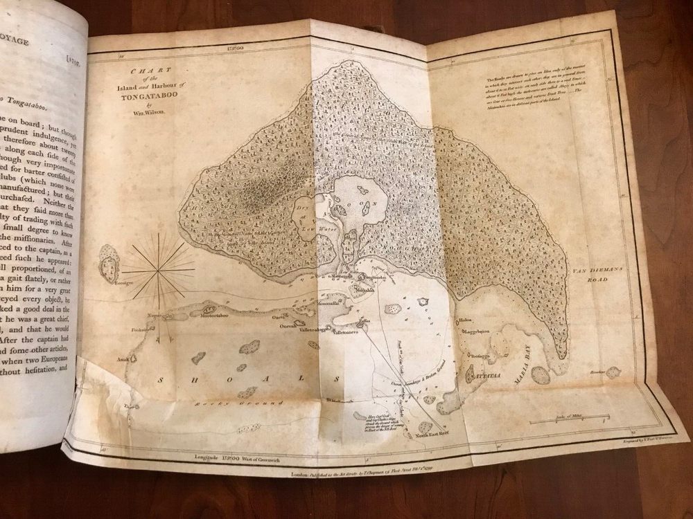 Absolutely fascinating historical treasure! This first edition of Wilson's 1799 missionary voyage is packed with rich details, original maps, and firsthand accounts of the South Pacific. The leather-bound hardcover shows its age with some wear—detached rear board and a crudely reattached front—but that just adds to its authentic charm. Perfect for collectors who appreciate rare, well-documented expeditions. The seven maps (five folding!) and six plates make it a visual delight. A true piece of exploration history waiting for restoration or display.