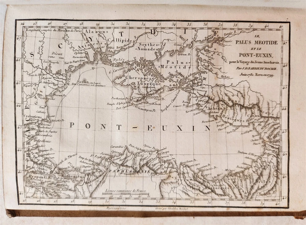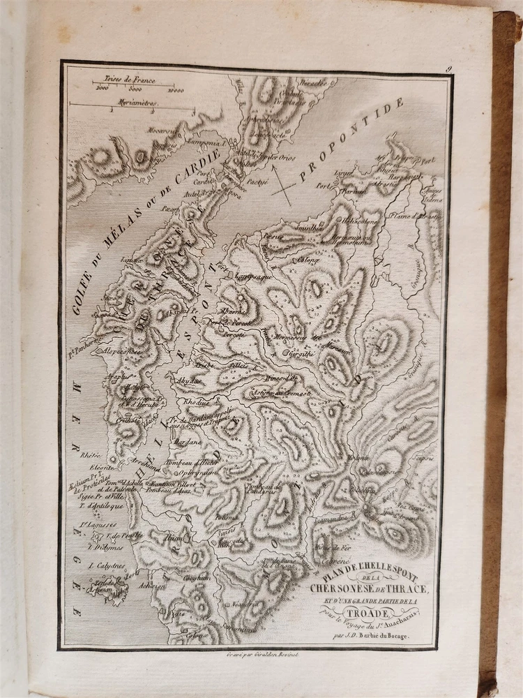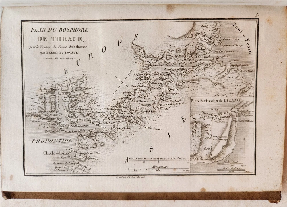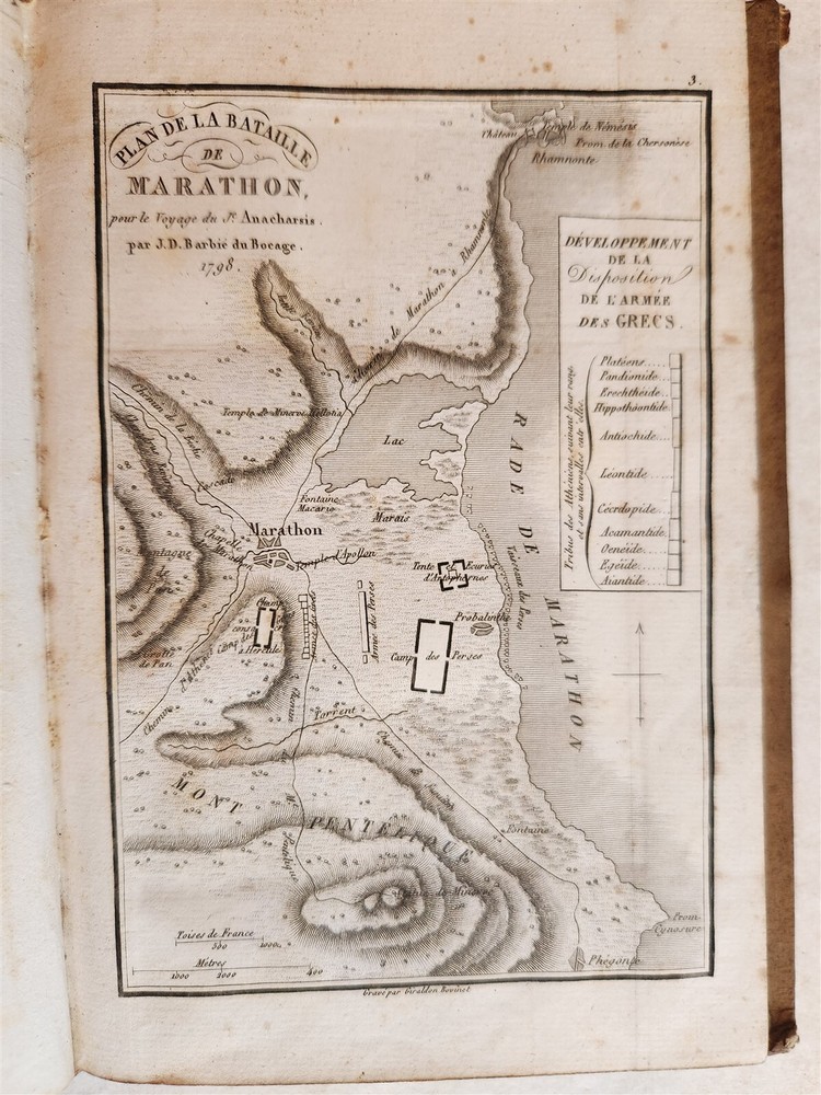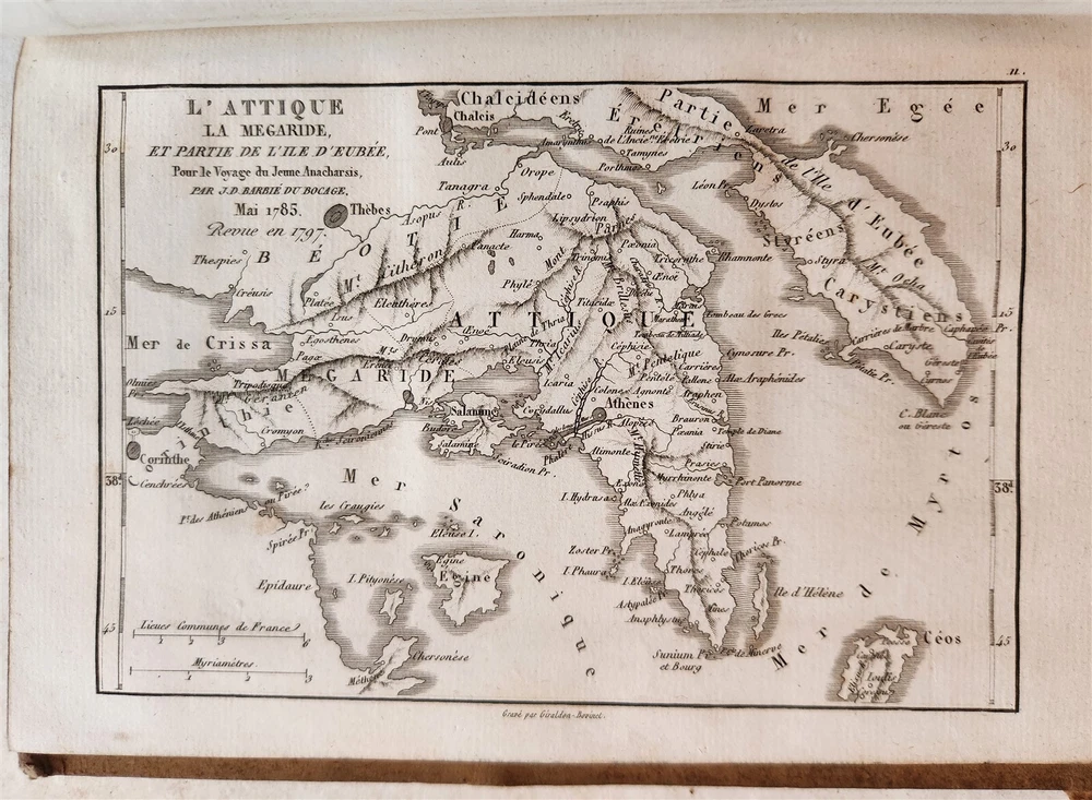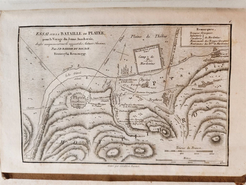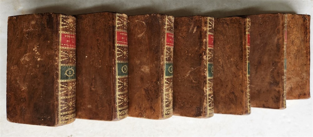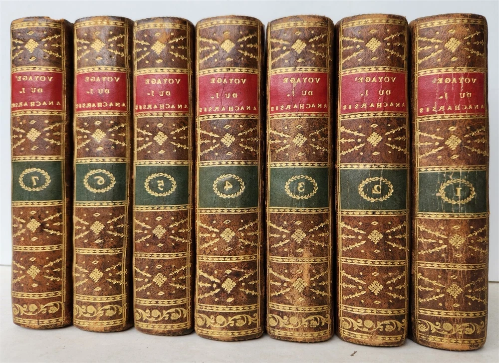 Voyage du jeune Anacharsis en Grece, vers le milieu du quattrième siecle avant l'ere vulgaire (...). Mixed edition. Atlas and 7 text vols., altogether 8 vols. Paris, Didot Jeune (1799) and 1821. With 36 (instead of probably 39) copper plates. Size 4 by 6.5" (atlas 5.5 by 8") Text volumes are leather bound, spines gilt decorated. Atlas is half leather over cardboard Very good condition Text in French ============================== Please see my other auctions Thank You Refund Policy: We will issue a FULL REFUND, 100% money back if you are not satisfied with your purchase. Items must be returned to us within 20 days in order to receive a refund or replacement. Buyer is responsible for shipping costs. Powered by SixBit's eCommerce Solution
