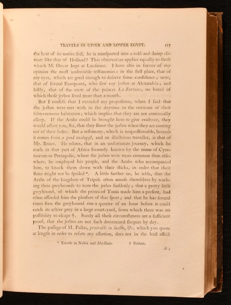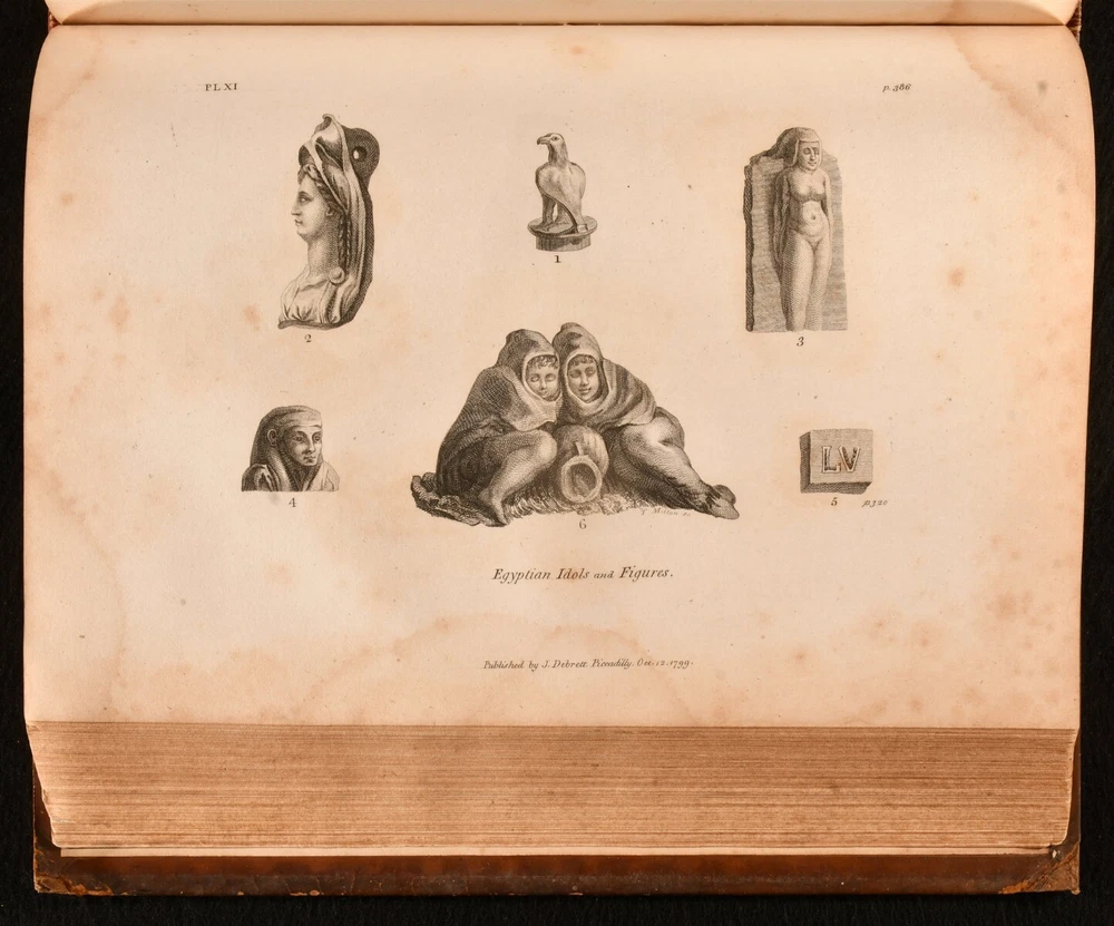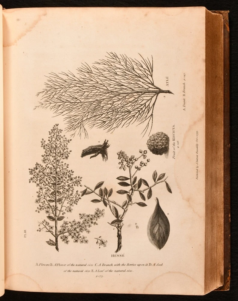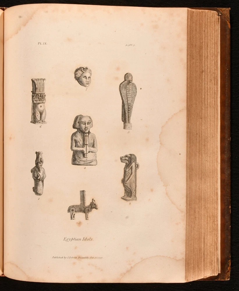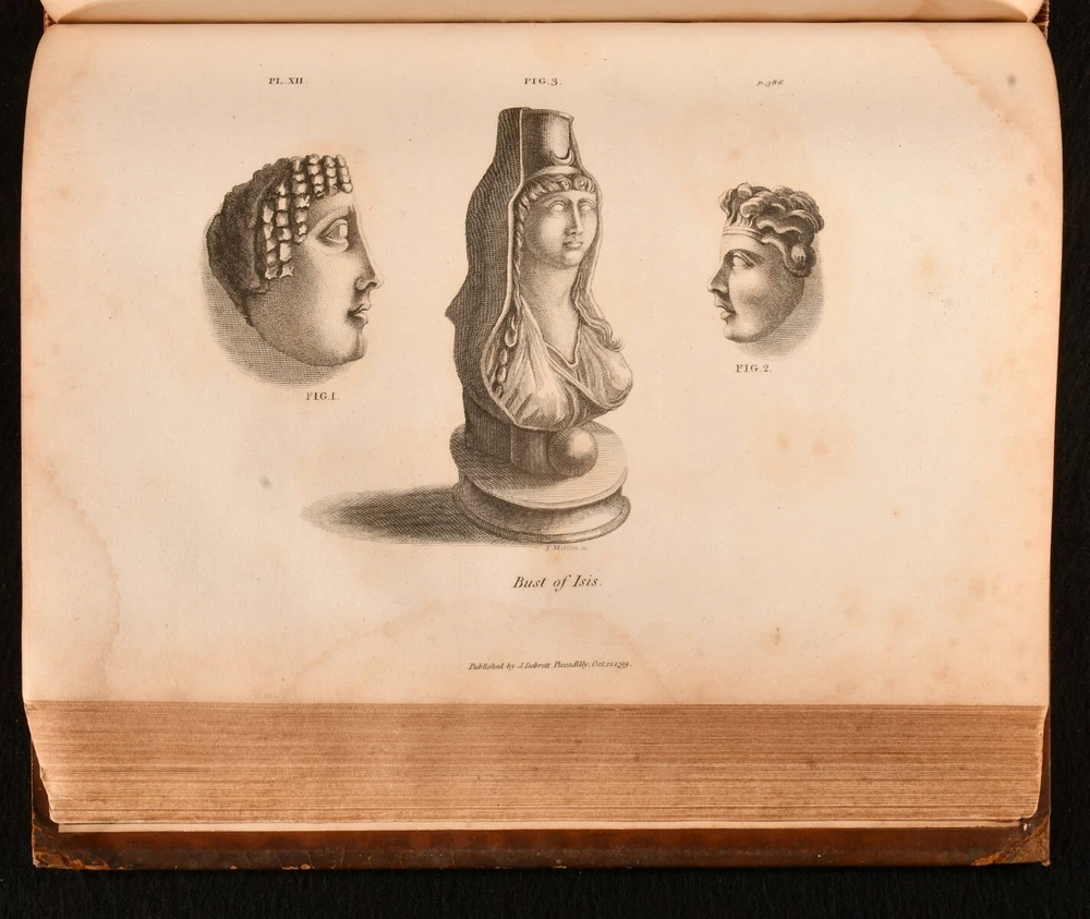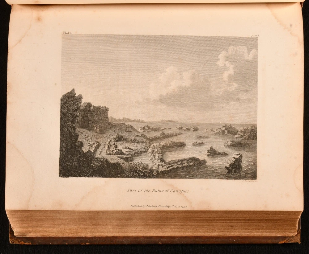 Click here to see our other books! Travels in Upper and Lower Egypt, Undertaken By Order of the Old Government of France C. S. Sonnini 1800 J. Debrett : London 11" by 8.5" [4], xl, 730, [12pp] SUMMARY A smart English edition of Sonnini's vividly detailed travel work on his time spent in Egypt, a lovely illustrated edition with a cloth-backed folding map. First Edition,Folding Maps,Illustrated,Leather Binding,Rebound Overall Condition: Good This book weighs 3 KG when packed UK Postage: £ 3.99 US Postage: £ 36.99 EU Postage : £ 25.99 European Postage: £ 27.99 Asia Postage: £ 47.99 Worldwide Postage: £ 69.99 DESCRIPTION The first English edition of this work published in one volume. A 1799 edition was published in three volumes. Illustrated with a frontispiece, a cloth-backed folding map, and twenty-seven plates. Half-title is present. Collated, complete. Sonnini's detailed travel work on Egypt as it was towards the end eighteenth century, detailing the author's expedition to Egypt in the 1770s. An interesting study on the natural history of Egypt. Written by Charles-Nicolas-Sigisbert Sonnini de Manoncourt. Sonnini was a French naturalist, writing one-hundred and seventy-two volumes of 'Histoire Naturelle' over his career. Translated from French to English by Henry Hunter, a Scottish minister known for his translations of Leonard Euler and Johann Kaspar Lavater. In the armorial binding of Sir William O'Malley, with the O'Malley crest family bookplate to the front paste down. CONDITION In a full marbled calf binding, rebacked with the original boards and spine restored. Light rubbing to the original calf, with a patch of loss to the rear board. Minor surface cracks to the spine. Light bumping to the extremities. Very small chip and closed tear to the spine label. Bookplate to the front paste down. Blind stamp to the rear endpaper. Internally, firmly bound. Pages are lightly age-toned with some scattered spots, including to the endpapers. Tidemark to the frontispiece and to the plates. Fainter tide mark and light spots to the cloth-backed folding map. Overall Condition: Good GLOSSARY OF TERMS Overall Condition (Dustwrapper condition rating is shown after that for the book itself, where a dustwrapper is present) Fine - Very well preserved copy showing very little wear Very Good Indeed - Only one or two minor faults, really a very attractive copy Very Good - Quite a wide term meaning no major faults but probably several smaller ones often expected given the age of the book, but still a respectable copy Good - Meaning not very good. Some more serious faults as will be described in the condition report under 'condition' Good Only - Meaning one or more faults that could really do with repair Fair - As with good only above but with other faults leaving a compromised copy even after repair Poor - Really bad and possibly seriously incomplete. We only sell books in this condition where their rarity or value makes them attractive none the less. Major defects will be described. GUARANTEE We offer a full money back guarantee on our descriptions. Please ask for details and conditions. We prefer PAYPAL. If you pay via PAYPAL we will post the item off the same or the next working day with the postage you have selected. Please note we cannot accept USD cheques