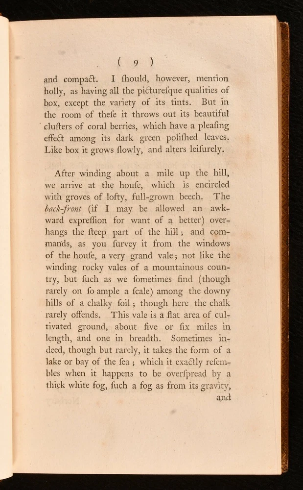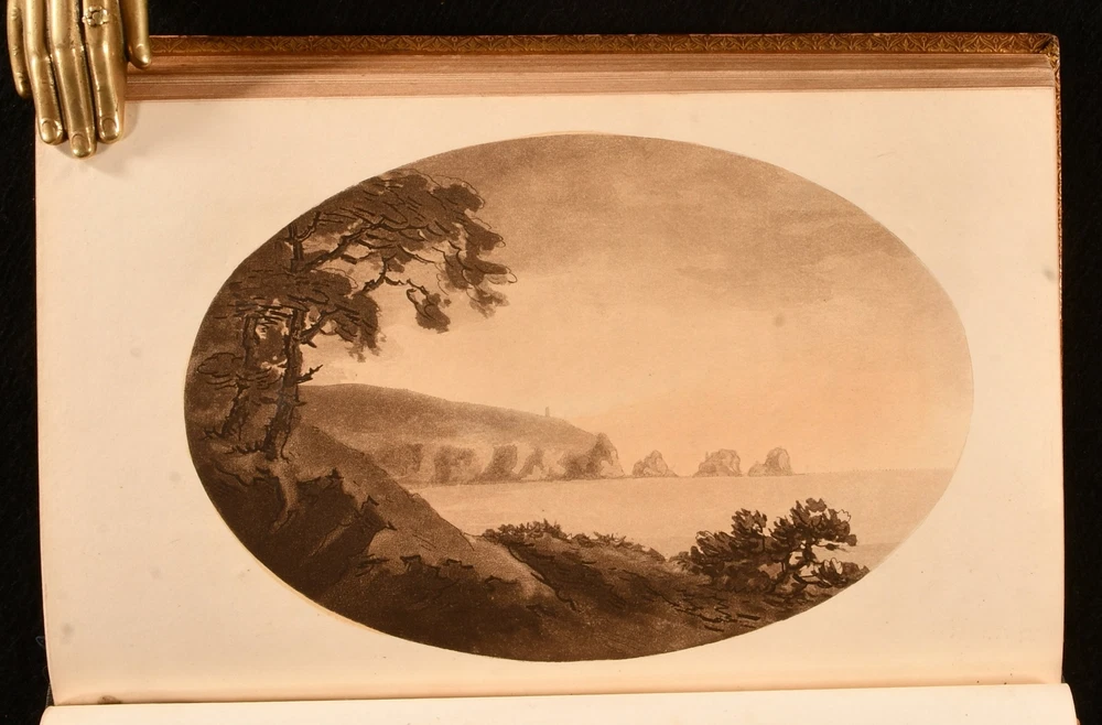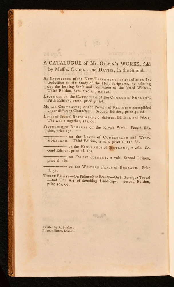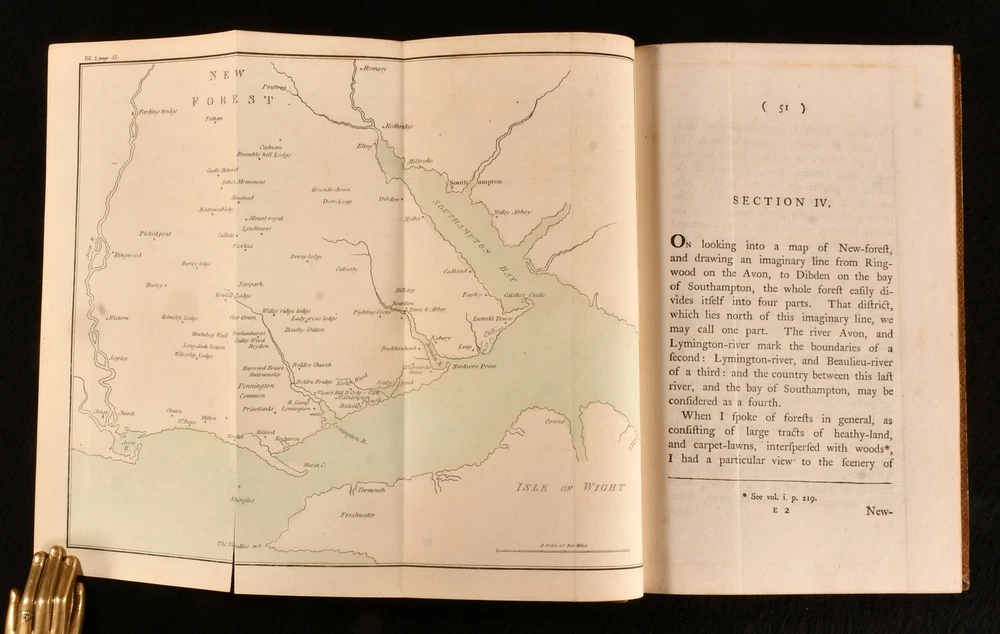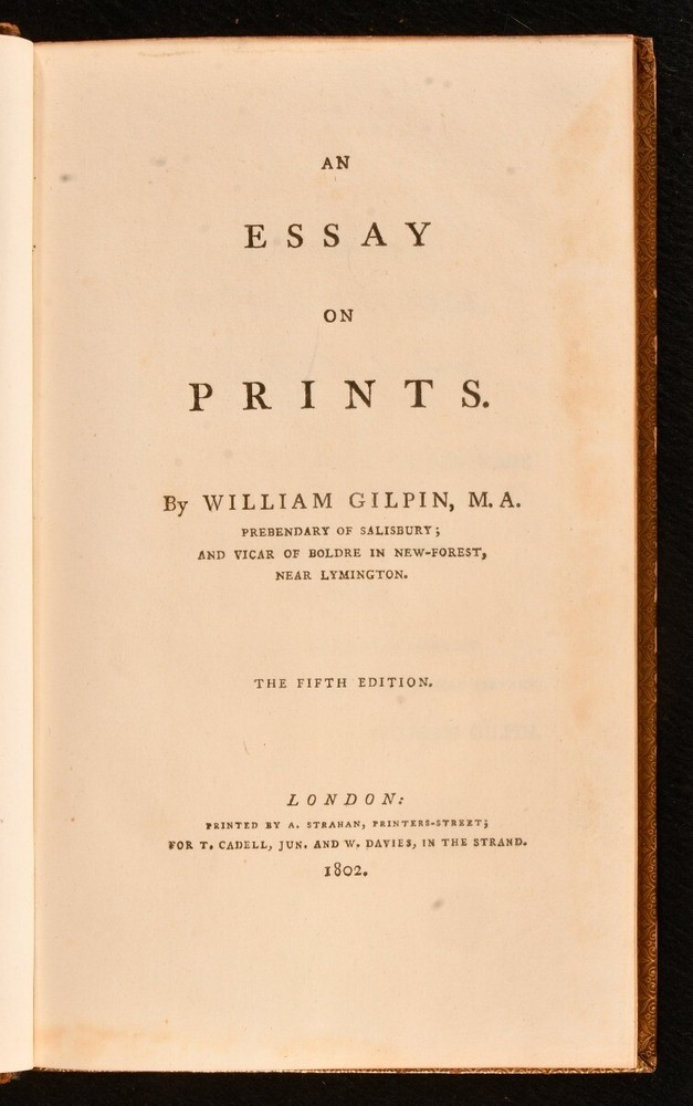 Click here to see our other books! An Essay on Prints; Observations on the Western Parts of England, Relative Chiefly to Picturesque Beauty; To Which are Added, a Few Remarks on the Picturesque Beauties of the Isle of Wight; Remarks on Forest Scenery, and Other Woodland Views, Relative Chiefly to Picturesque Beauty, Illustrated by the Scenes of New Forest in Hampshire; Observations on Several Parts of the Counties of Cambridge, Norfolk, Suffolk, and Essex. Also on Several Parts of North Wales; Relative Chiefly to Picturesque Beauty, in Two Tours, The Former Made in the Year 1769. The Latter in the Year 1773 William Gilpin 1802-1809 T. Cadell and W. Davies : London 8.5" by 5.5" xiii, 187, [1]; xvi, 359, [1]; 362; x, 208pp. SUMMARY Four popular works by the English artist, cleric and author, William Gilpin. Uniformly bound in smart full calf. Early Edition,Folding Maps,Folding Plates,Illustrated,Leather Binding,Rebound Overall Condition: Very Good This book weighs 3 KG when packed UK Postage: £ 3.99 US Postage: £ 36.99 EU Postage : £ 25.99 European Postage: £ 27.99 Asia Postage: £ 47.99 Worldwide Postage: £ 69.99 DESCRIPTION Four popular works by William Gilpin. Uniformly bound in smart full calf with gilt detail. William Gilpin was an English artist, Church of England cleric, and author. He is best known for his works of travel writing and topography, as well as for being one of the first users of the term, 'Picturesque'. He had a keen interest in aesthetics, and outdoor scenery. This set comprises of: 'An Essay on Prints', the fifth edition. One of Gilpin's most renowned and influential works, in which he discusses his principles of aesthetics and defines the picturesque. With one page of publisher's advertisements to the rear of the work. 'Observations on the Western Parts of England, Relative Chiefly to Picturesque Beauty; To Which are Added, A Few Remarks on the Picturesque Beauties of the Isle of Wight', the second edition. One of Gilpin's popular travel works. With eighteen full-page plates. With one page of publisher's advertisements to the rear. Collated complete. 'Remarks on Forest Scenery, and other Woodland Views, Relative Chiefly to Picturesque Beauty', the third edition. Volume two only, of the original two volumes. Illustrated with scenes of New Forest in Hampshire. With fourteen full-page plates and a folding map. Collated complete. 'Observations on Several Parts of the Counties of Cambridge, Norfolk, Suffolk, and Essex. Also on Several Parts of North Wales; Relative Chiefly to Picturesque Beauty, in Two Tours, The Former Made in the Year 1769. The Latter in the Year 1773', the first edition. Published by Gilpin's trustees, for the benefit of his school at Boldre, where Gilpin worked. With nineteen full-page plates. Collated complete. Each volume has a bookplate for one, 'William Charles Smith', to the front paste-down. CONDITION Uniformly bound in full calf. Externally, very smart with some rubbing to the extremities and marks to the boards. Spines are darkened. Some loss to the leather of the front board and lower spine of the 'Norfolk Tour'. The rear joint of, 'Western parts of England', is starting but still firm. The lower rear joint of, 'Forest Scenery', is cracked but firm. The rear hinges of, 'An Essay on Prints', 'Norfolk Tour', and, 'Western Parts of England', are starting but still very firm. Front hinge of, 'Norfolk Tour', is strained but firm. Bookplate to the front paste-downs of each volume. Light offsetting to the edges of the free endpapers. Internally, firmly bound. Pages lightly age-toned but otherwise generally bright and clean with light spotting throughout. Offsetting surrounding the plates in the illustrated volumes. Closed tear of about one inch to the folding map on page 51 of, 'Forest Scenery'. Pencil annotations to page 60 of 'Forest Scenery'. The front blank of, 'Forest Scenery', is loosening Overall Condition: Very Good GLOSSARY OF TERMS Overall Condition (Dustwrapper condition rating is shown after that for the book itself, where a dustwrapper is present) Fine - Very well preserved copy showing very little wear Very Good Indeed - Only one or two minor faults, really a very attractive copy Very Good - Quite a wide term meaning no major faults but probably several smaller ones often expected given the age of the book, but still a respectable copy Good - Meaning not very good. Some more serious faults as will be described in the condition report under 'condition' Good Only - Meaning one or more faults that could really do with repair Fair - As with good only above but with other faults leaving a compromised copy even after repair Poor - Really bad and possibly seriously incomplete. We only sell books in this condition where their rarity or value makes them attractive none the less. Major defects will be described. GUARANTEE We offer a full money back guarantee on our descriptions. Please ask for details and conditions. We prefer PAYPAL. If you pay via PAYPAL we will post the item off the same or the next working day with the postage you have selected. Please note we cannot accept USD cheques