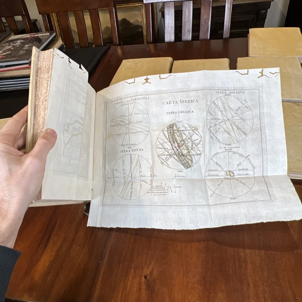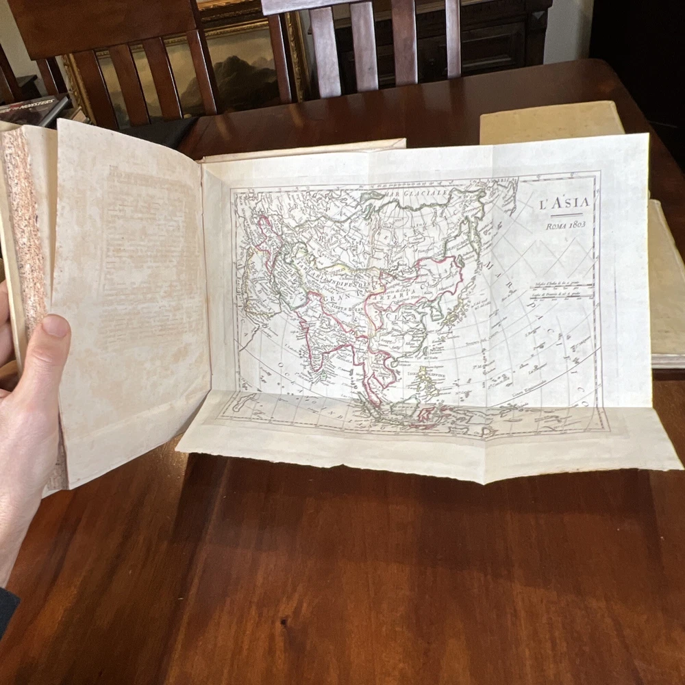 COMPLETE 9 Volume Atlas Set by W. Guthrie -Bound in original calfskin leather -Every volume with maps attached -One Full Western Hemisphere Map -One Full Eastern Hemisphere Map -Maps of all continents with the exception of Antarctica. Fantastic map of the United States/North America. Please see photos for bookworm marks in some of the books. Happy to report that none of the bookworm marks go through the map image areas. All image areas of the maps are very clean and bright. All maps attached. No separated pages. The feel of these books is absolutely sensational. The calfskin leather in hand is sublime. -Volumes are 10 inches tall and 7 1/2 inches across -Please feel free to message me with any questions or any requests for additional photos. I am very happy to send them and will respond to your question without 12 hours or less