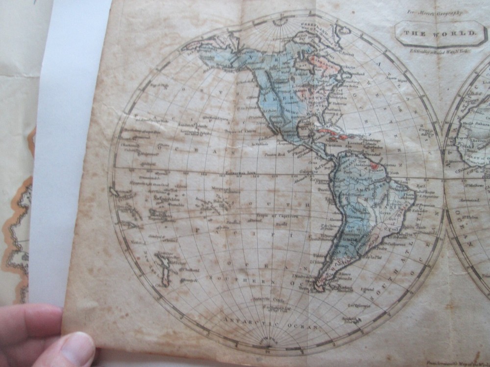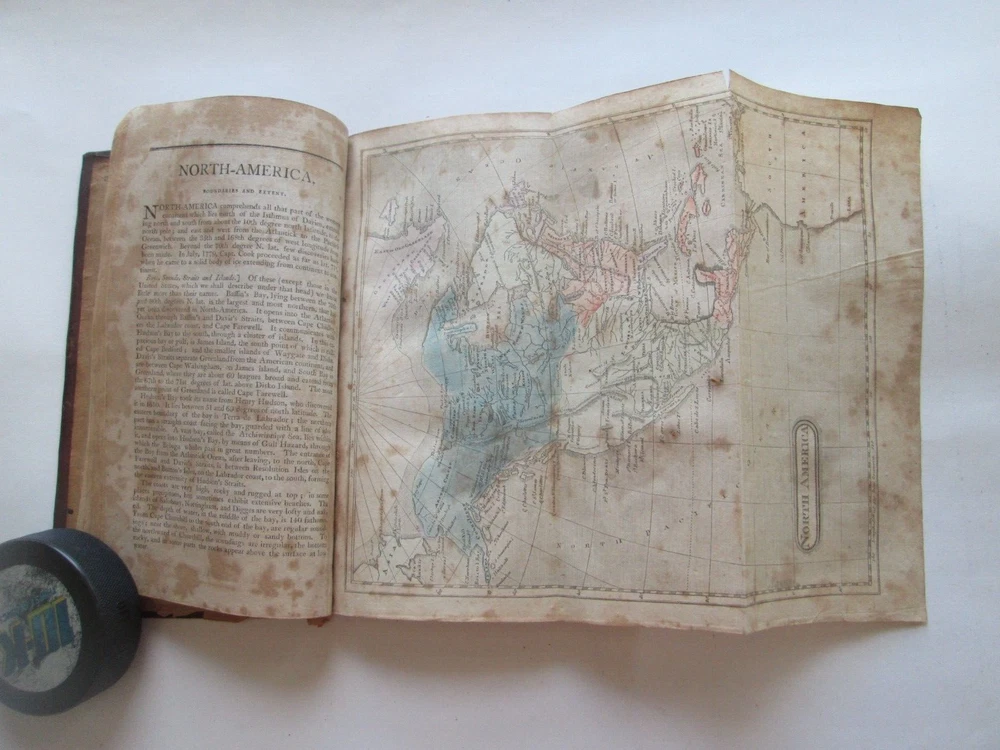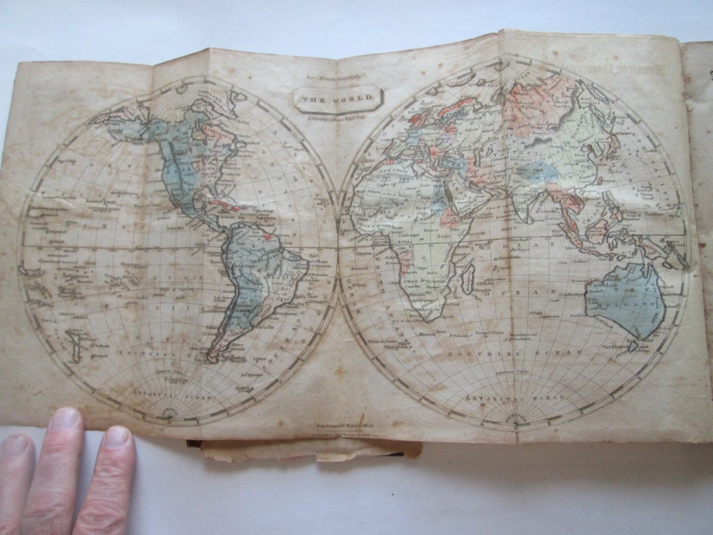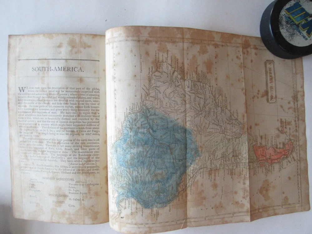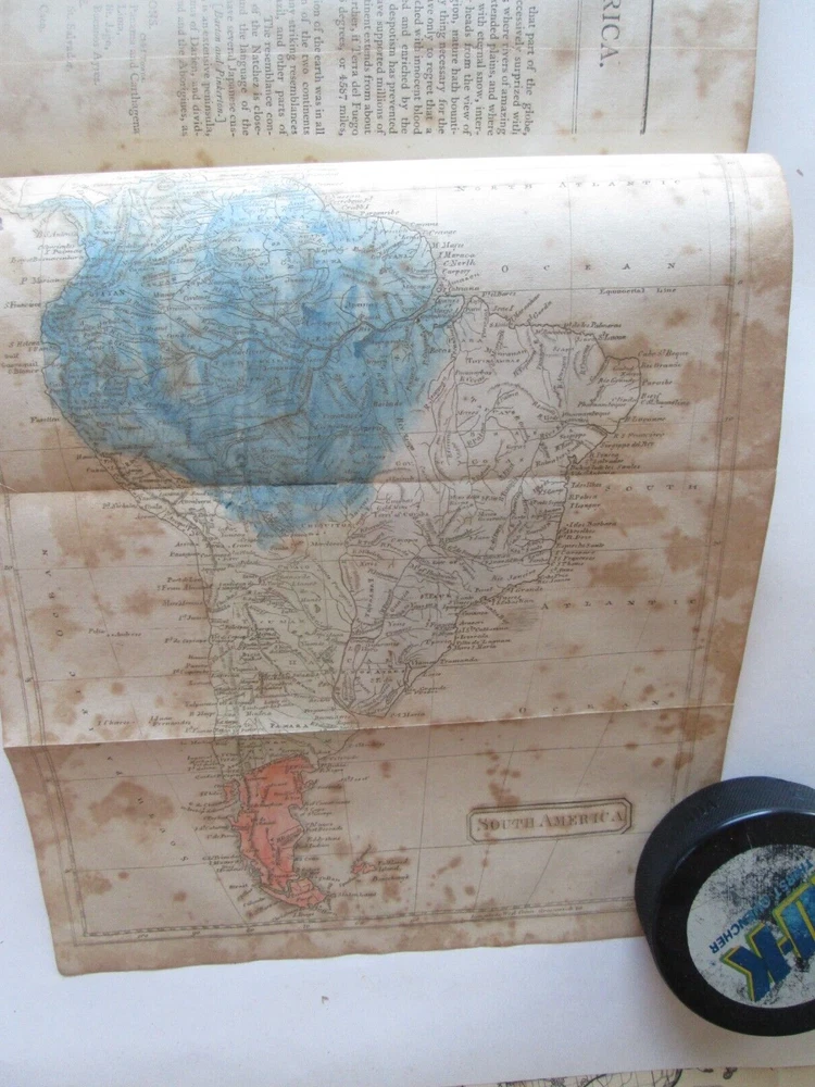 PICTURES WERE TAKEN INDOORS IN NATURAL LIGHT. LIGHT SOURCE IS TO THE TOP. THERE ARE SHADOWS AND REFLECTIONS. You are bidding on ONE ANTIQUE BOOK. This is the 1805 AMERICAN UNIVERSAL GEOGRAPHY, "PART FIRST" JEDIDIAH MORSE, THREE MAPS THIS IS PART ONE ONLY. MAPS ARE HEMISPHERES, NORTH AMERICA, AND SOUTH AMERICA. PLEASE SEE SFIRST PICTURE FOR TITLE PAGE. PUBLISHED by "SHIRLEY AND HYDE, PORTLAND: PRINTED IN: THOMAS & ANDREWS, BOSTOM DATE: 1805 SIZE: Book is 5-1/4" wide by 8-5/8" tall by 2-1/2" thick. CONDITION: FAIR CONDITION WITH SPLIT BINDING AND FOXING. IT IS COMPLETE. BETTER PICTURES: EMAIL ME IF YOU WANT HIGHER RESOLUTION AND/OR MORE SPECIFIC PICS AND DESCRIPTIONS. SHIPPING & HANDLING: PLEASE NOTE: I SHIP ONCE A WEEK. SHIPPING TO THE 48 CONTIGUOUS UNITED STATES WILL BE $12.00 VIA U.S.P.S. PRIORITY MAIL.. I ship via U.S.P.S. only. PLEASE CHECK OUT MY OTHER AUCTIONS.