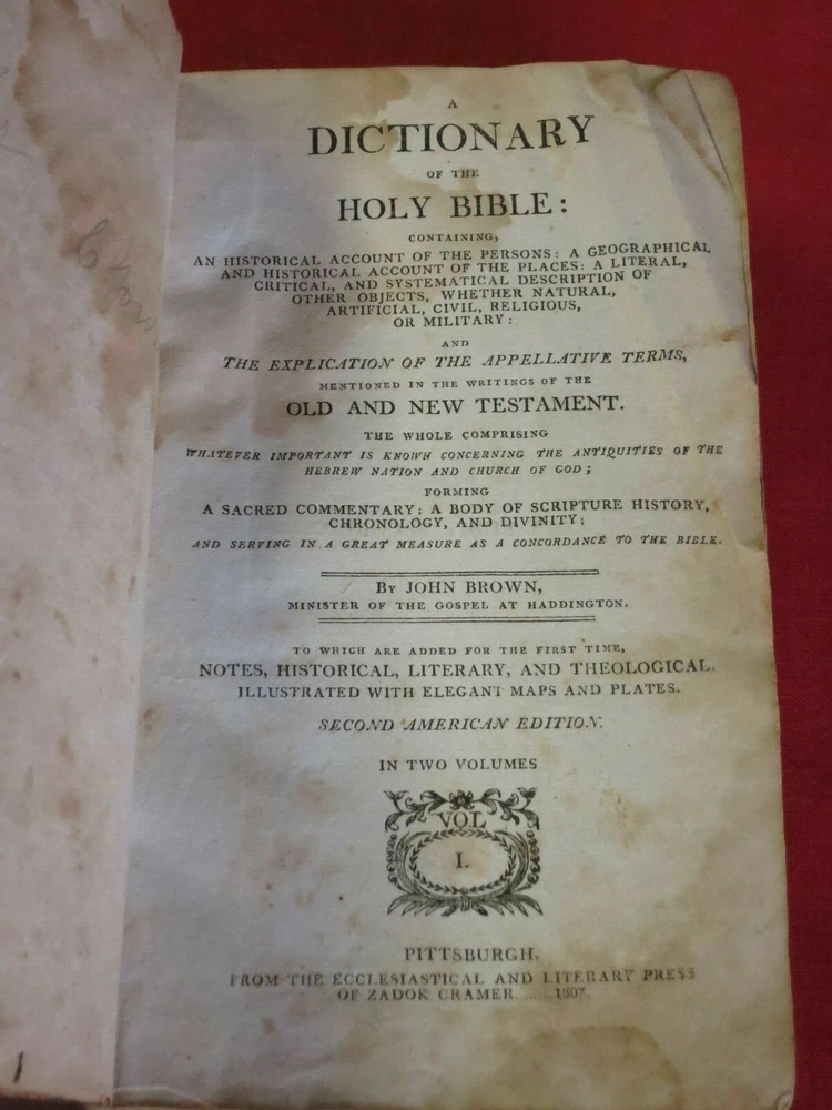 DICTIONARY Of The HOLY BIBLE Old And New Testament Illustrated With Elegant Maps And Plates In Two Volumes VOLUME I The Ecclesiatical And Literary Press 1807 Check out my other items !...