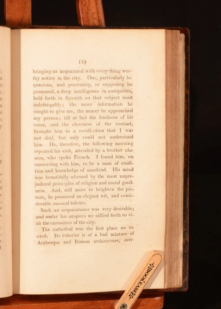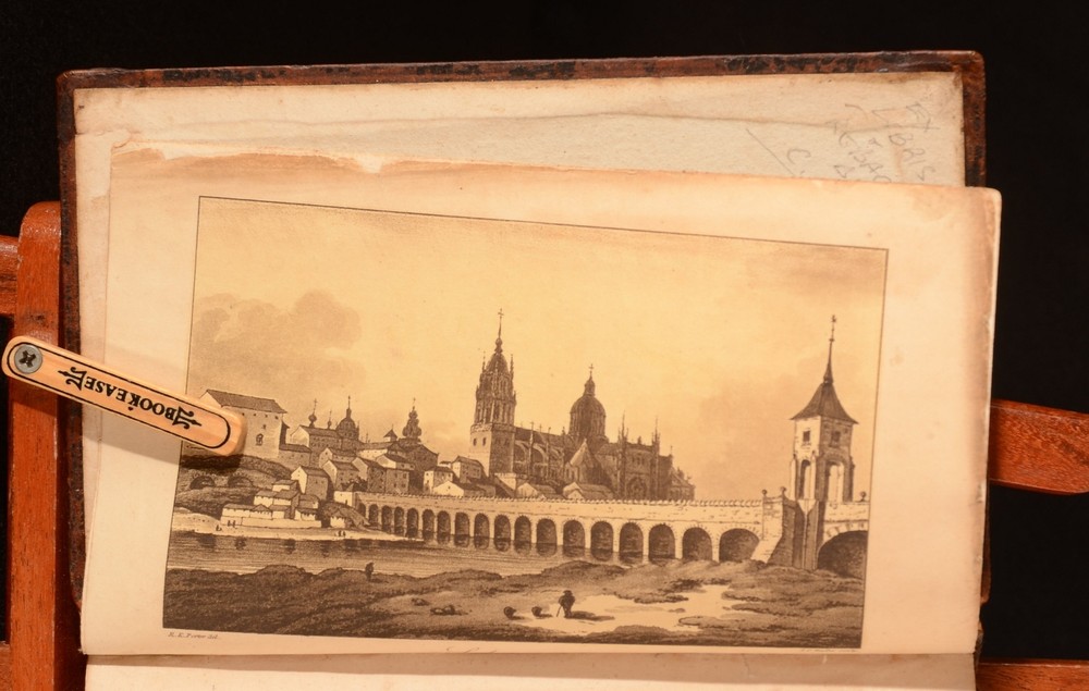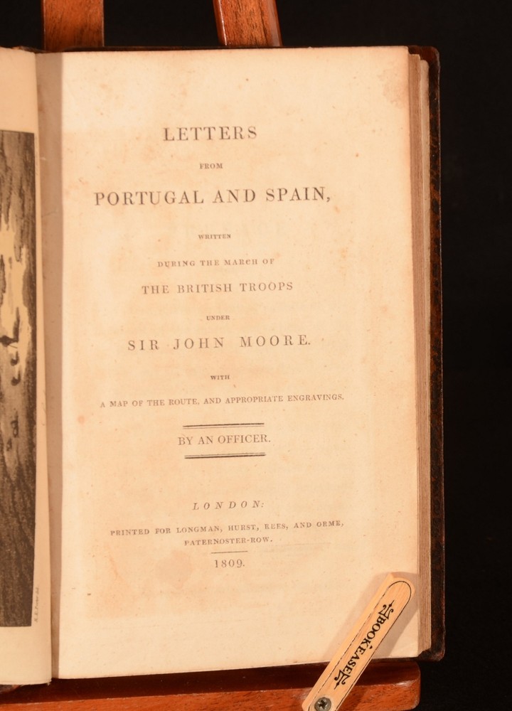 Click here to see our other books! Letters from Portugal and Spain Written During The March of The British Troops Under Sir John Moore With A Map of the Route and Appropriate Engravings by an Officer Sir Robert Ker Porter; Sir John Moore 1809 Longman, Hurst, Rees, Orme, and Brown : London 8.5" by 5.5" xiv, [3], 2-320pp SUMMARY The first edition of this uncommon work regarding travels in Portugal and Spain during the Peninsula War. First Edition,Illustrated,Leather Binding,Uncommon Overall Condition: Very Good This book weighs 0.75 KG when packed UK Postage: £ 3.99 US Postage: £ 19.99 EU Postage : £ 15.99 European Postage: £ 16.99 Asia Postage: £ 21.99 Worldwide Postage: £ 25.99 DESCRIPTION Written by Sir Robert Ker Porter, a Scottish artist, diplomat and traveller. Porter is noted for his accounts of times in Russia, Spain and Persia. He was also one of the earliest panorama painters in Britain. This work is based on letters written by Sir Robert Ker Porter on his travels under General Sir John Moore. Moore and Porter met in Sweden where Porter decided to accompany Moore on his military expedition. Porter was therefore present at the Battle of Coruna, and the death of the general. These letters give a detailed account of this battle. Illustrated with six plates. Collated, complete. To the preface Porter notes that these letters were 'written on the spot, and immediately as the events arose, of which they are the subjects'. A key first-hand account regarding the state of Portugal and Spain during the Napoleonic Wars. CONDITION In a contemporary tree calf binding. Rebacked with the original spine label laid down. Chip to the frontispiece at the edges. Internally, firmly bound. Pages are generally bright with just the odd scattered spots. Overall Condition: Very Good GLOSSARY OF TERMS Overall Condition (Dustwrapper condition rating is shown after that for the book itself, where a dustwrapper is present) Fine - Very well preserved copy showing very little wear Very Good Indeed - Only one or two minor faults, really a very attractive copy Very Good - Quite a wide term meaning no major faults but probably several smaller ones often expected given the age of the book, but still a respectable copy Good - Meaning not very good. Some more serious faults as will be described in the condition report under 'condition' Good Only - Meaning one or more faults that could really do with repair Fair - As with good only above but with other faults leaving a compromised copy even after repair Poor - Really bad and possibly seriously incomplete. We only sell books in this condition where their rarity or value makes them attractive none the less. Major defects will be described. GUARANTEE We offer a full money back guarantee on our descriptions. Please ask for details and conditions. We prefer PAYPAL. If you pay via PAYPAL we will post the item off the same or the next working day with the postage you have selected. Please note we cannot accept USD cheques