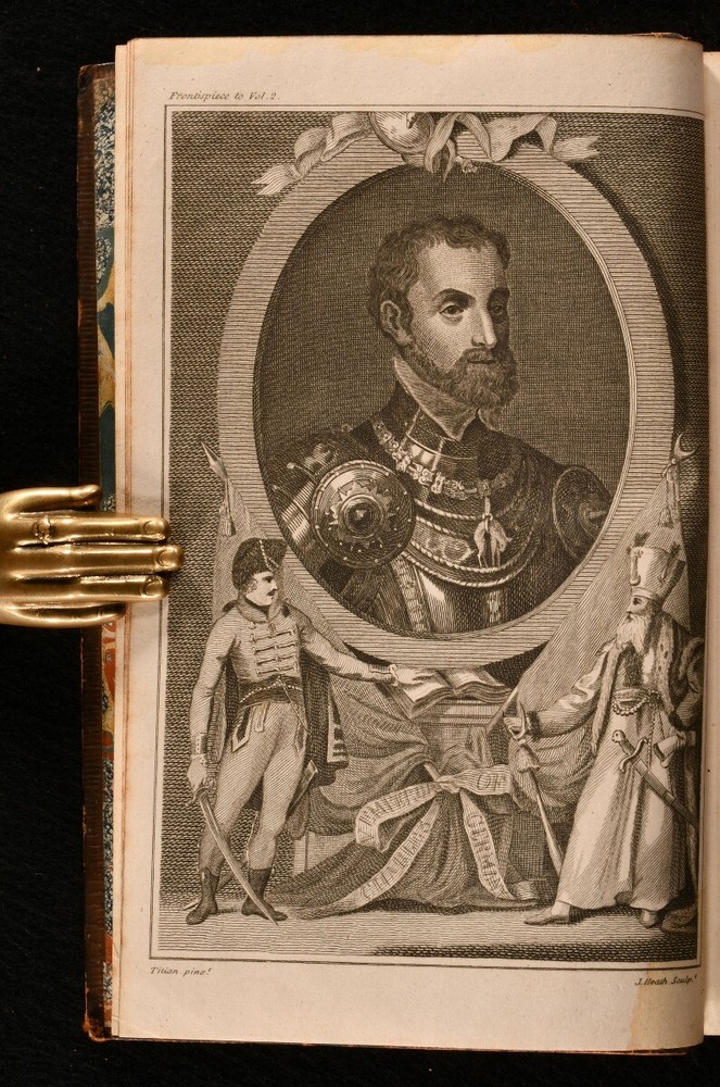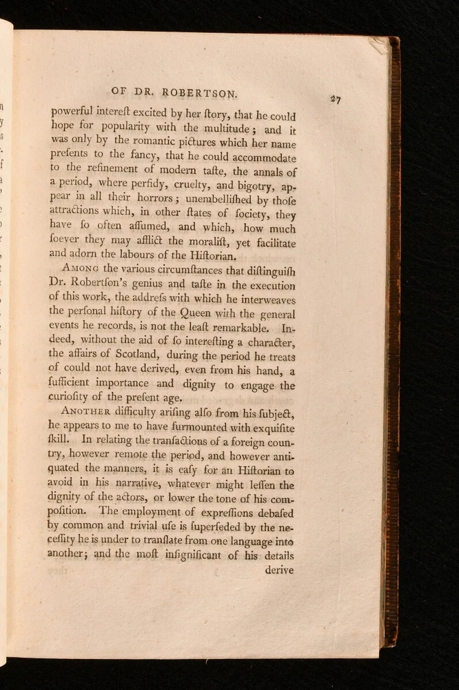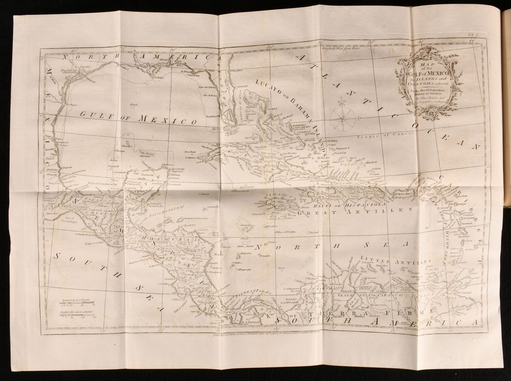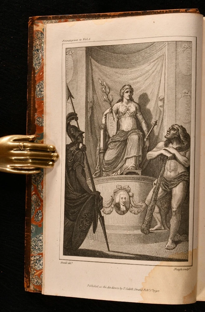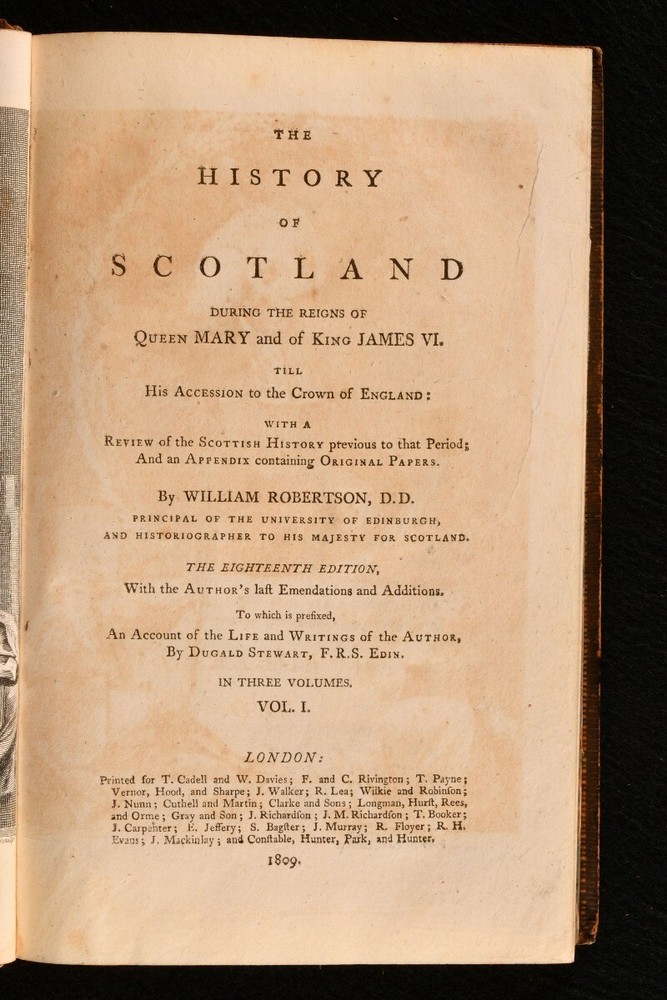 Click here to see our other books! The Works of William Robertson William Robertson 1809-12 T. Cadell and W. Davies : London 8.5" by 5.5" [5], vi-viii, [5], 2-416; [5], 2-430; [5], 2-490; [10], x-xv, [2], 2-500; [5], 2-376; [5], 2-459;[5], 2-420; [5], vi-li, [2], 2-383; [5], 2-432; [2], 2-435; [5], 2-418; [3], iv-vi, [3], 2-384, [19pp] SUMMARY A complete collection of the history works of William Robertson, illustrated throughout with folding maps. Folding Maps,Illustrated,Leather Binding Overall Condition: Good Only This book weighs 8 KG when packed UK Postage: £ 4.49 US Postage: £ 57.99 EU Postage : £ 33.99 European Postage: £ 59.99 Asia Postage: £ 99.99 Worldwide Postage: £ 199.99 DESCRIPTION Complete in twelve volumes. A collection of the detailed history works by William Robertson. Containing; 'The History of Scotland', complete in three volumes, published in 1809, the eighteenth edition of the work. Volume I illustrated with a frontispiece. 'The History of the Reign of the Emperor Charles V', complete in four volumes, published in 1812. The thirteenth edition of this work. Frontispiece to each of the four volumes. 'The History of America', complete in four volumes, published in 1812. The twelfth edition of this work. Volume I illustrated with a folding map. Volume II illustrated with three folding maps, and one folding plate. 'An Historical Disquisition Concerning the Knowledge Which the Ancients Had of India', complete in one volume published in 1812, the sixth edition of this work. Illustrated with two folding maps. Half-titles to each volume except Volumes I and XII. Bookplate to the front pastedowns. CONDITION In a full calf binding. Externally, generally smart, with rubbing and discolouration to the spines. Rear boards of Volumes II, and IV are detached but present. Front board of Volume IV may detach with further handling. Rear board of Volume VII may detach with further handling. Front board of Volume IX is detached but present, the rear board may detach with further handling. Front board of Volume XII is detached but present. Some fading to the front board of Volume I. Some minor marks and small patches of rubbing to the boards and spines. Heavier rubbing to the rear board of Volume I. Light bumping to the extremities. Some light loss to the heads and tails of the spines, a little heavier to some volumes, with some wear to the spines. A small amount of lifting to the head of the spine of Volume VI. Light cracks to the joints. Front hinge of Volume I strained but remains firm. Front hinges of Volumes II, III, V, and VI, are starting but firm. Rear hinge of Volume I starting but firm. Rear hinge of Volume XII is weak. Hinges of Volume VII, VIII, and X are starting but firm. Internally, firmly bound. Pages are lightly age-toned with some light spots. Small tidemark to the tail of the frontispiece and front endpapers of Volume I. Small tidemark to the frontispiece of Volumes IV, V, VI. Small chip to the title page of Volume V, not affecting text. A few light spots to the folding maps and plates. Chip to the margin of page 259/260 of Volume XI, not affecting text. Overall Condition: Good Only GLOSSARY OF TERMS Overall Condition (Dustwrapper condition rating is shown after that for the book itself, where a dustwrapper is present) Fine - Very well preserved copy showing very little wear Very Good Indeed - Only one or two minor faults, really a very attractive copy Very Good - Quite a wide term meaning no major faults but probably several smaller ones often expected given the age of the book, but still a respectable copy Good - Meaning not very good. Some more serious faults as will be described in the condition report under 'condition' Good Only - Meaning one or more faults that could really do with repair Fair - As with good only above but with other faults leaving a compromised copy even after repair Poor - Really bad and possibly seriously incomplete. We only sell books in this condition where their rarity or value makes them attractive none the less. Major defects will be described. GUARANTEE We offer a full money back guarantee on our descriptions. Please ask for details and conditions. We prefer PAYPAL. If you pay via PAYPAL we will post the item off the same or the next working day with the postage you have selected. Please note we cannot accept USD cheques