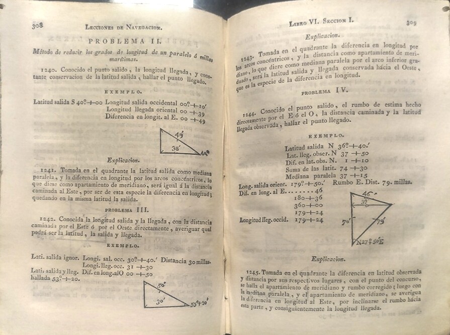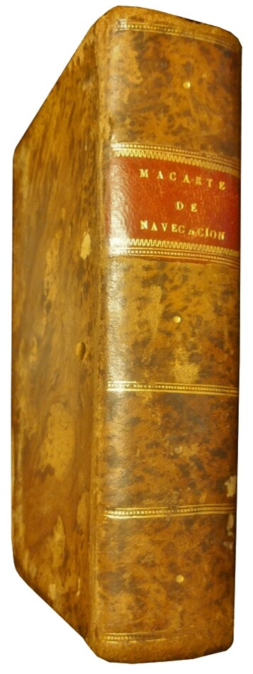 Untitled Document FREE DHL worldwide shipping: 2/4 days to North America, 3/5 days to Europe. Please check our feedback and see how quickly we ship. We are the leading Antiquarian Booksellers in Latin America & members of ILAB (International League of Antiquarian Booksellers, London) & ABA (Antiquarian Booksellers Association, London). Have been in business for more than 30 years. We are a general antiquarian bookstore with emphasis in Spanish-American material. Don't forget to visit our eBay store , this is one of the best stores of rare books on eBay. Author : Macarte y Diaz, D. Title : Lecciones de navegación o Principios necesarios a la ciencia del piloto. Date & Publisher: Palma, En la Oficina de D. Manuel Gallardo y Compañía, 1813. Description: Instruction book for sailors and sailing. Illustrated with full page and half page etching + folding charts and maps. Libro de instrucciones para los navegantes y navegación. Ilustrado con grabados a plena y media página + plegables gráficos y mapas. Binding: Full leather. Size : 8.4 x 6 inches. Number of pages : 567 + plates + folding maps . Condition : Binding used, corners bumped. One then two worm holes affecting the corner of 70 % of the books (outside the text and images hopefully). Internal reference: P5E25 / AA2D220