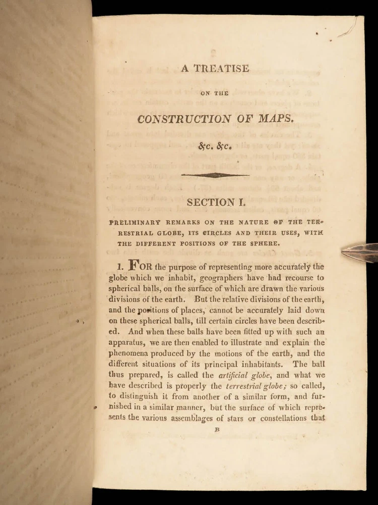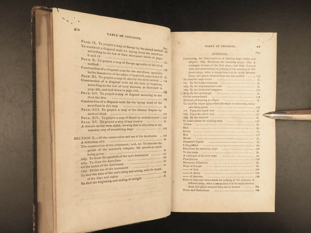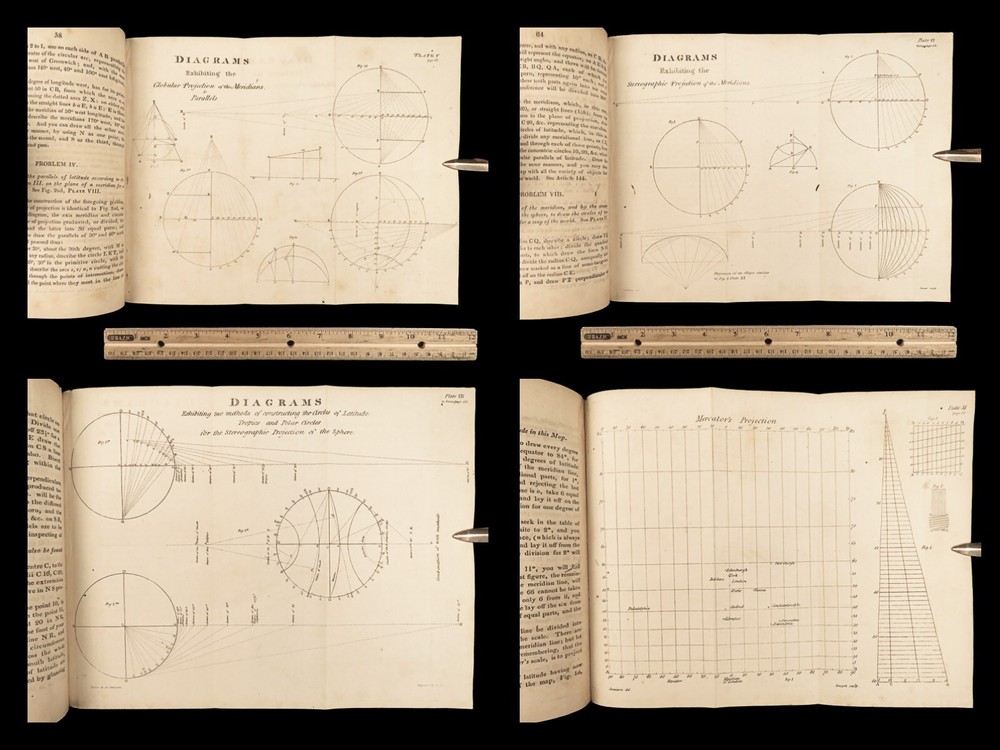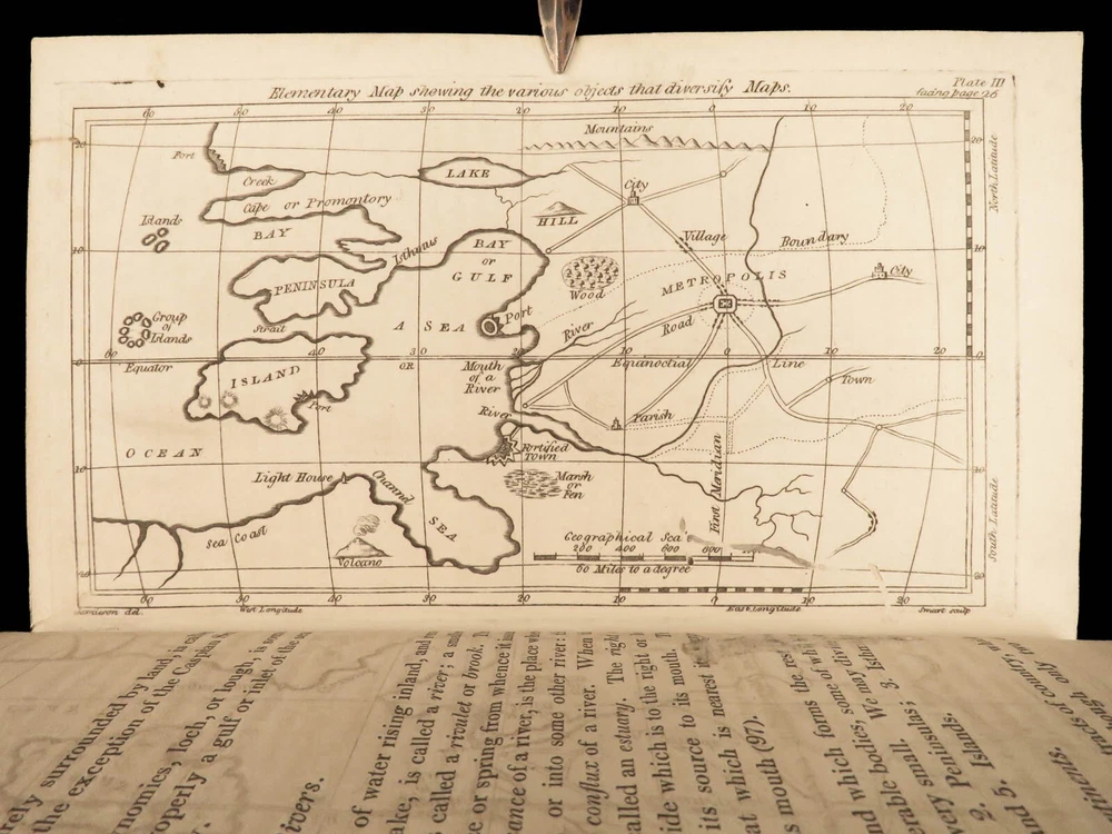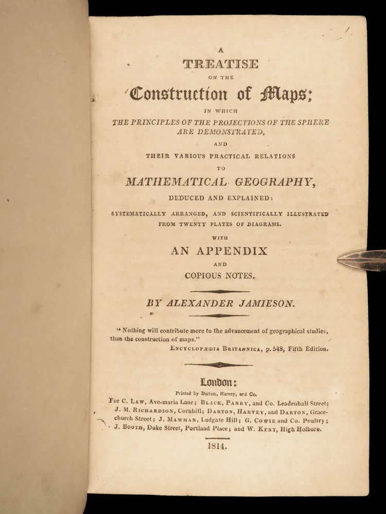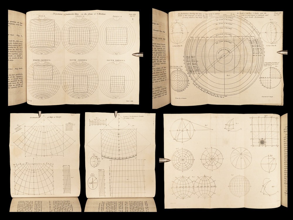1814 Cartography 1 ed Construction MAPS Scottish Jamieson Geography Illustrated Alexander Jamieson was an early 19 th -century Scottish textbook writer known for his works of grammar, mechanics, and geography. It was, however, his geography and atlas books that brought him his most prestige. In fact, his 1814 treatise “ Construction of Maps ” proved to be an important reference for cartographers and historians, filled with impressive folding engravings and maps. Jamieson describes techniques for drawing longitude and latitude lines, correctly illustrating rivers, and much more! Item number: #23089 Price: $499 JAMIESON, Alexander A treatise on the construction of maps in which the principles of the projections of the sphere are demonstrated, London: printed by Darton, Harvey, and Co., for C. Law., 1814. 1 st edition Details : · Collation: Complete with all pages o xv, [1], 187, [1] o 20 engravings (11 folding) · Language: English · Binding: Leather; tight and secure · Size: ~8.25 in X 5.25in (21cm x 13cm) Our Guarantee: Very Fast. Very Safe. Free Shipping Worldwide. Customer satisfaction is our priority! Notify us with 7 days of receiving, and we will offer a full refund without reservation! 23089